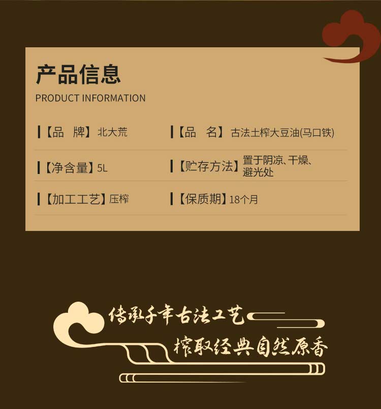 【中国农垦】北大荒古法压榨大豆油(马口铁)5L