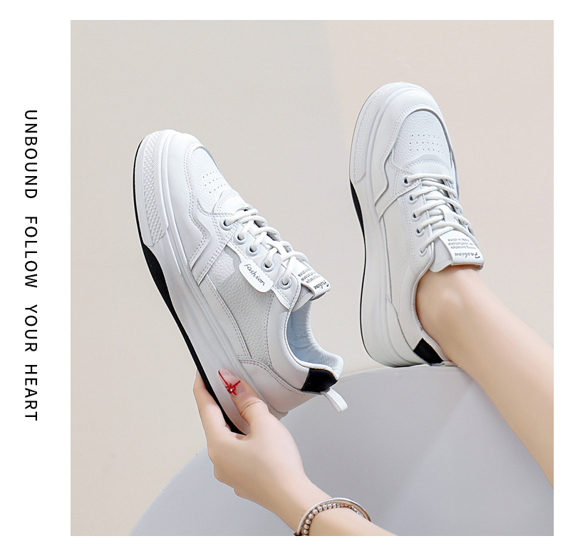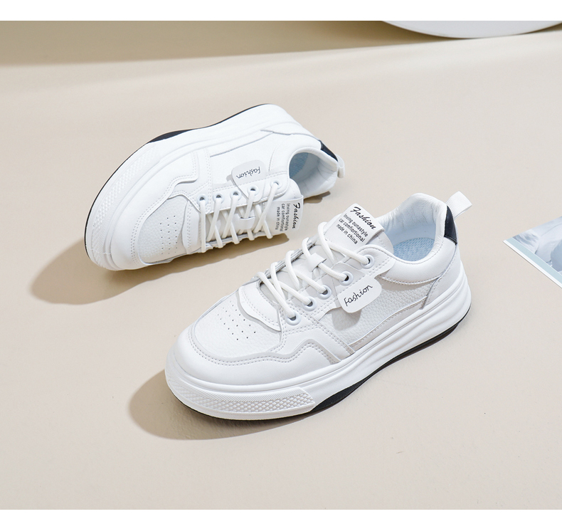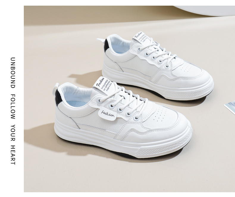 百搭踏青小白鞋,防水防污,潮流减龄显腿长,透气柔软内里,皮革鞋面,轻简好看百搭,脚宽胖大一码拍