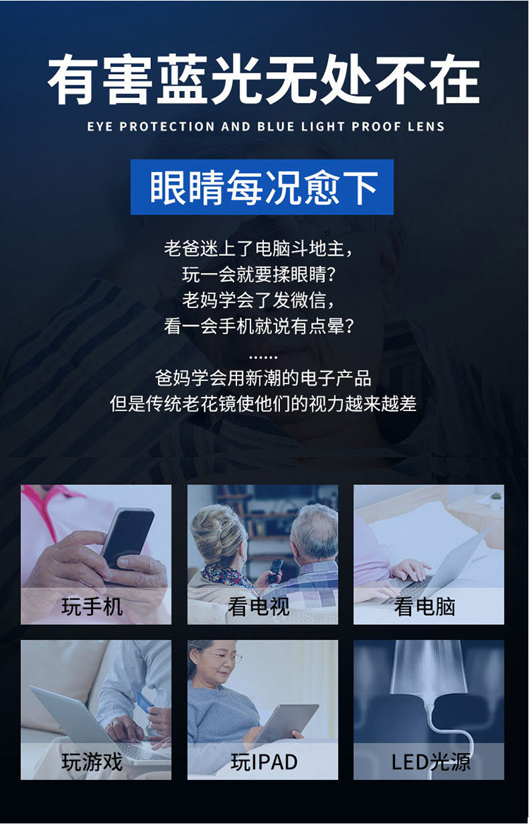 【可贴手机老花镜时尚防辐射老视镜2119】科学护眼 简约设计 携带便捷