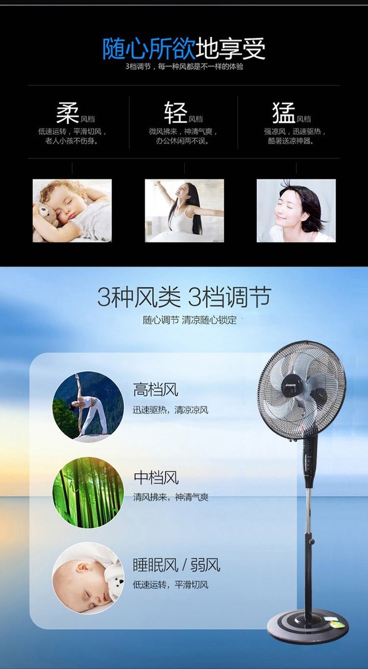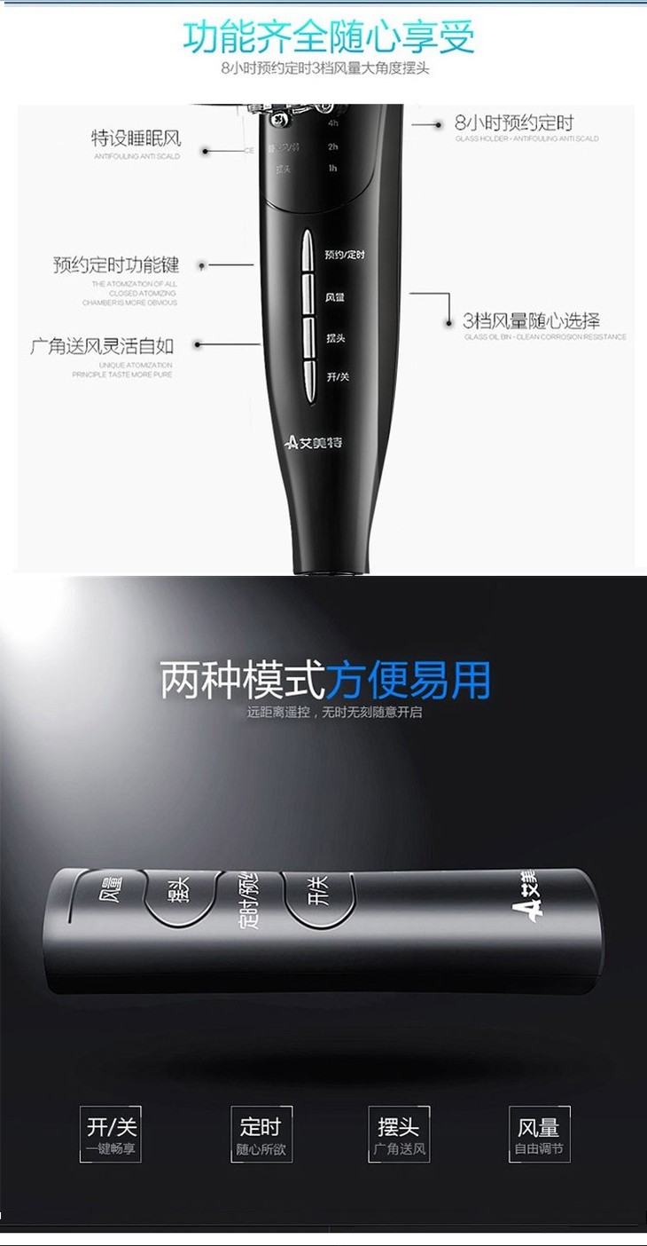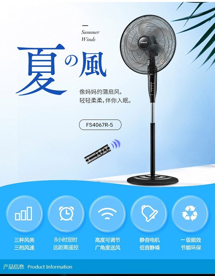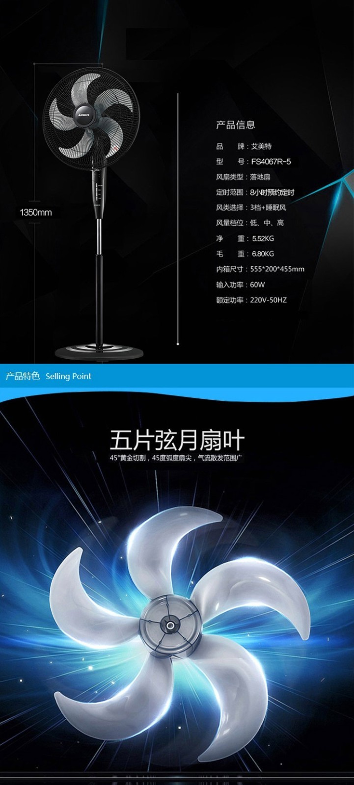 艾美特(Airmate)静音五叶带遥控智能定时黑色坐地扇 FS4067R-5