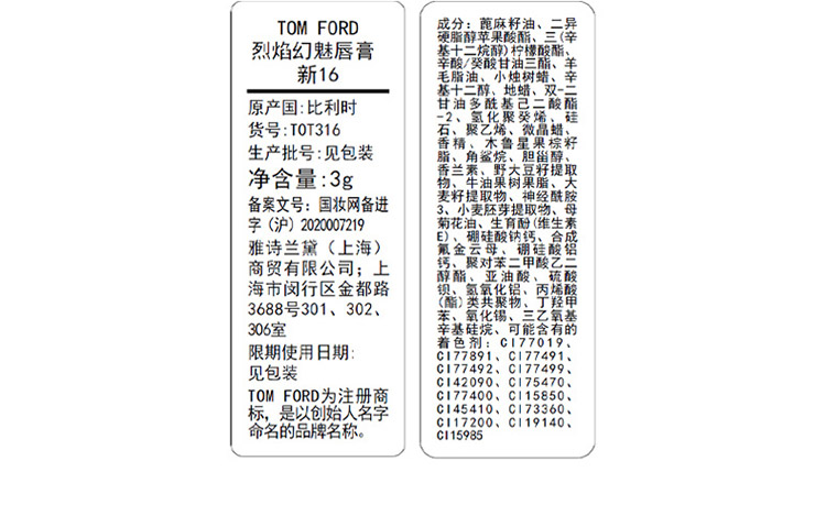 【中欧班列精选】TF口红经典黑管奶油哑光质地15#16#/80#/ 100#/ 08#HJ