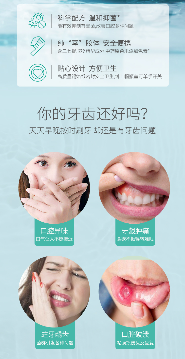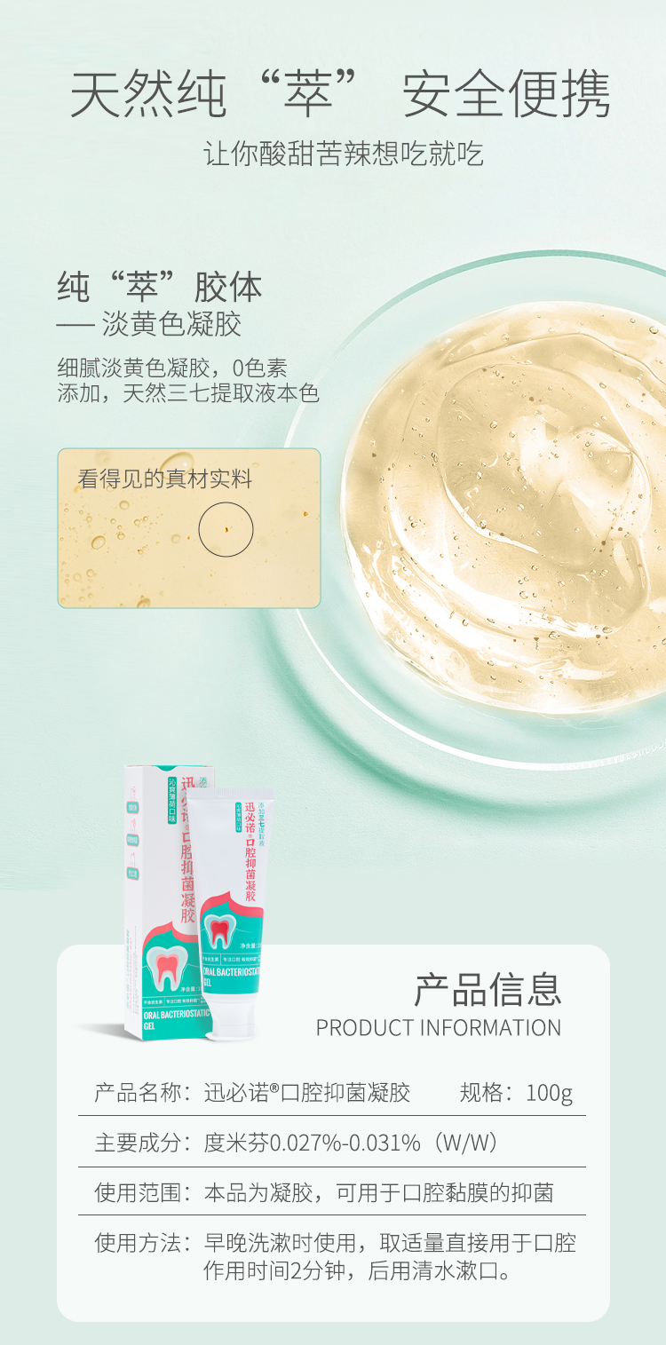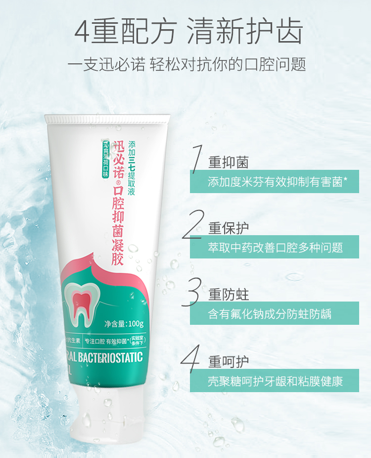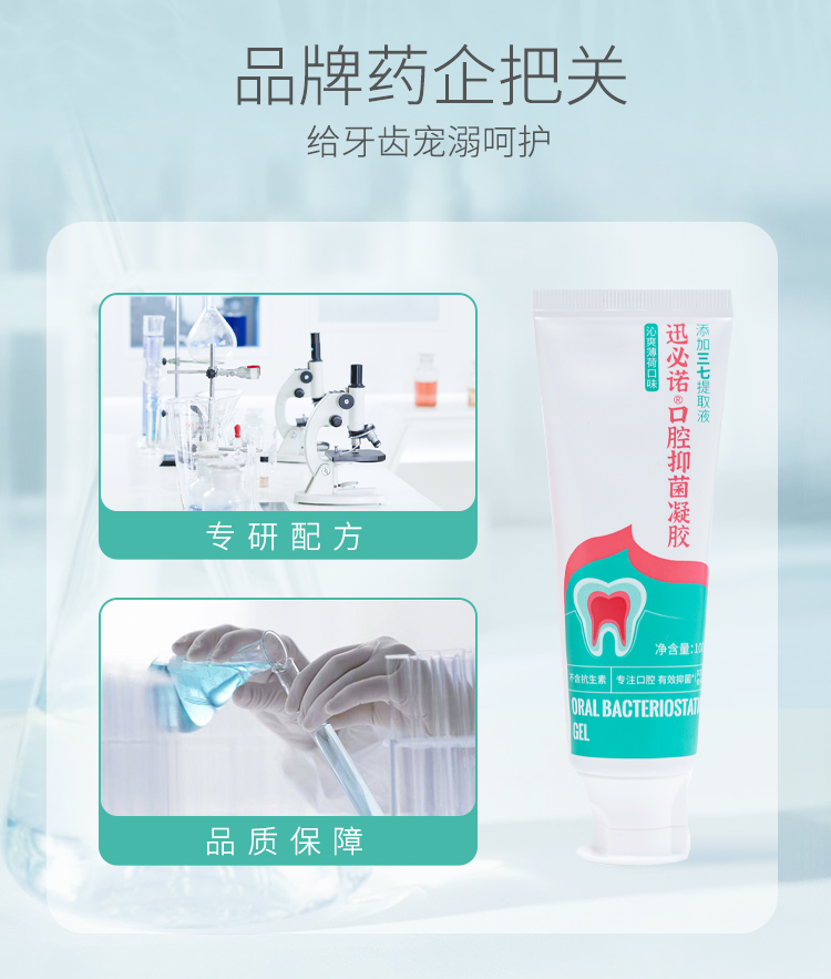 【迅必诺】口腔抑菌凝胶成人含氟三七牙膏防蛀健齿口腔护理啫喱