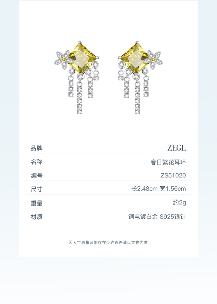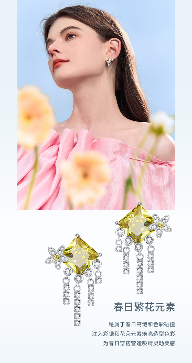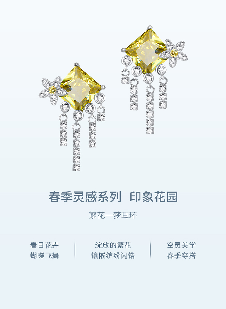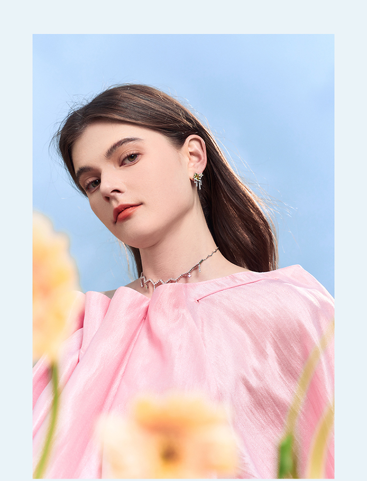 ZEGL设计师印象花园系列流苏繁花耳环女绿色耳钉小众925银针耳饰