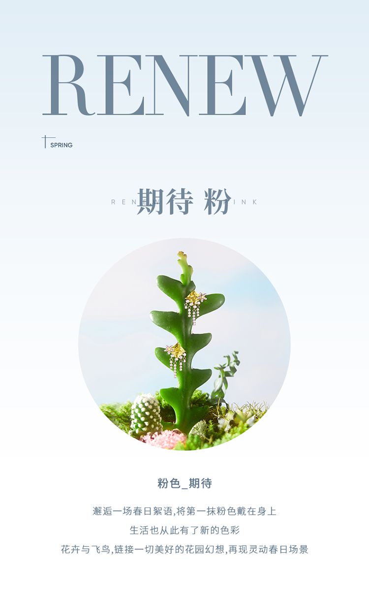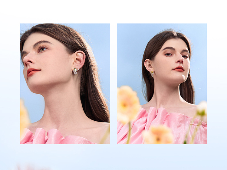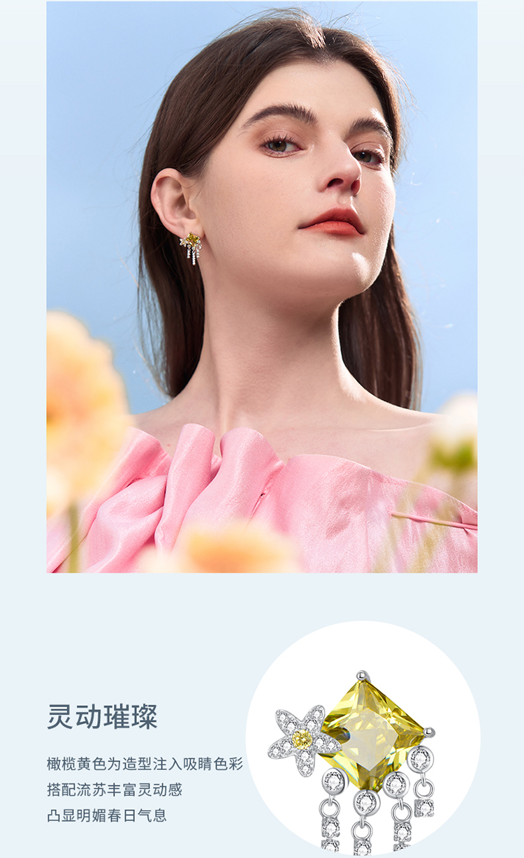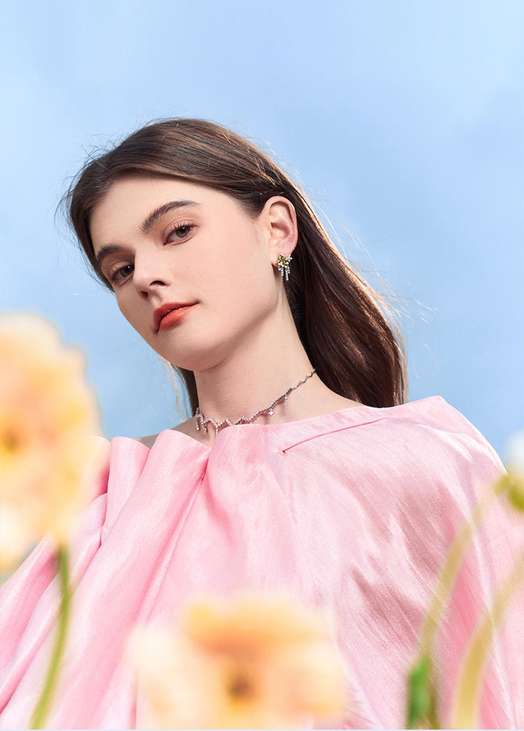 ZEGL设计师印象花园系列流苏繁花耳环女绿色耳钉小众925银针耳饰