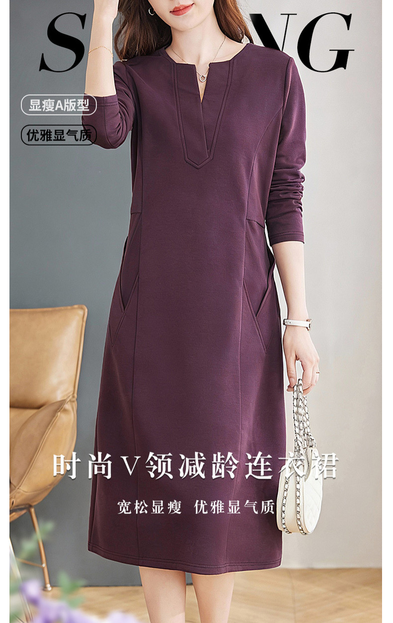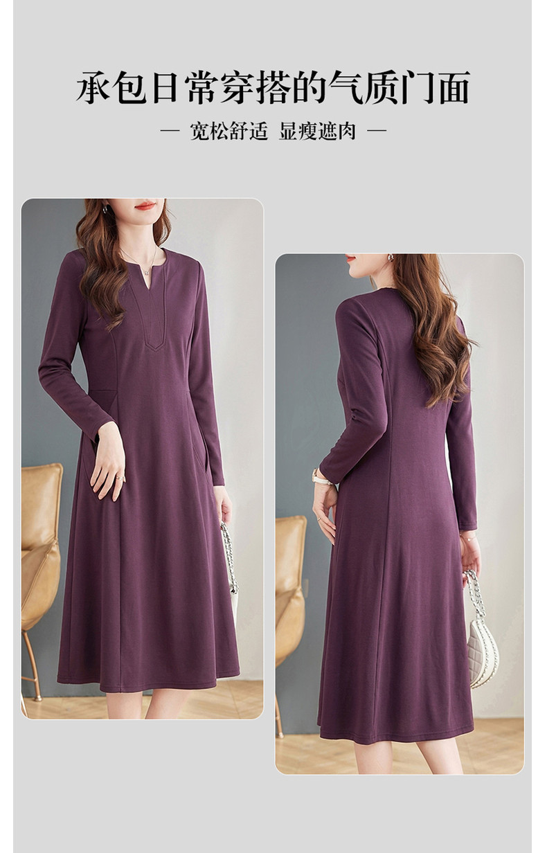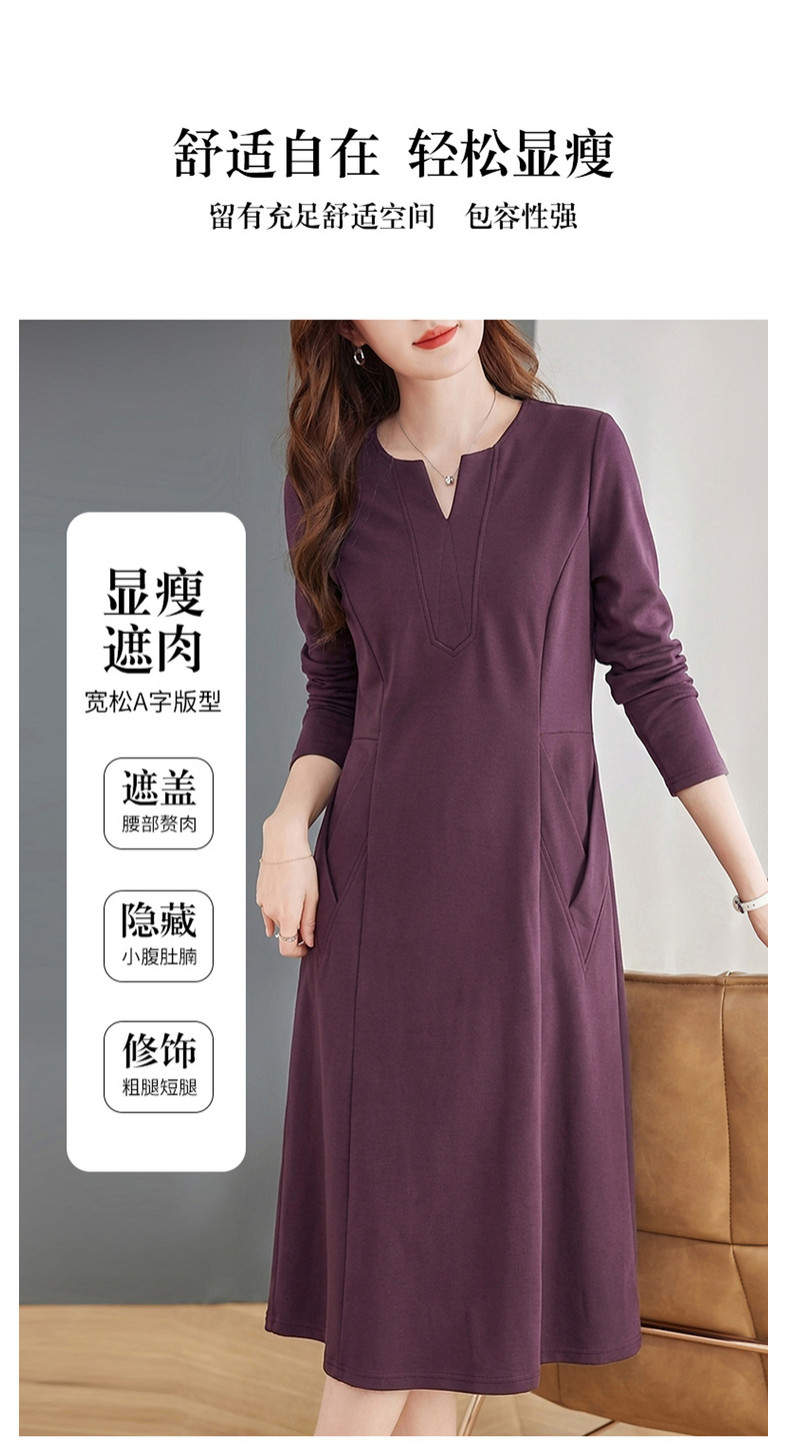 大码紫色连衣裙春装女款2026新款高端洋气女士长裙连身裙直筒裙子