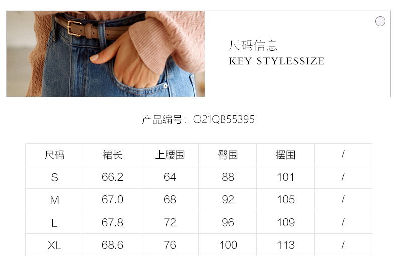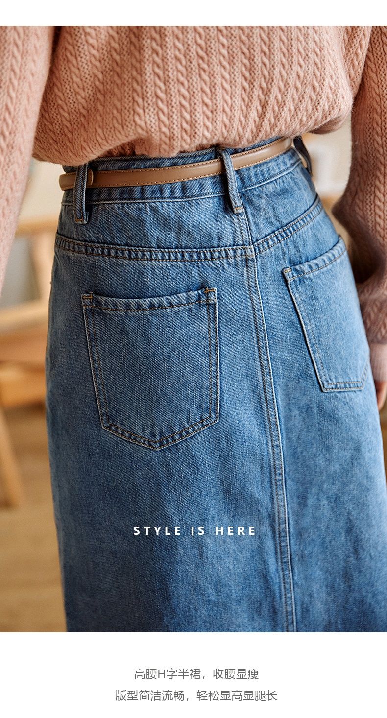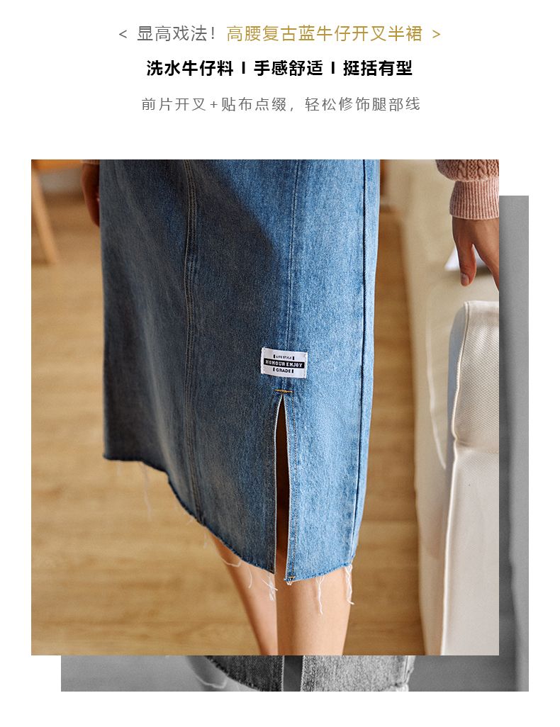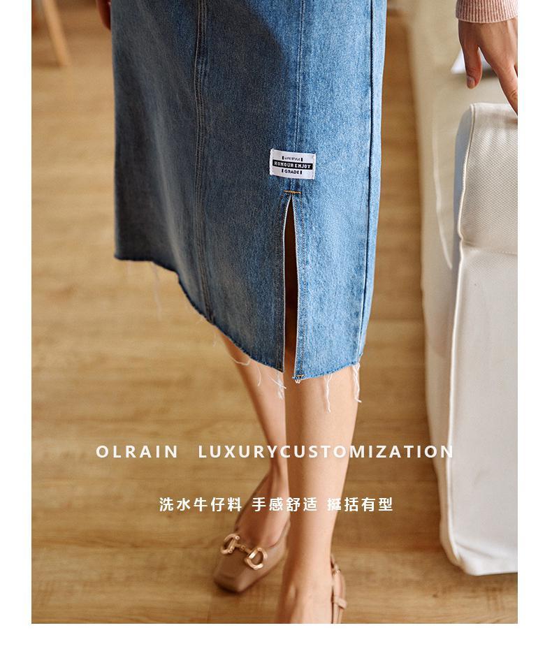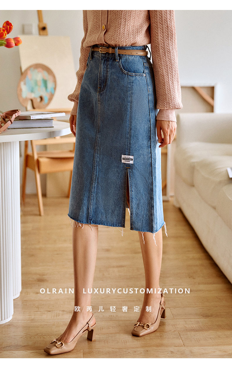 欧芮儿牛仔半身裙女秋季新款2021高腰显瘦时尚休闲气质百搭中长裙