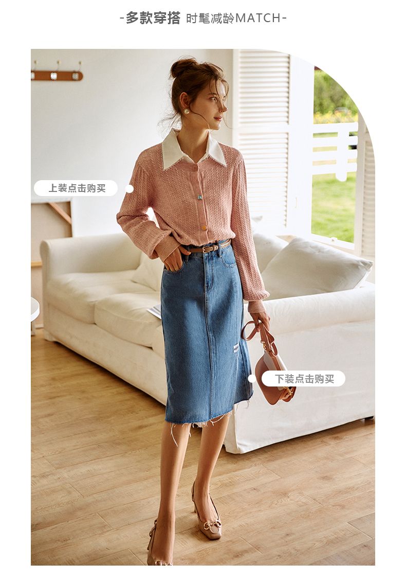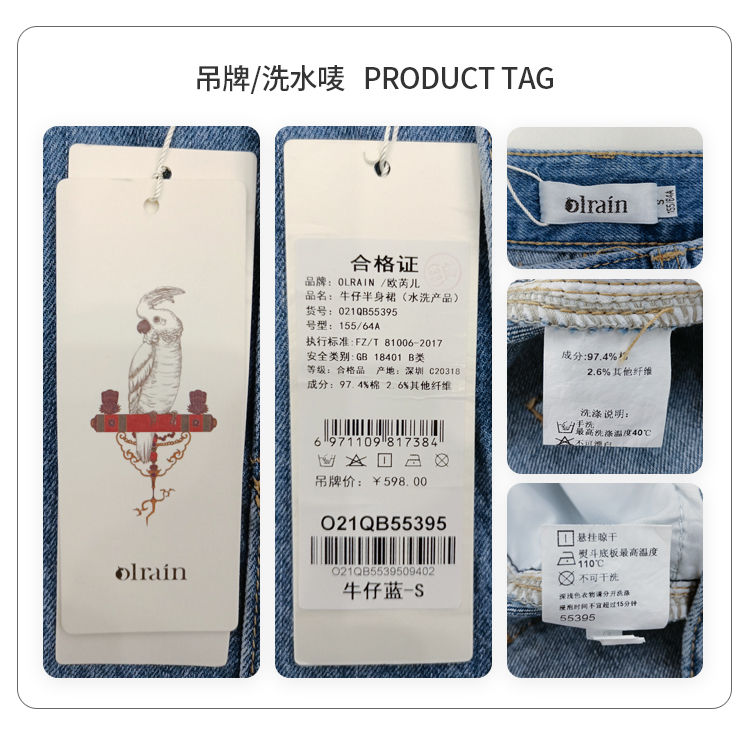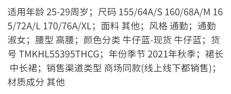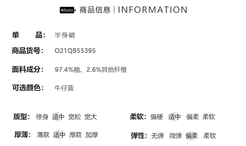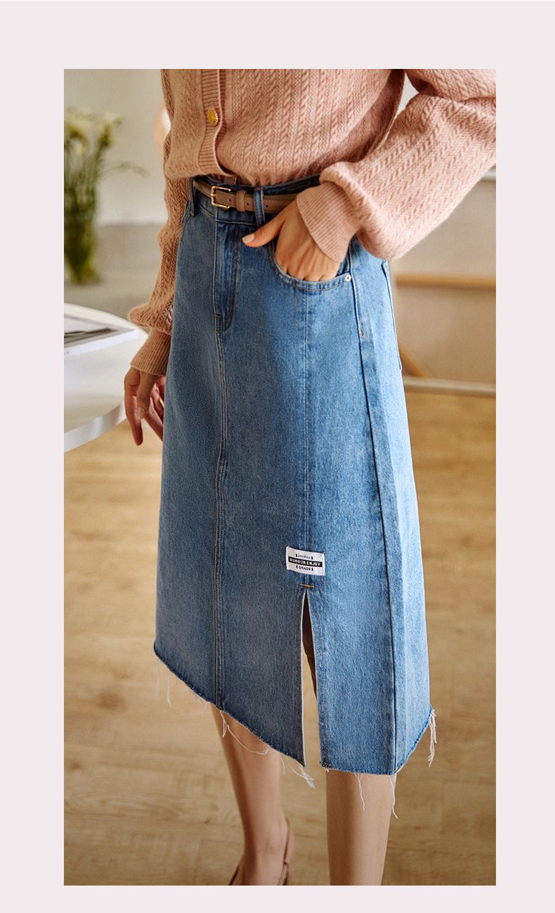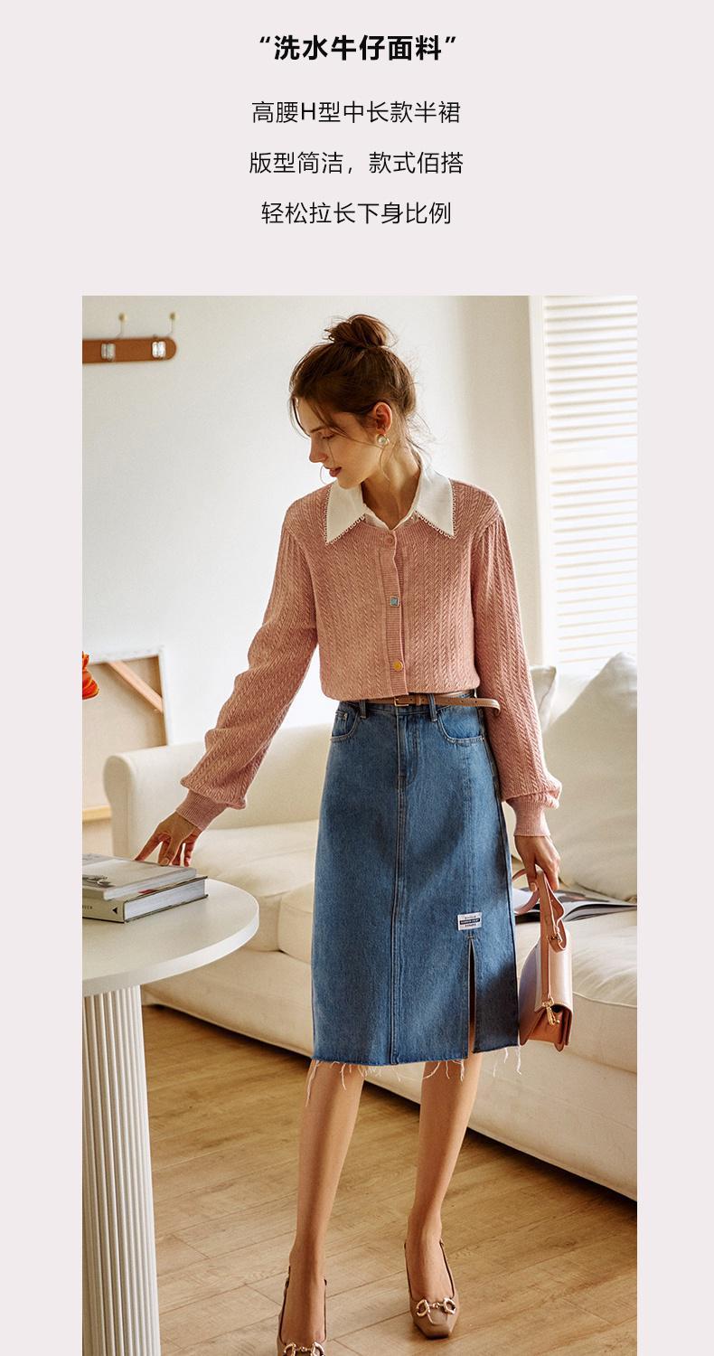 欧芮儿牛仔半身裙女秋季新款2021高腰显瘦时尚休闲气质百搭中长裙