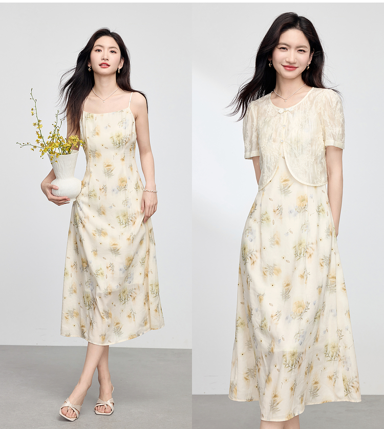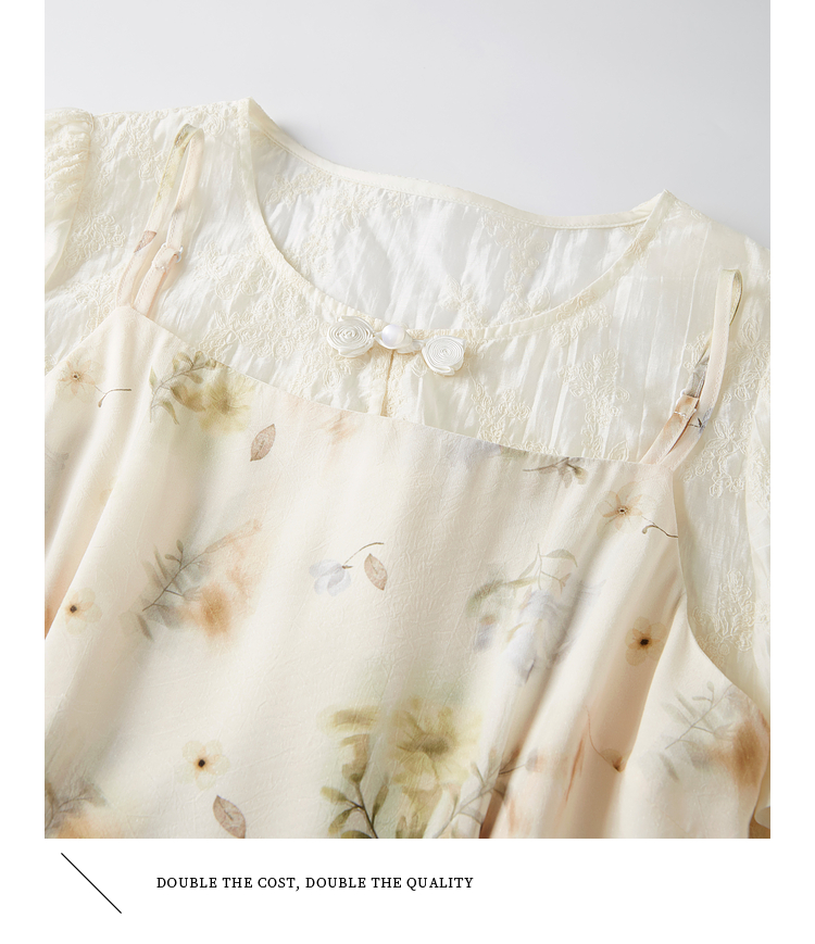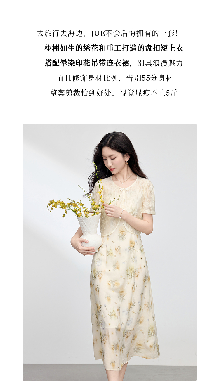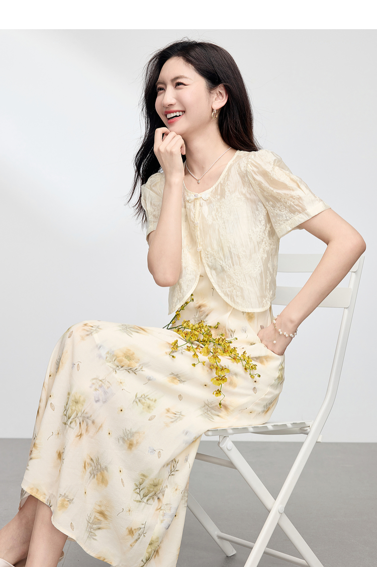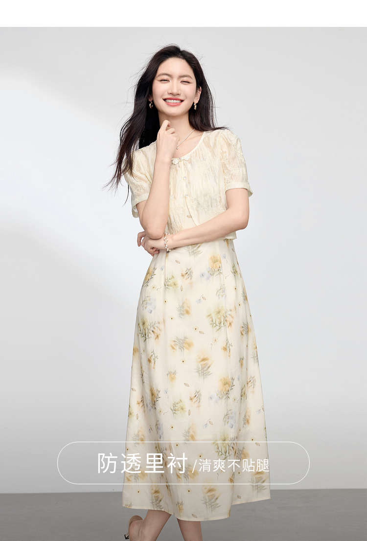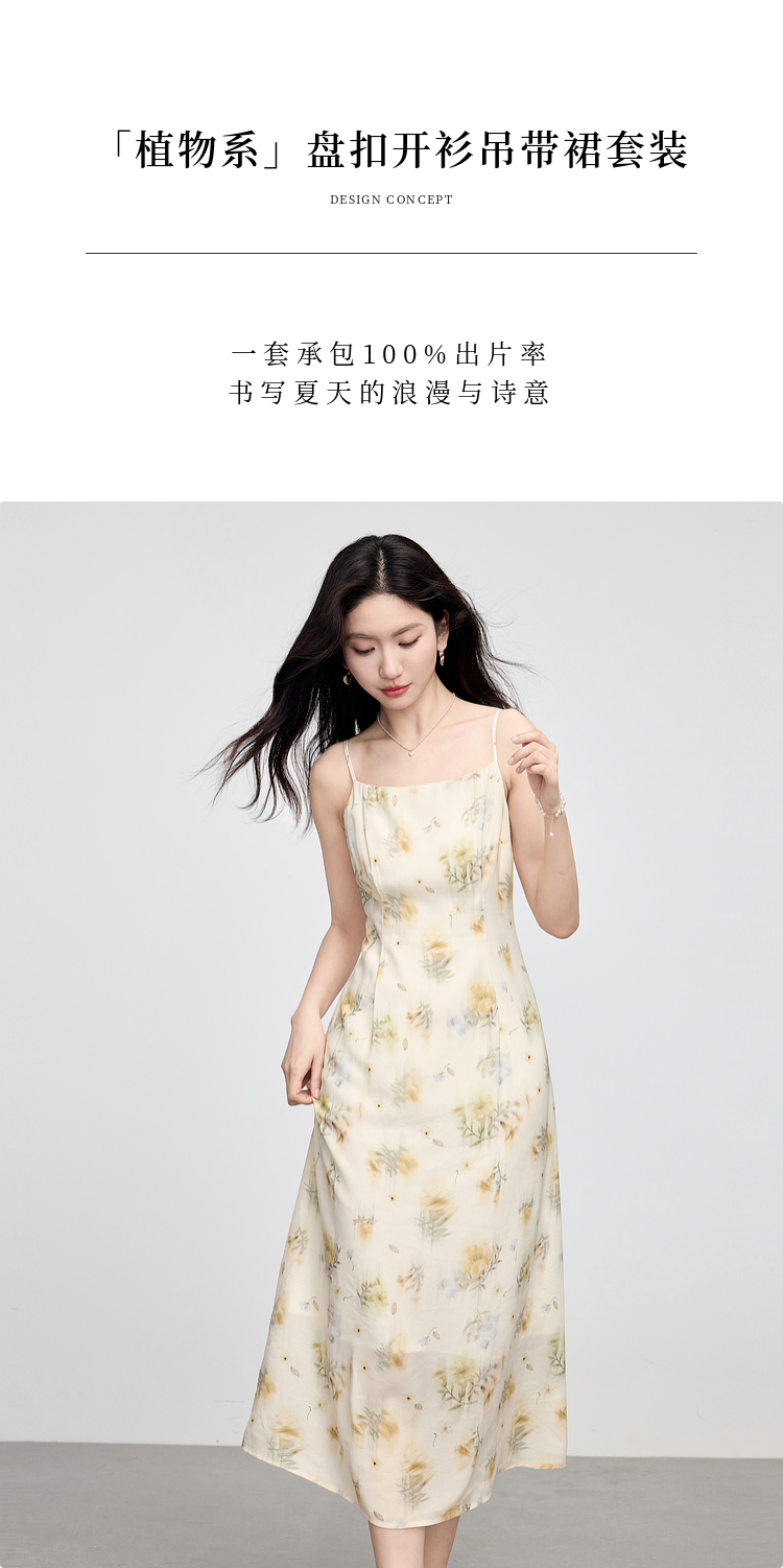 熙世界新中式国风套装女夏2025新款天丝盘扣小衫碎花吊带裙两件套