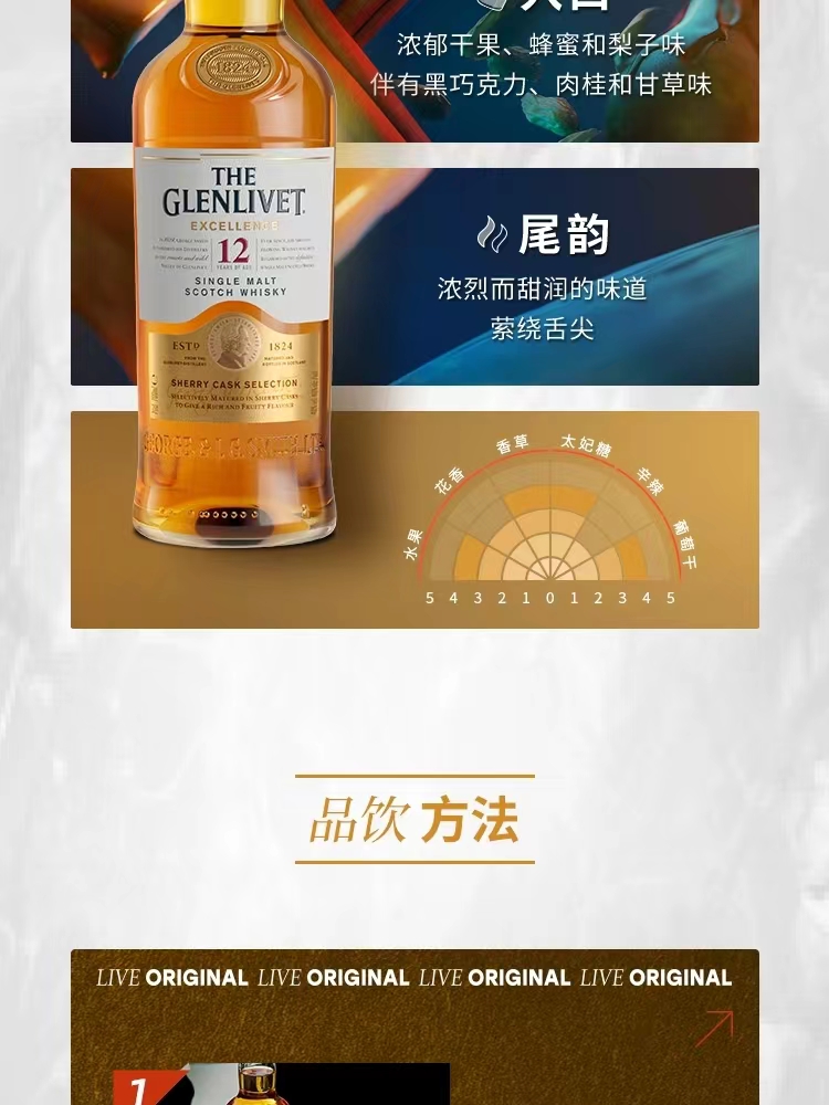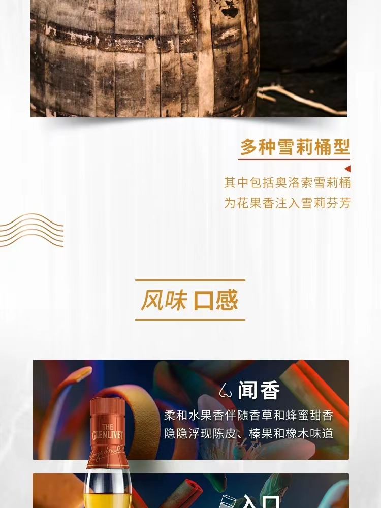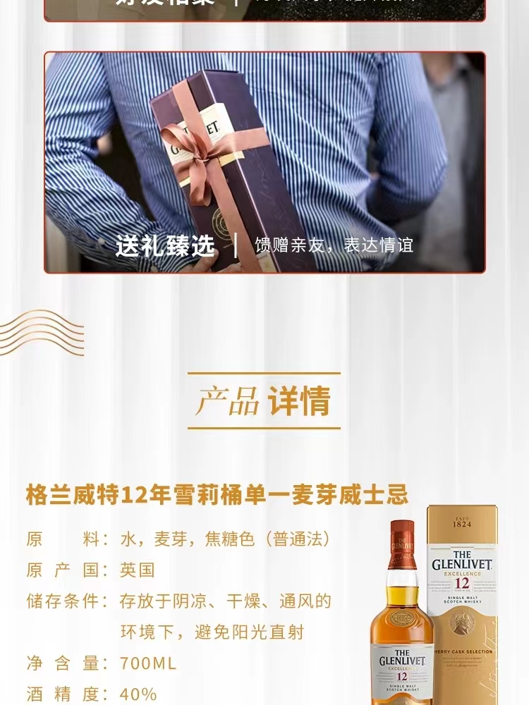 格兰威特 雪莉桶陈酿 醇萃12年单一麦芽苏格兰威士忌 700ml*1瓶