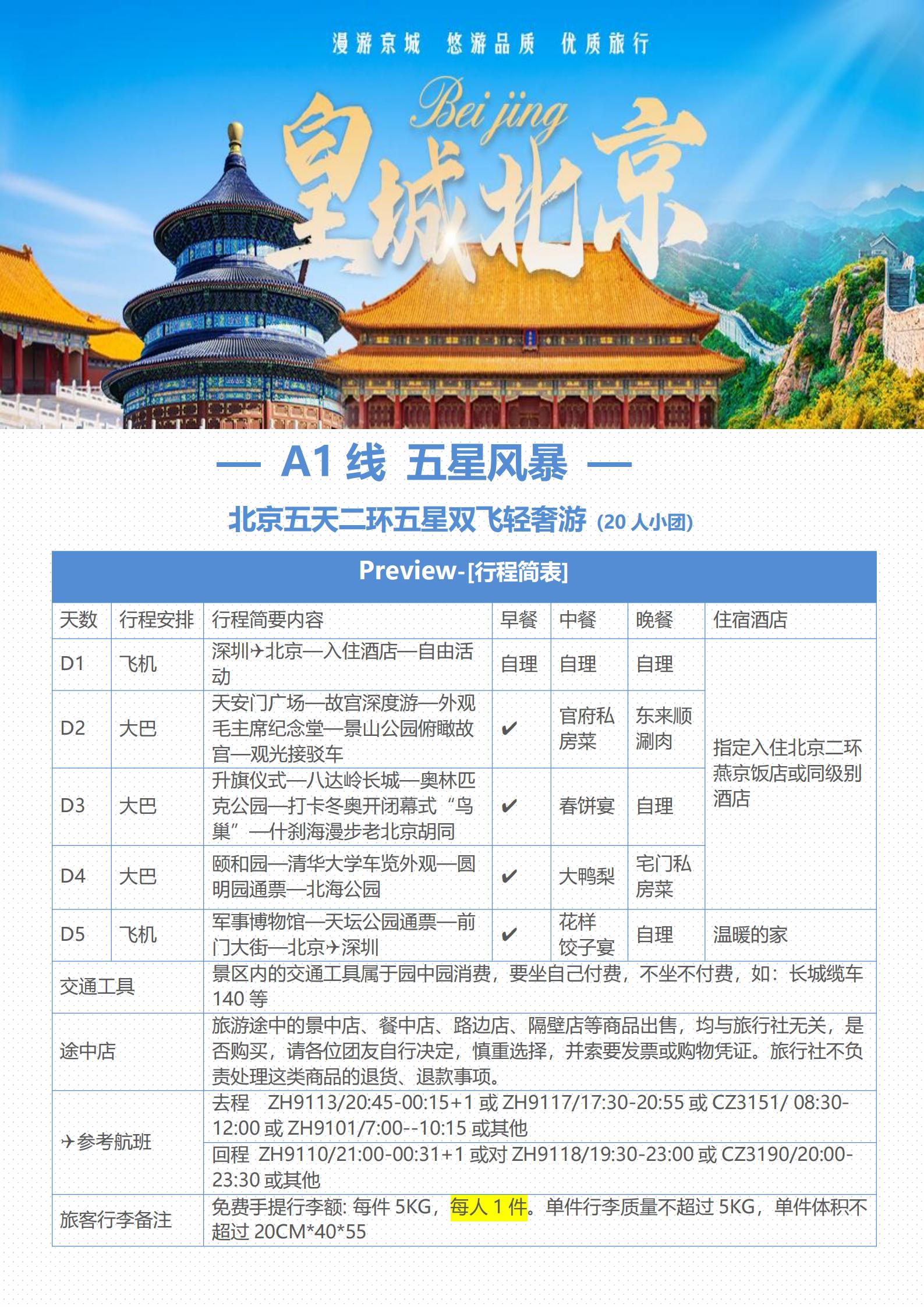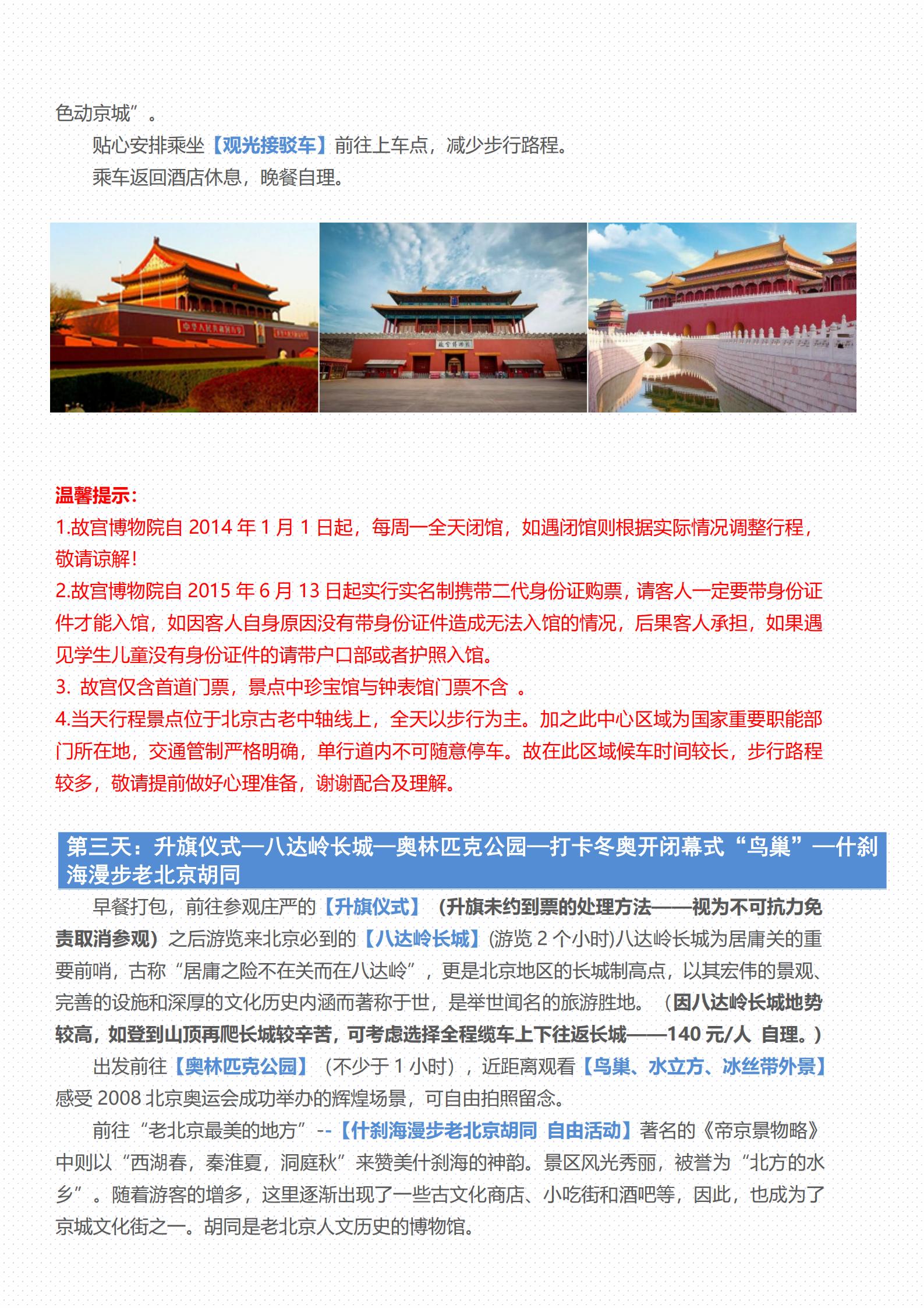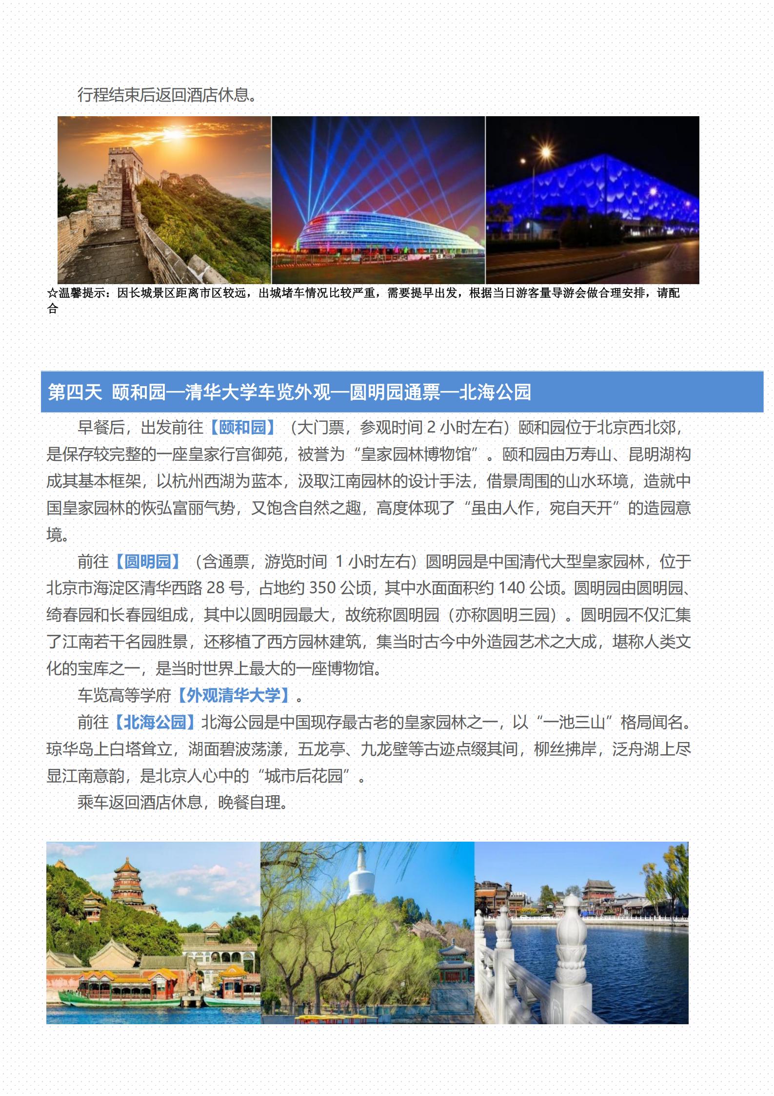 【五一】<北京5天双飞轻奢游(20人小团),二环沿线5钻酒店>天安门广场、故宫、景山公园、升旗仪式、八达岭长城、奥林匹克公园、颐和园、圆明园、外观清华大学、北海公园、军事博物馆、天坛、前门大街