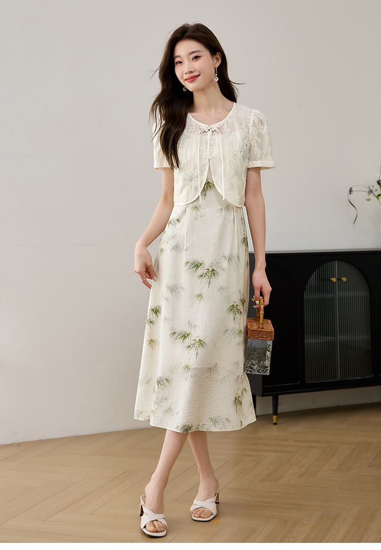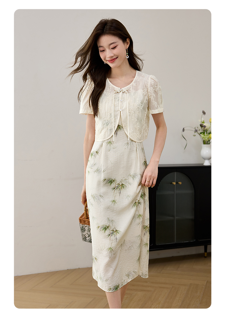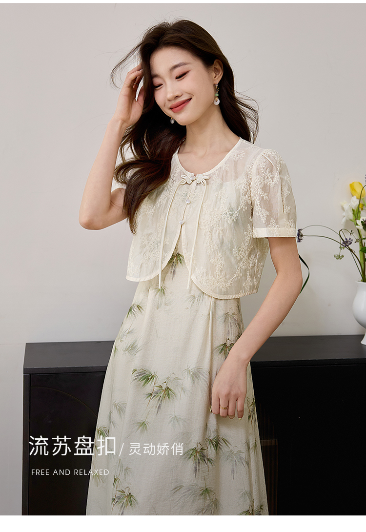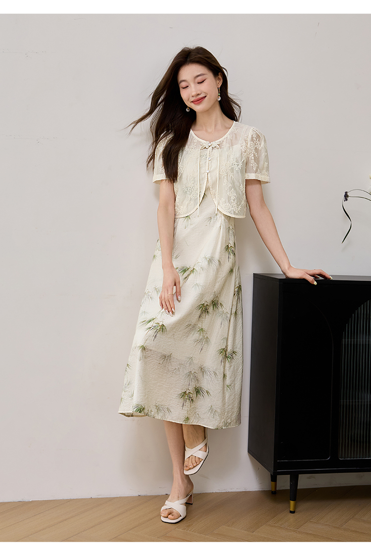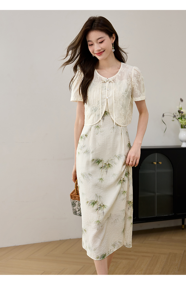 【专属特价】熙世界国风天丝小衫印花吊带连衣裙套装夏新中式女装两件套裙子