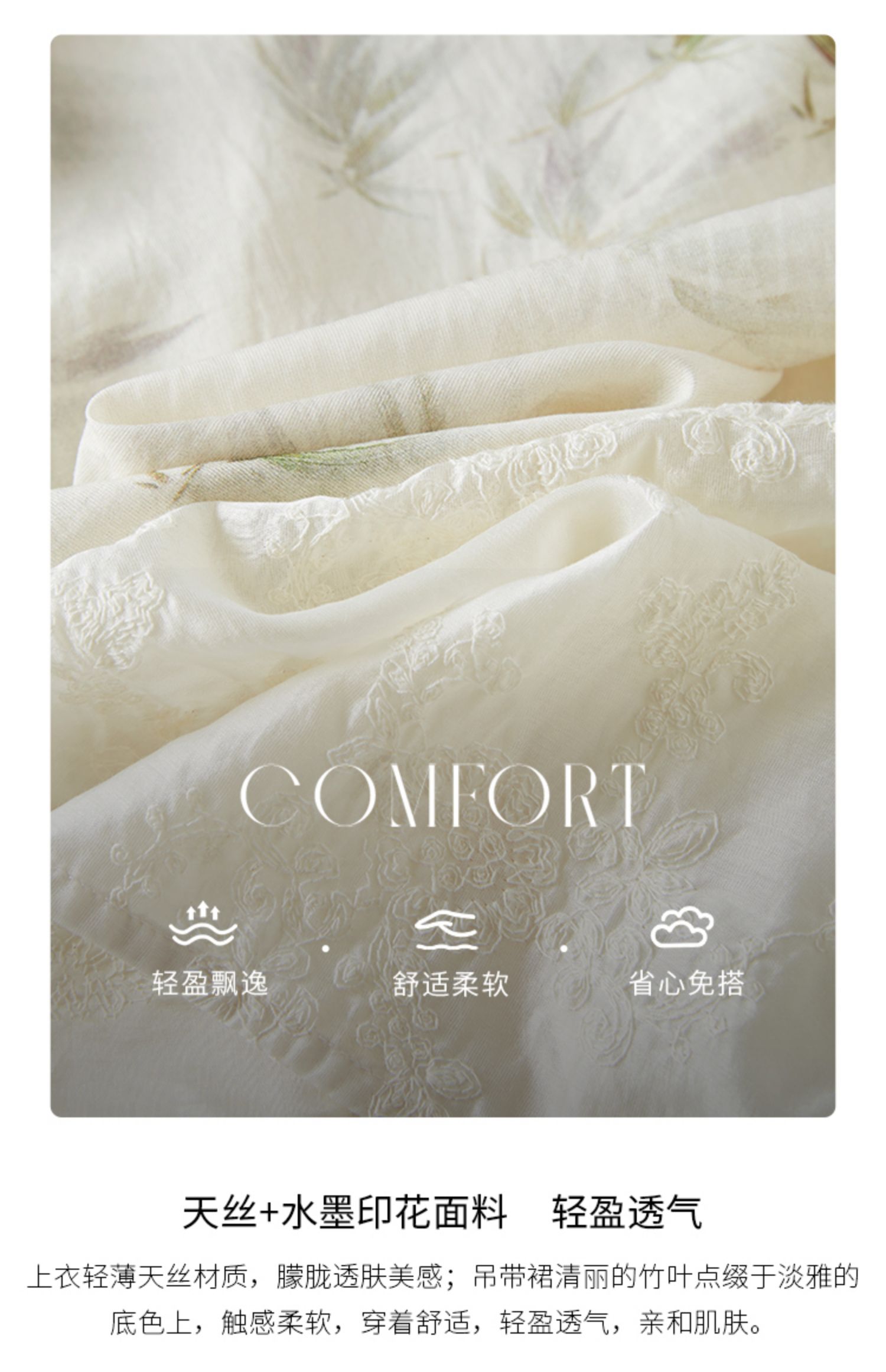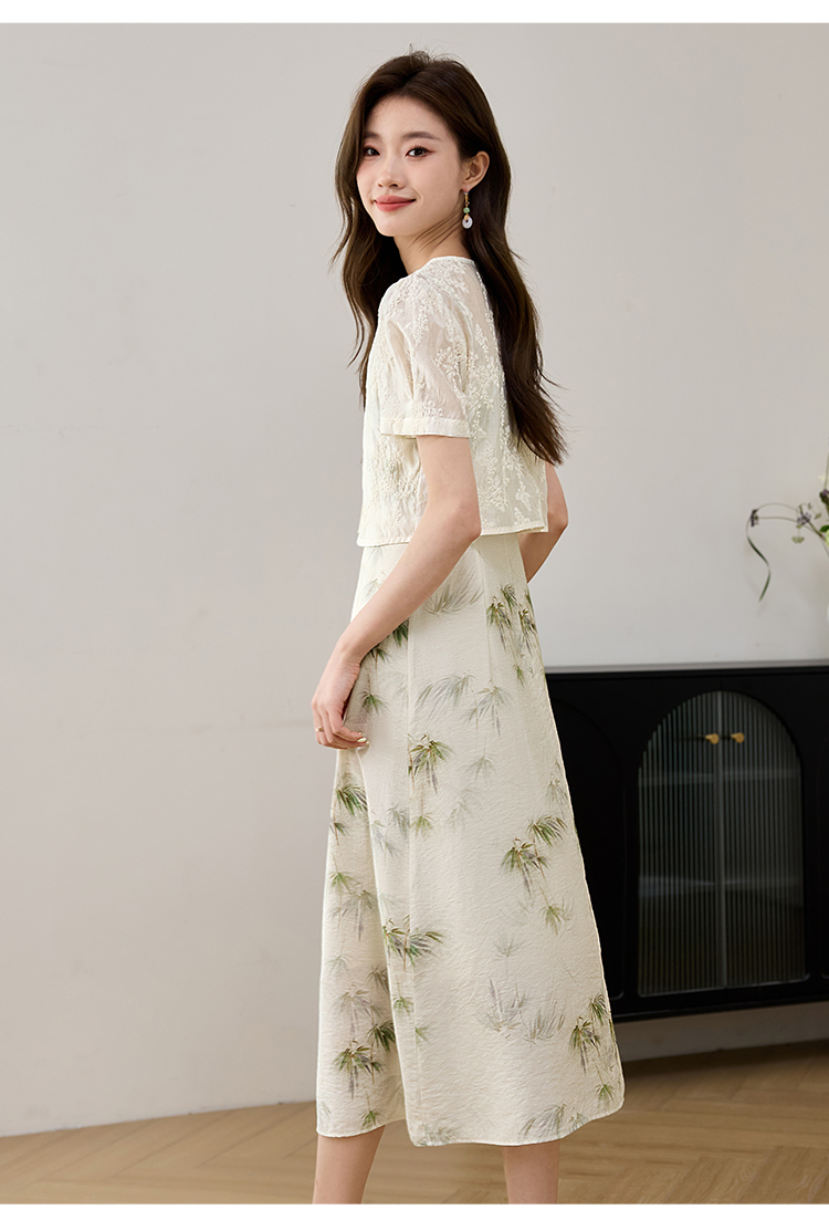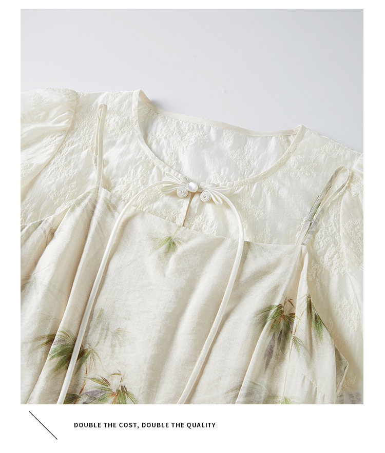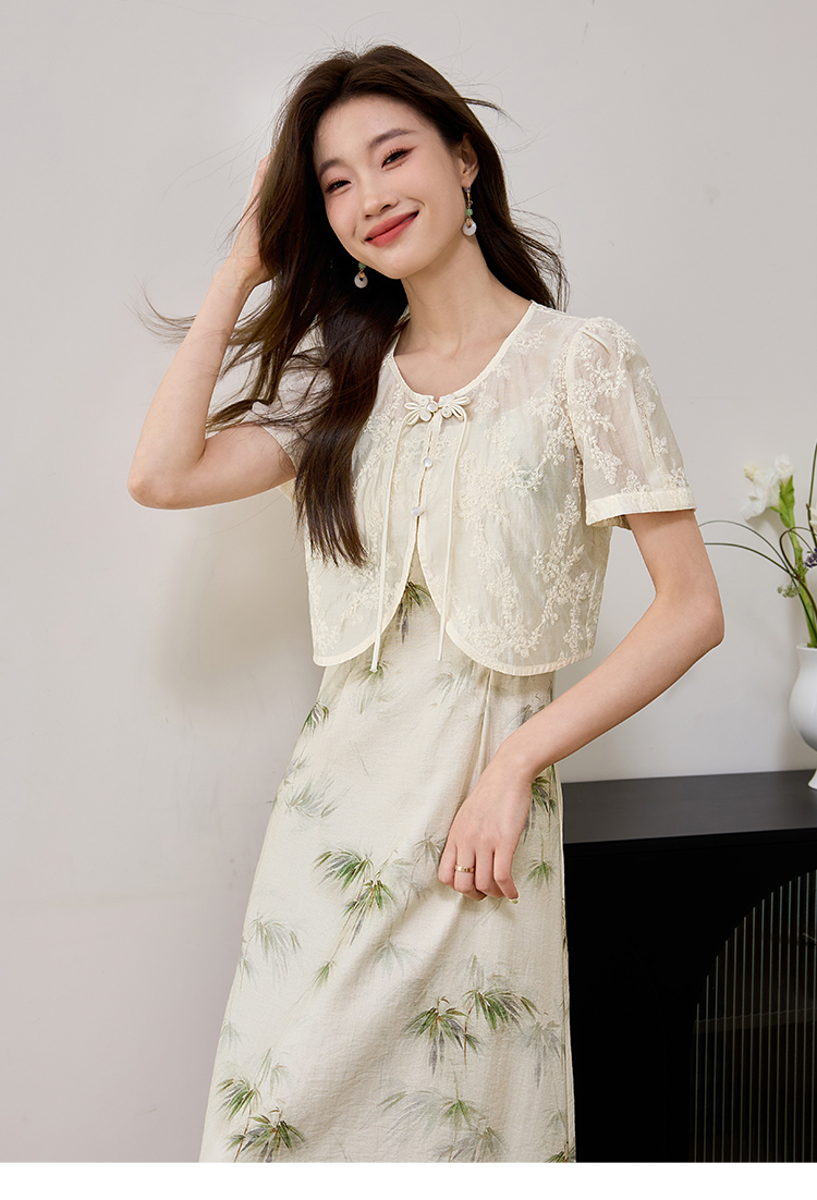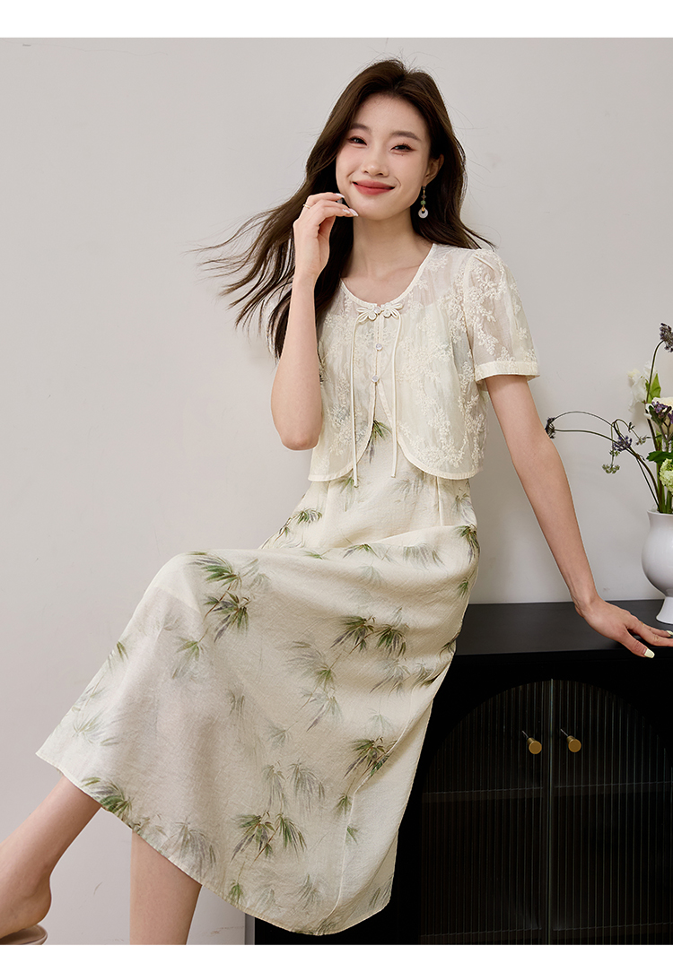 【专属特价】熙世界国风天丝小衫印花吊带连衣裙套装夏新中式女装两件套裙子