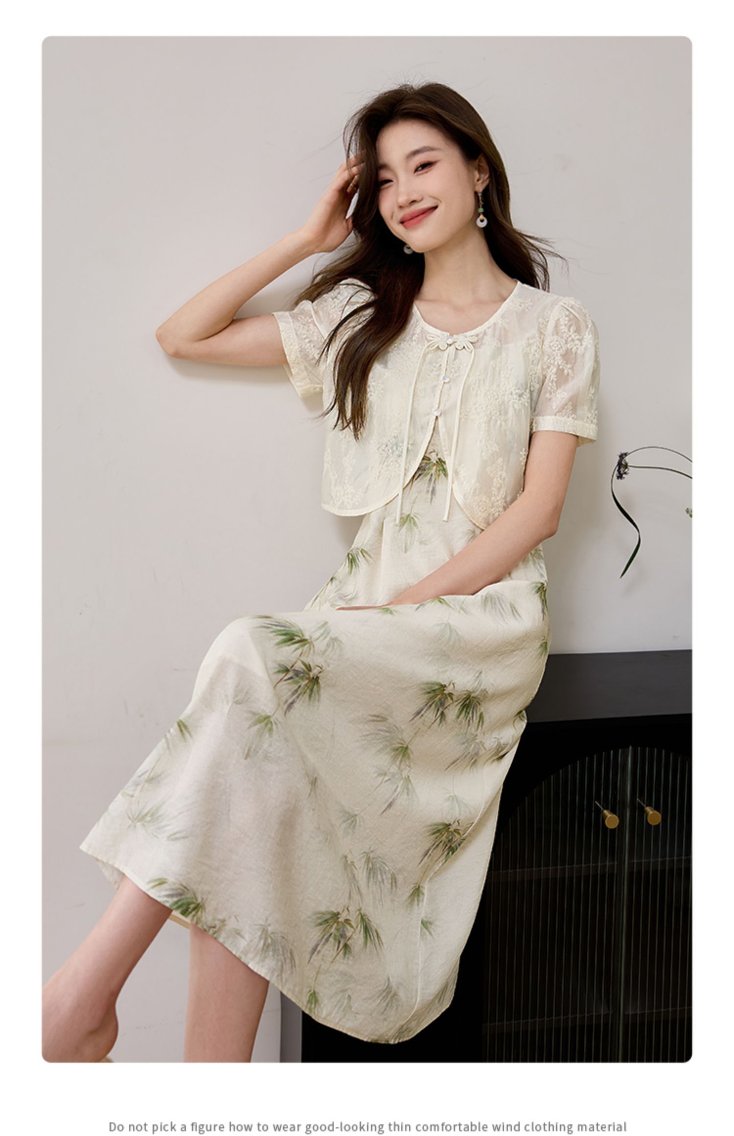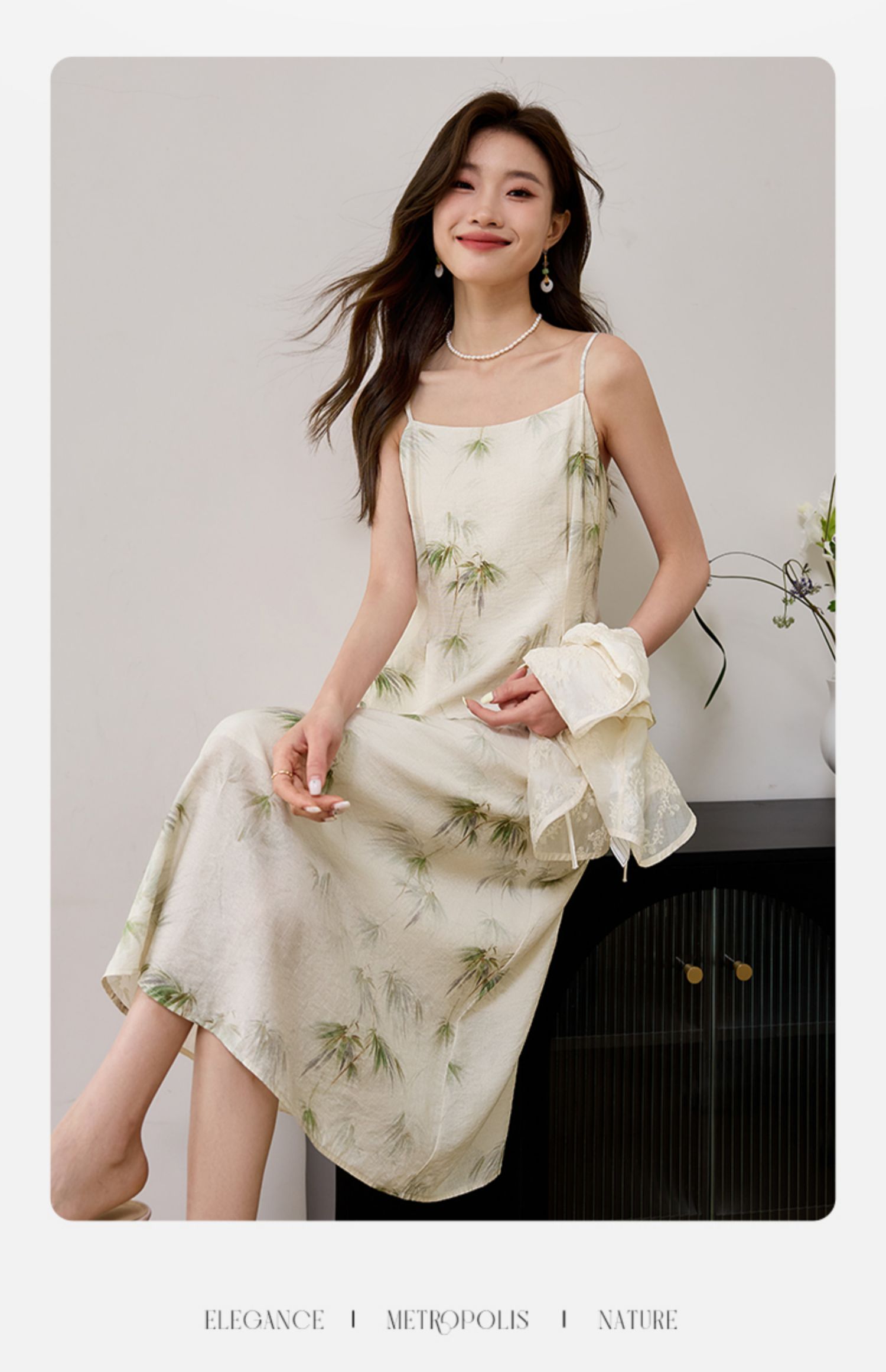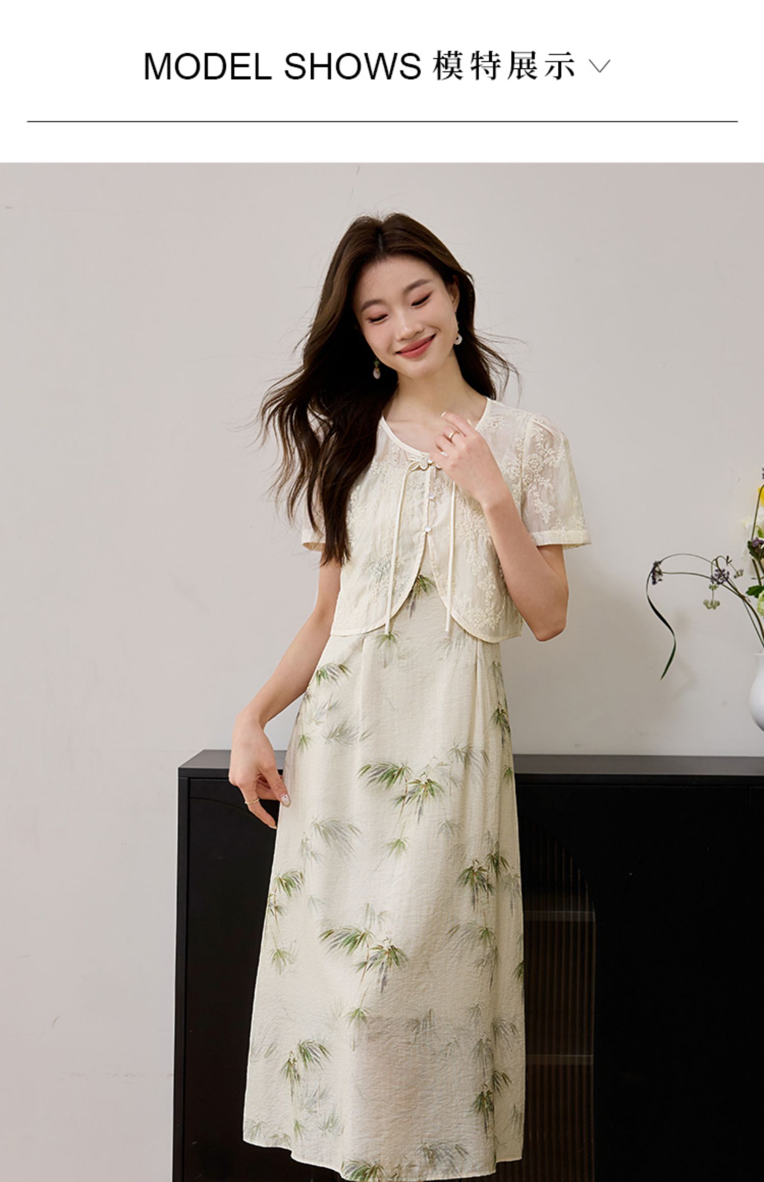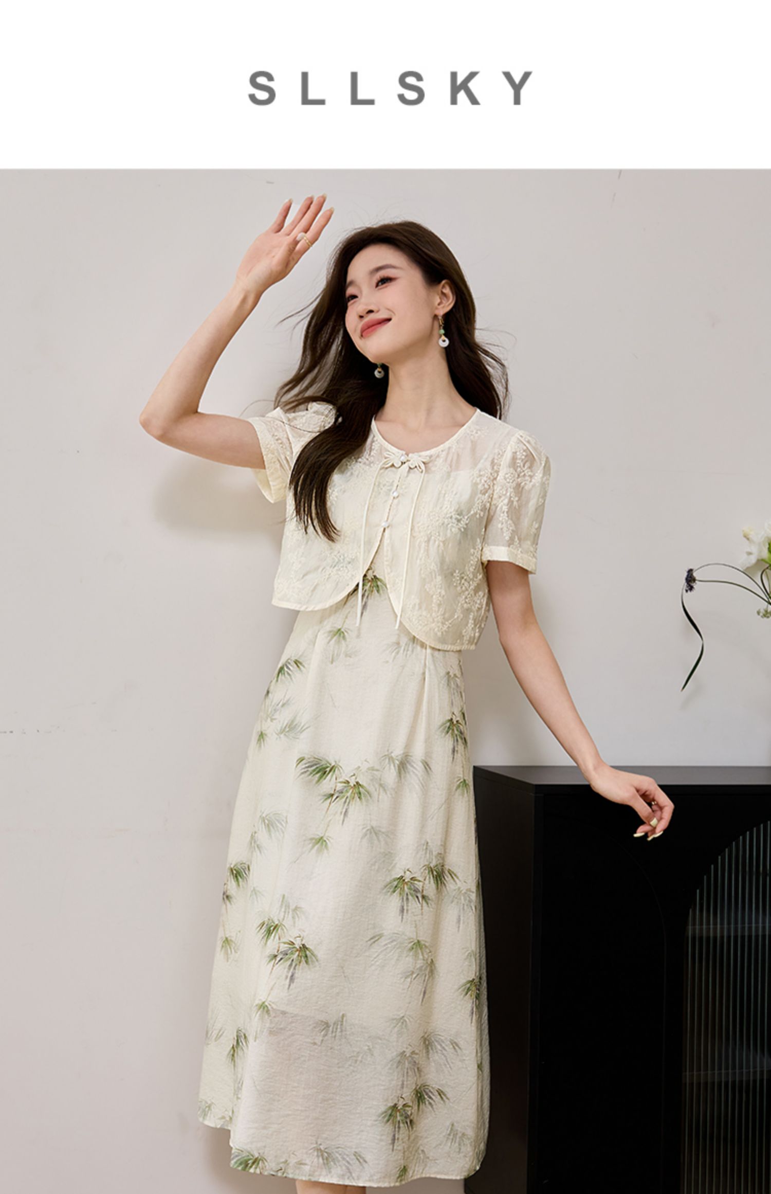 【专属特价】熙世界国风天丝小衫印花吊带连衣裙套装夏新中式女装两件套裙子