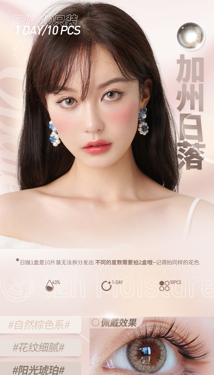 Obalens加州日落百搭自然美瞳日抛网红款大直径14.2mm非离子隐形近视眼镜水润无感10片装