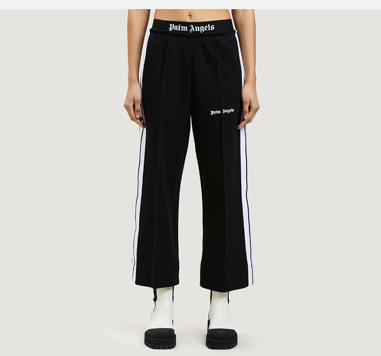 PALM ANGELS 棕榈天使 女士棉质字母徽标印花修身休闲九分裤 黑色 PWCA068F22FAB004 1001