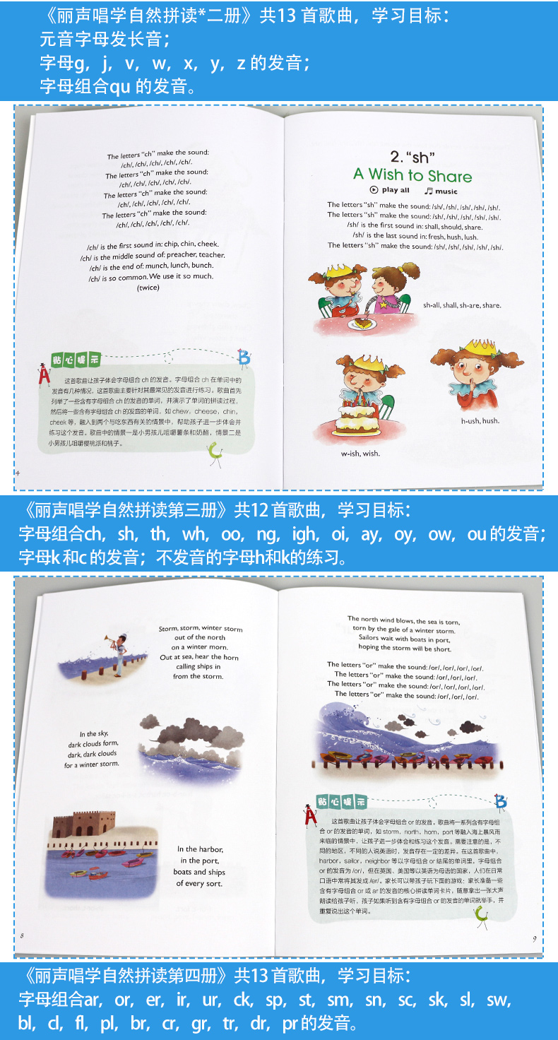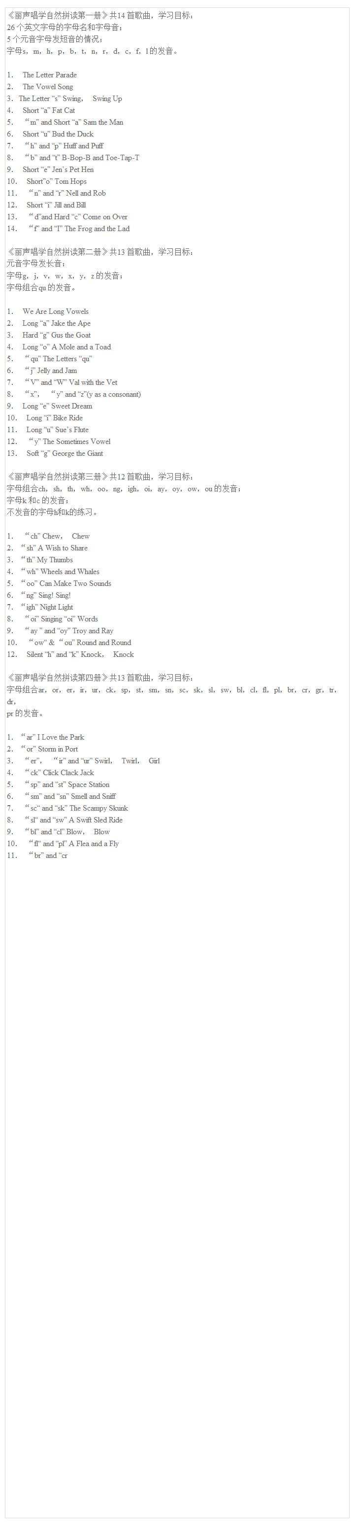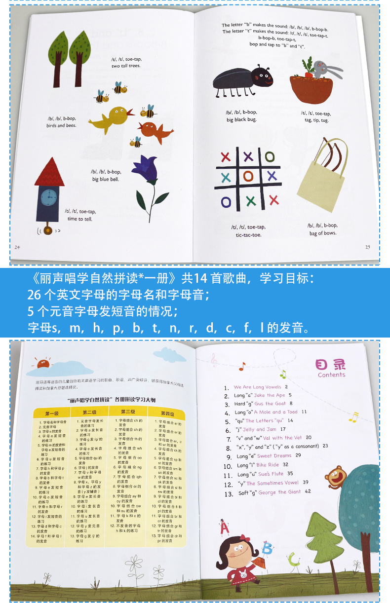 丽声唱学自然拼读1-4套装 可点读配光盘