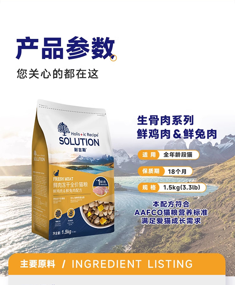 耐吉斯猫粮生骨肉冻干鸡肉成幼猫全阶段1.5kg每袋猫粮正品