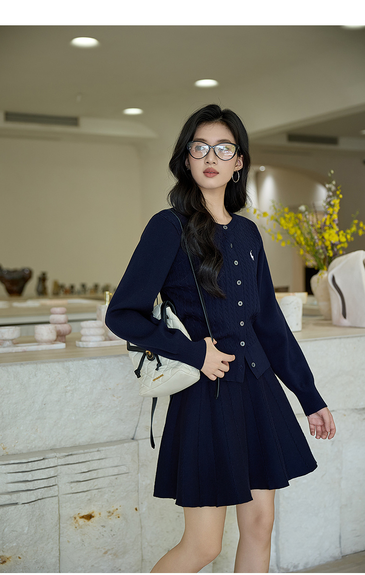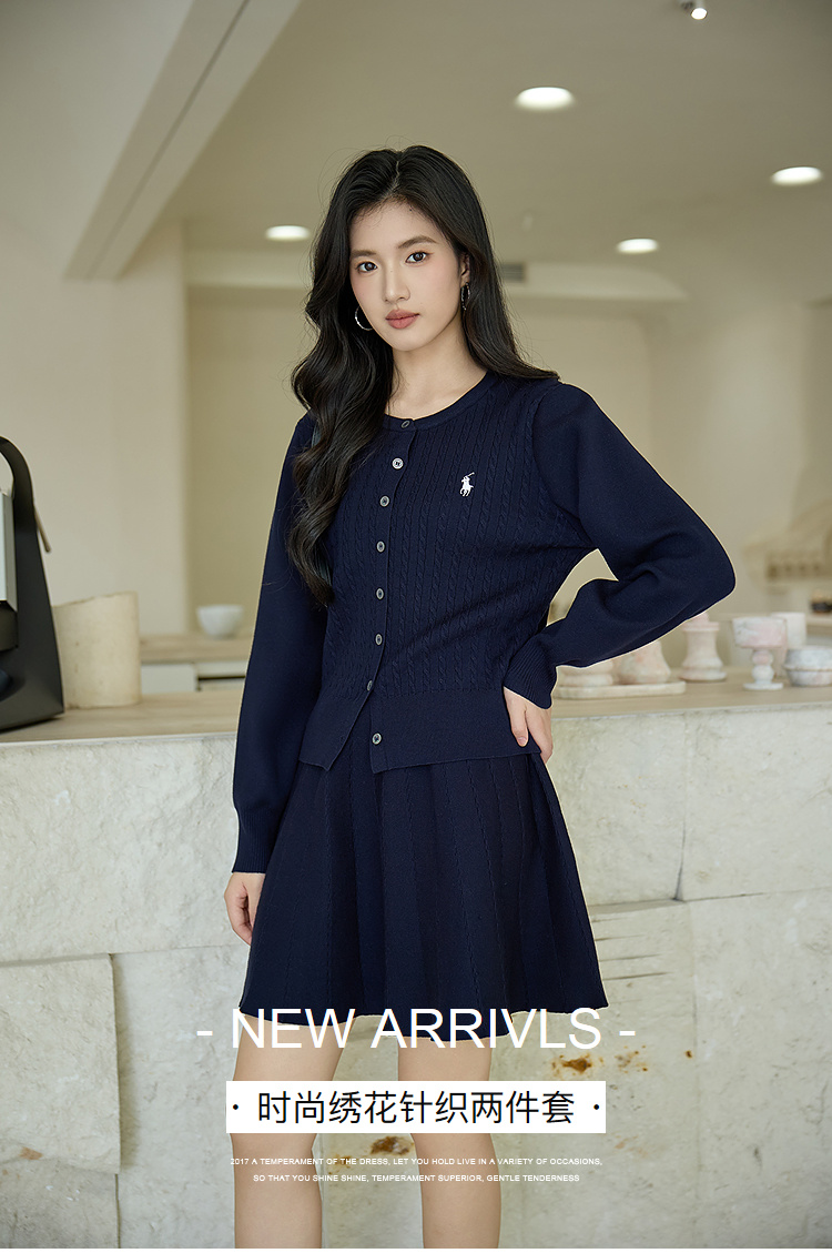 奢姿大码女装2025秋季绣花设计减龄针织两件套胖妹妹时尚圆领套装9453969910