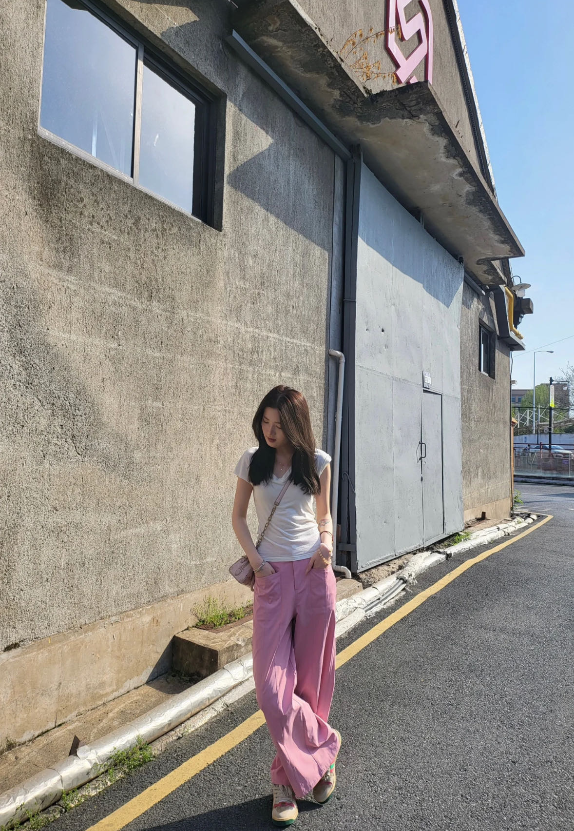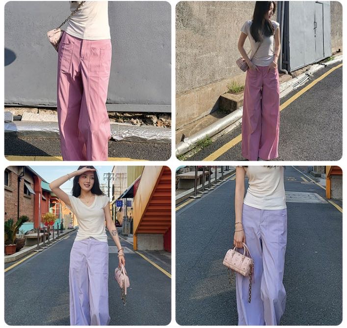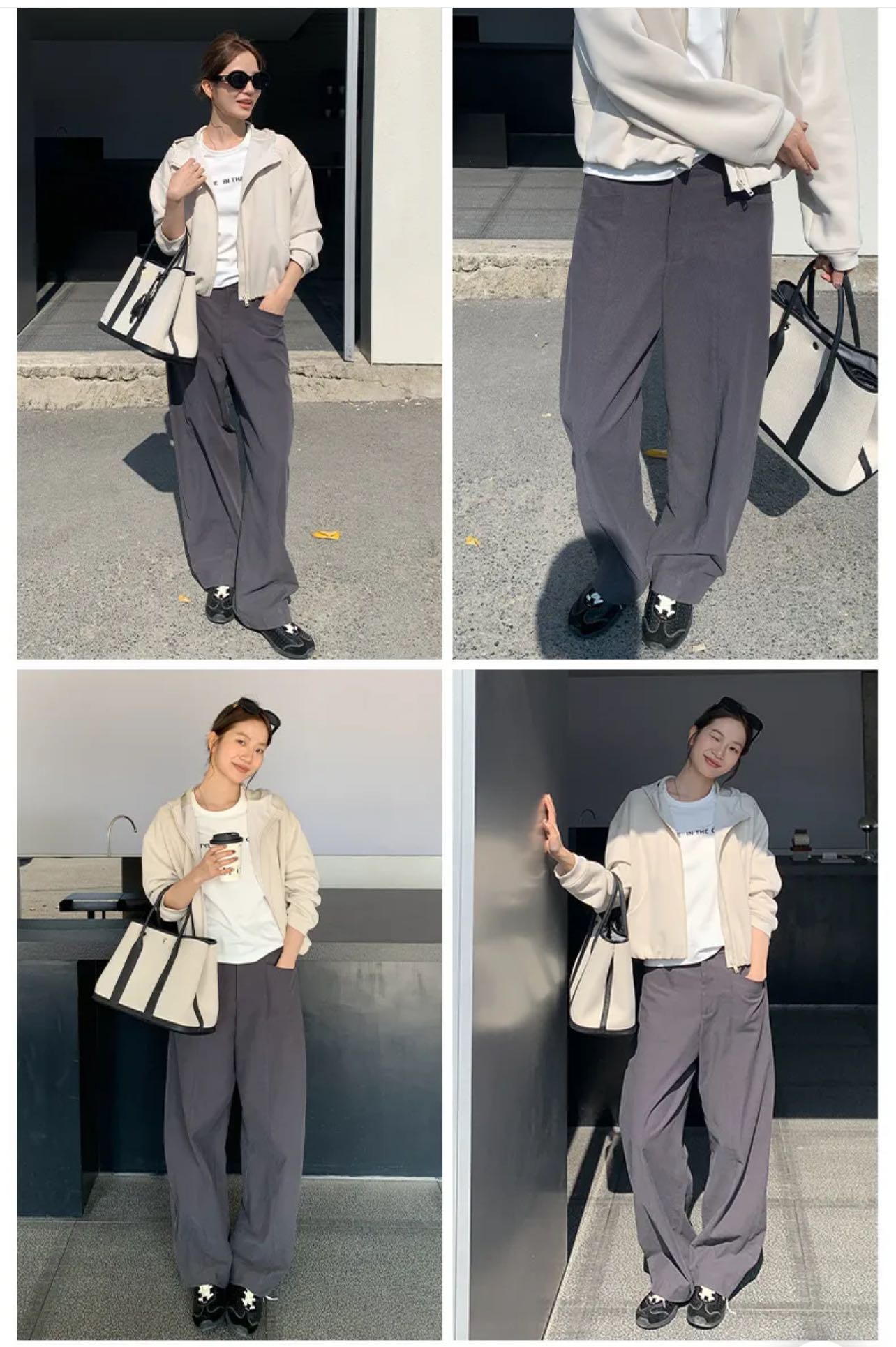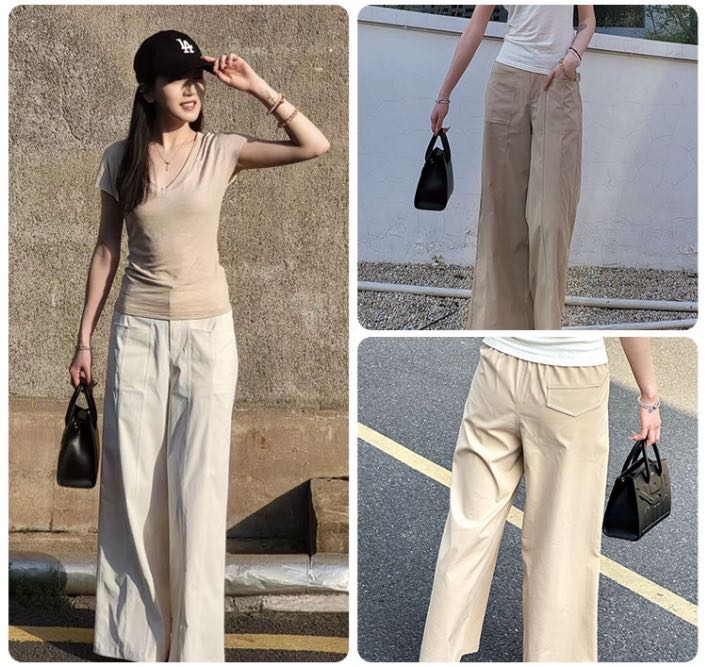 夏日清凉必备乳胶棉垂感阔腿裤奶白色透气休闲裤