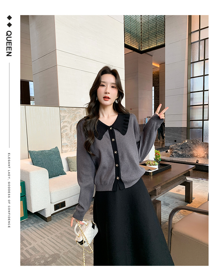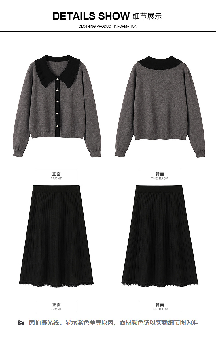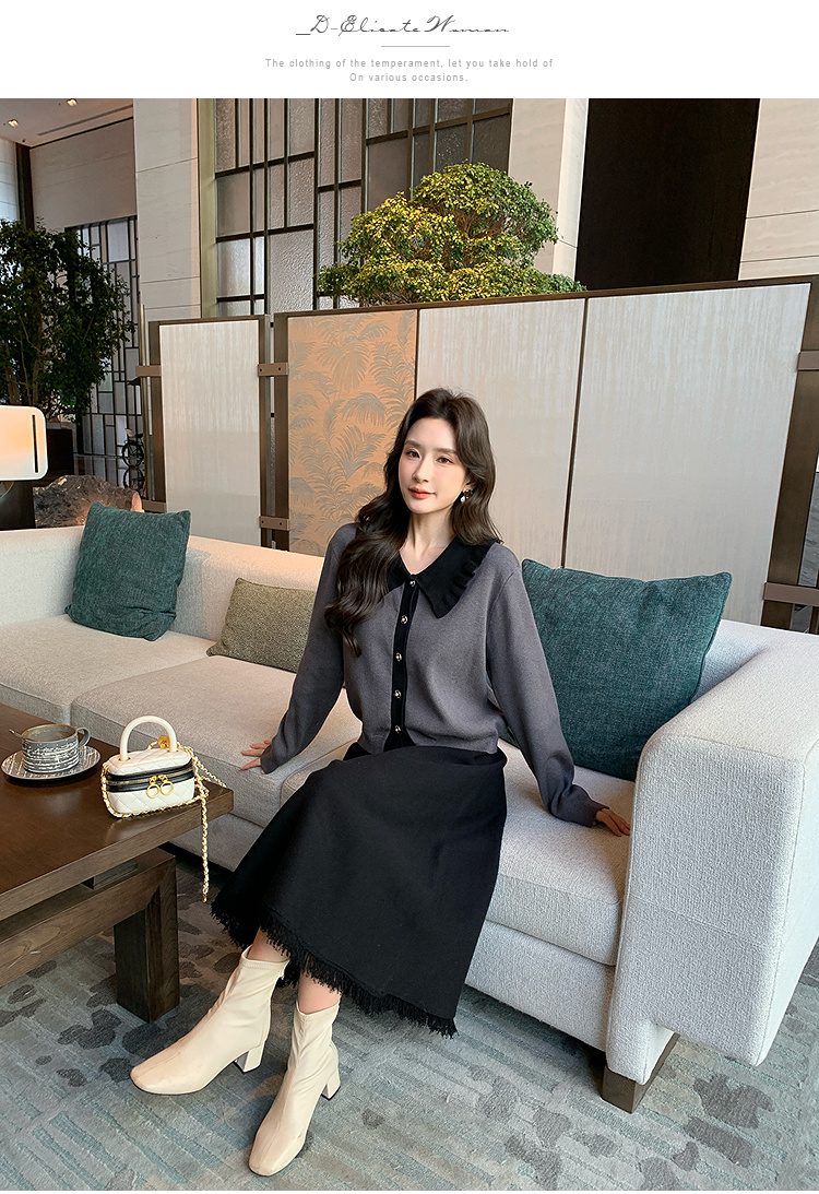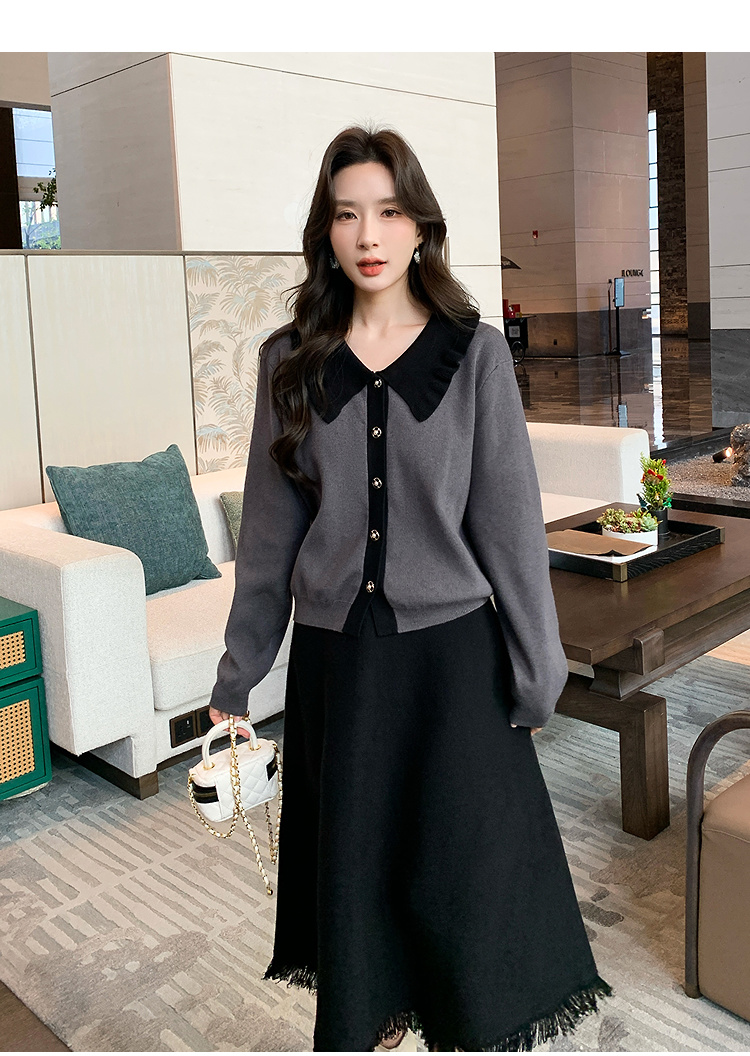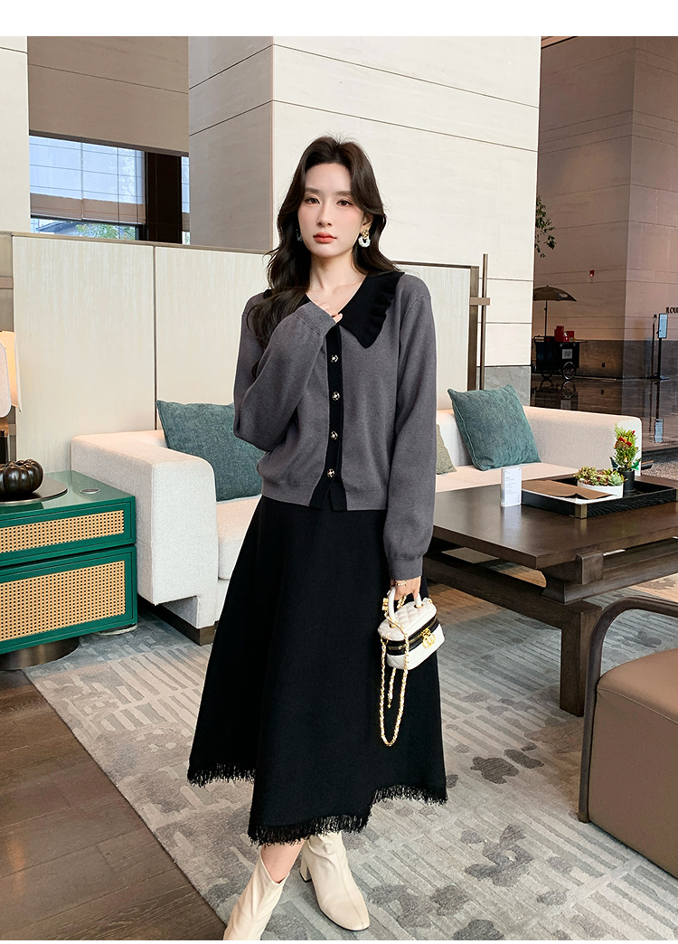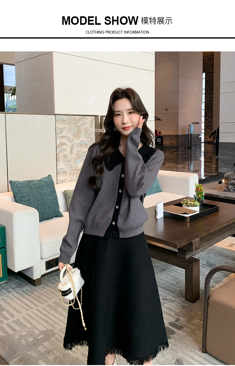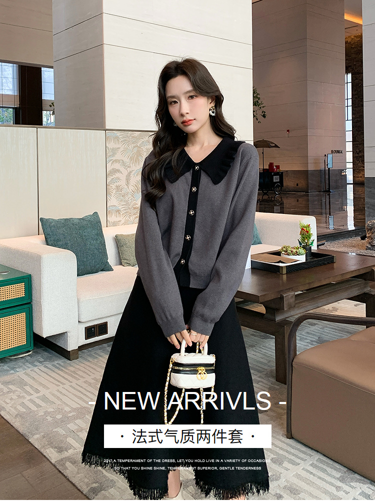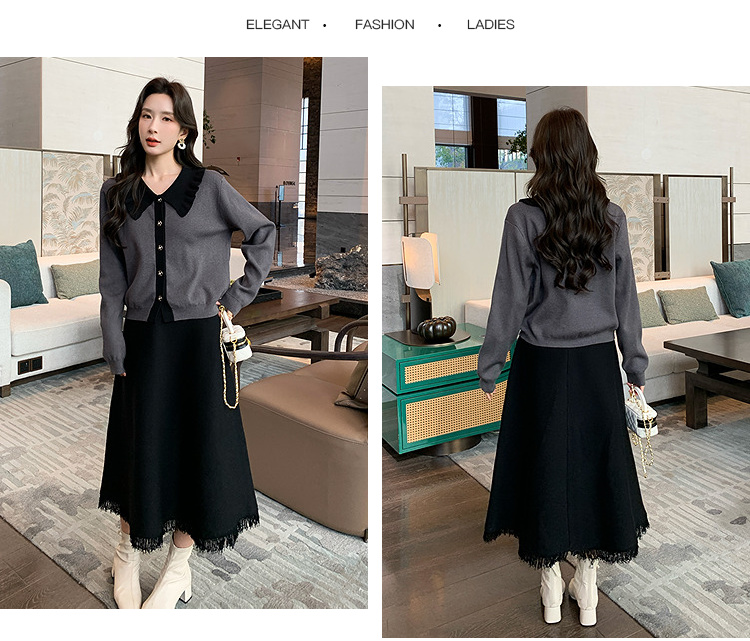 奢姿2025年冬季新款大码女装针织流苏半裙套装胖妹妹撞色两件套9844990317