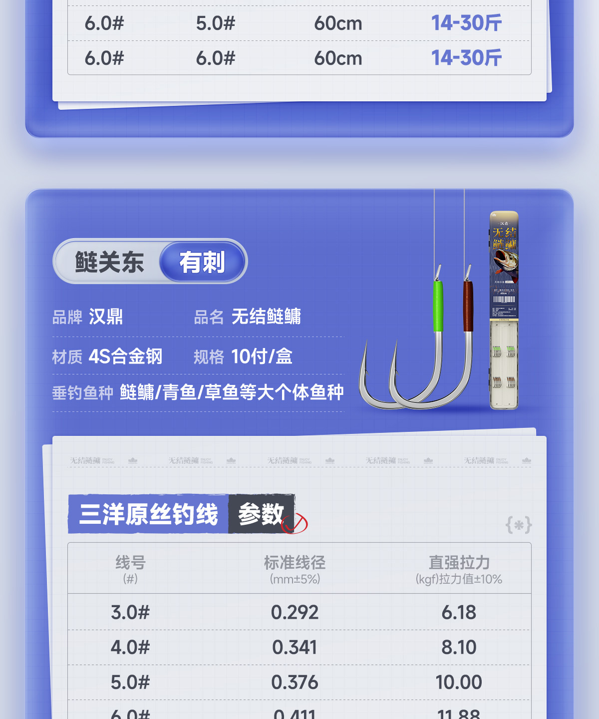 汉鼎无结鲢鳙子线双钩鲢关东子线成品双钩鲢鳙草鱼绑好有无刺鱼钩
