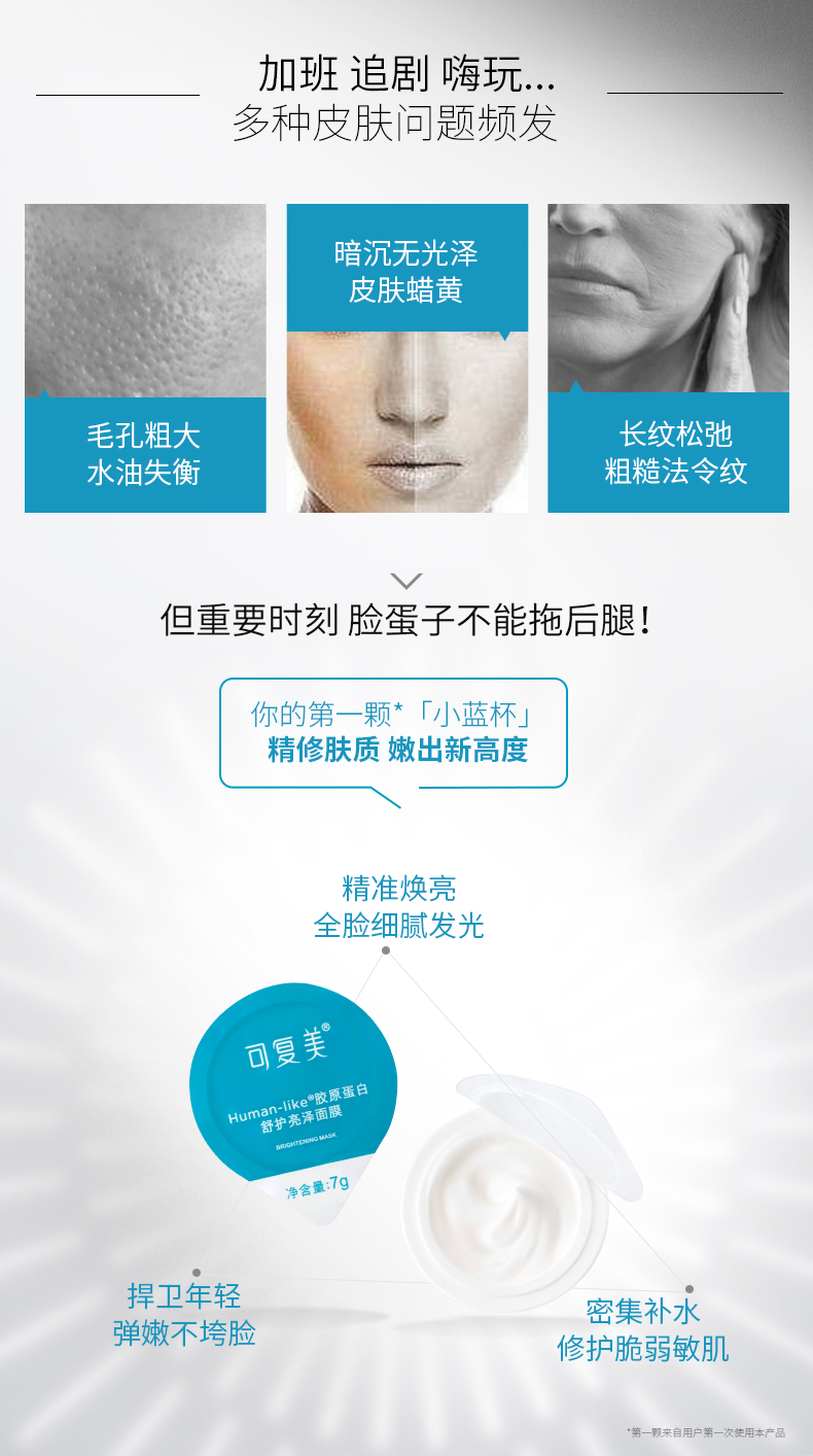 可复美涂抹式高光小蓝杯 焕亮细腻敏感肌修护补水锁水面膜5g*10杯