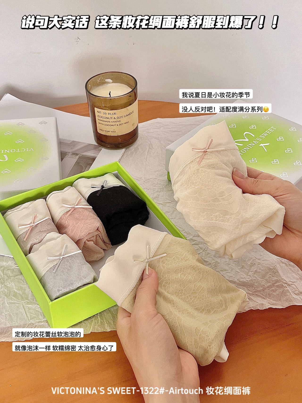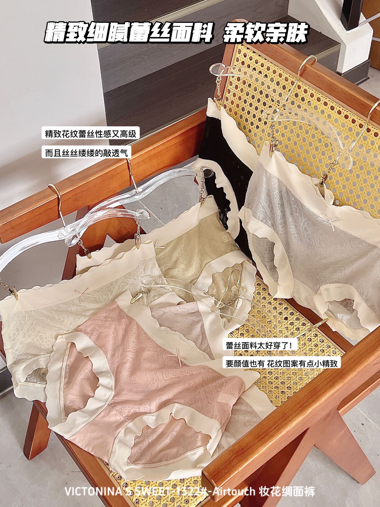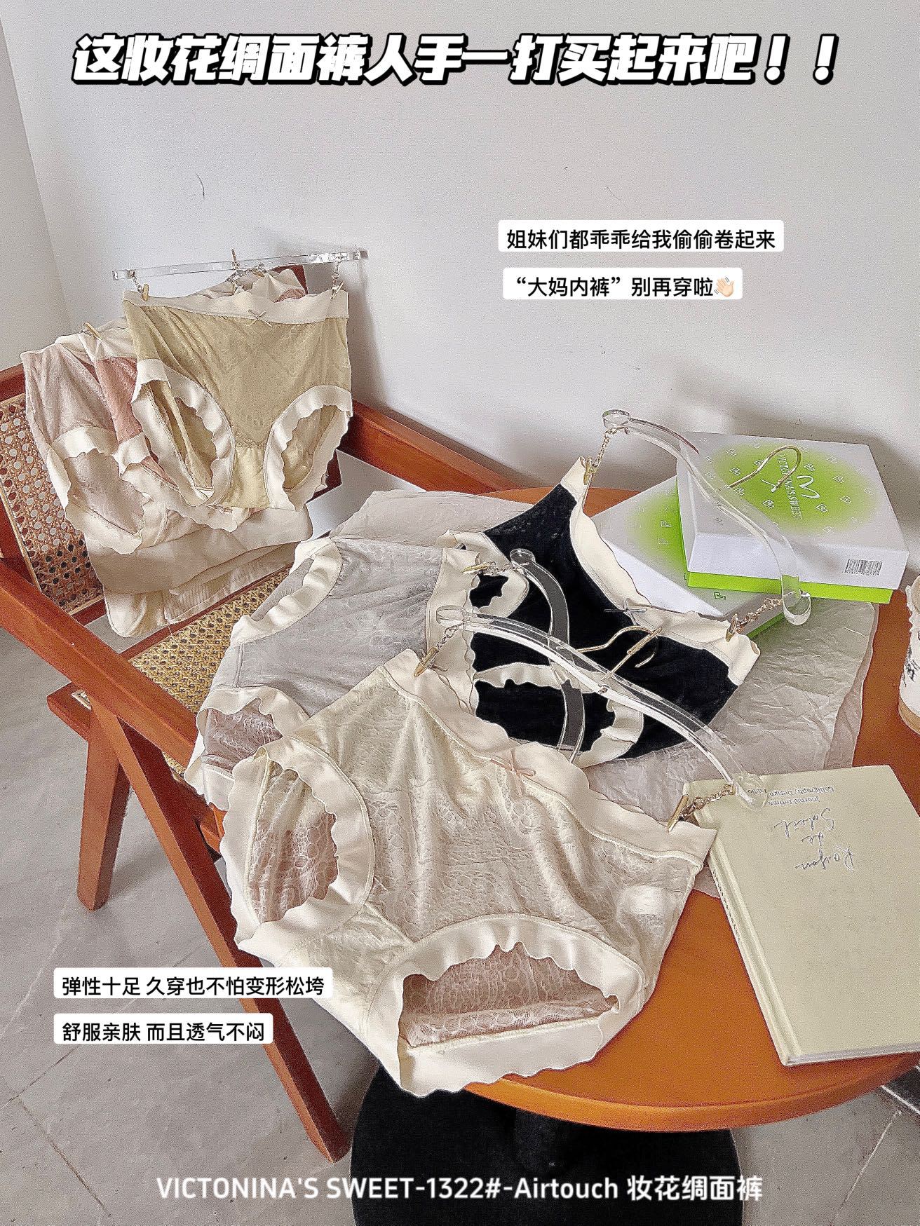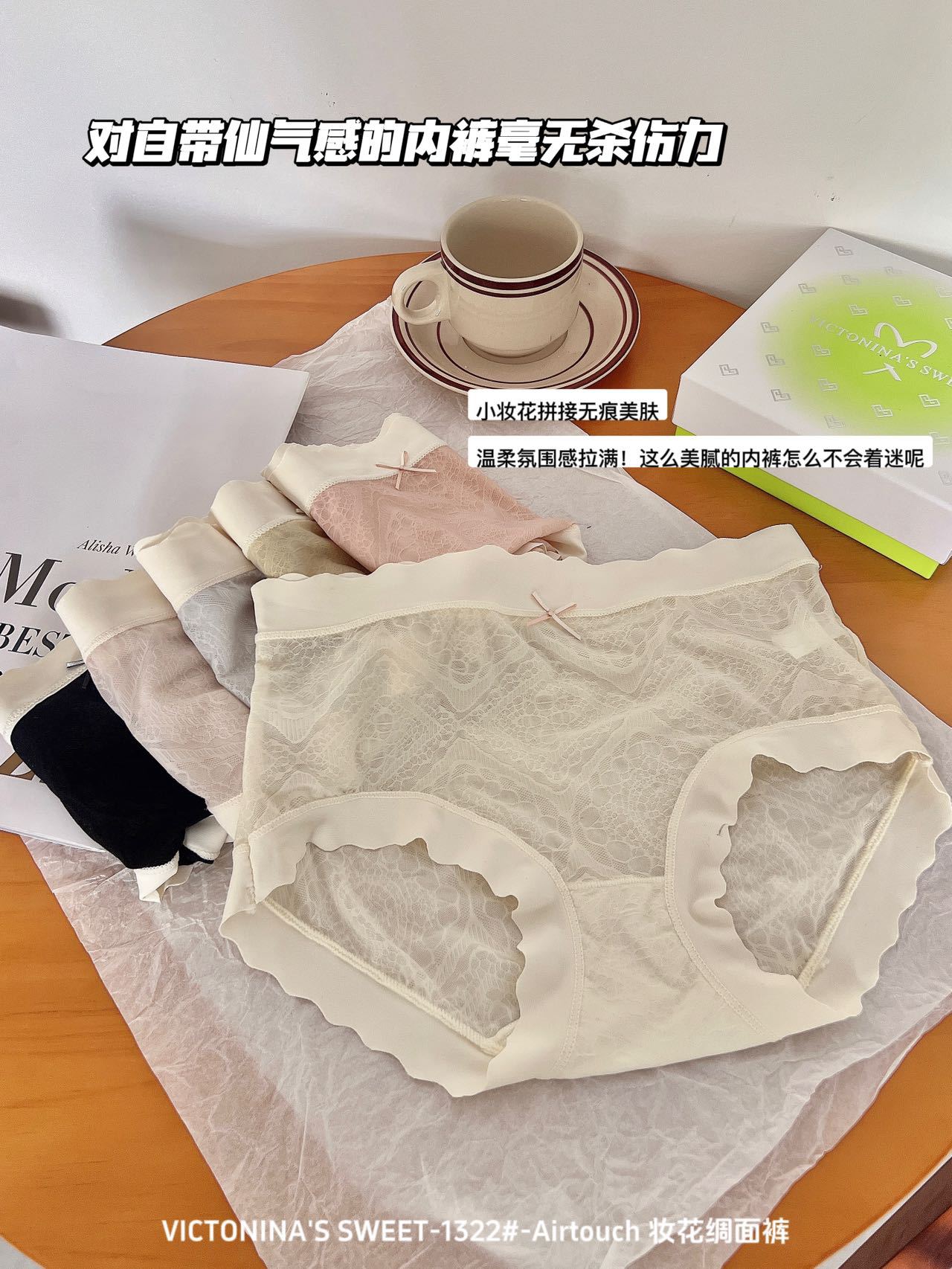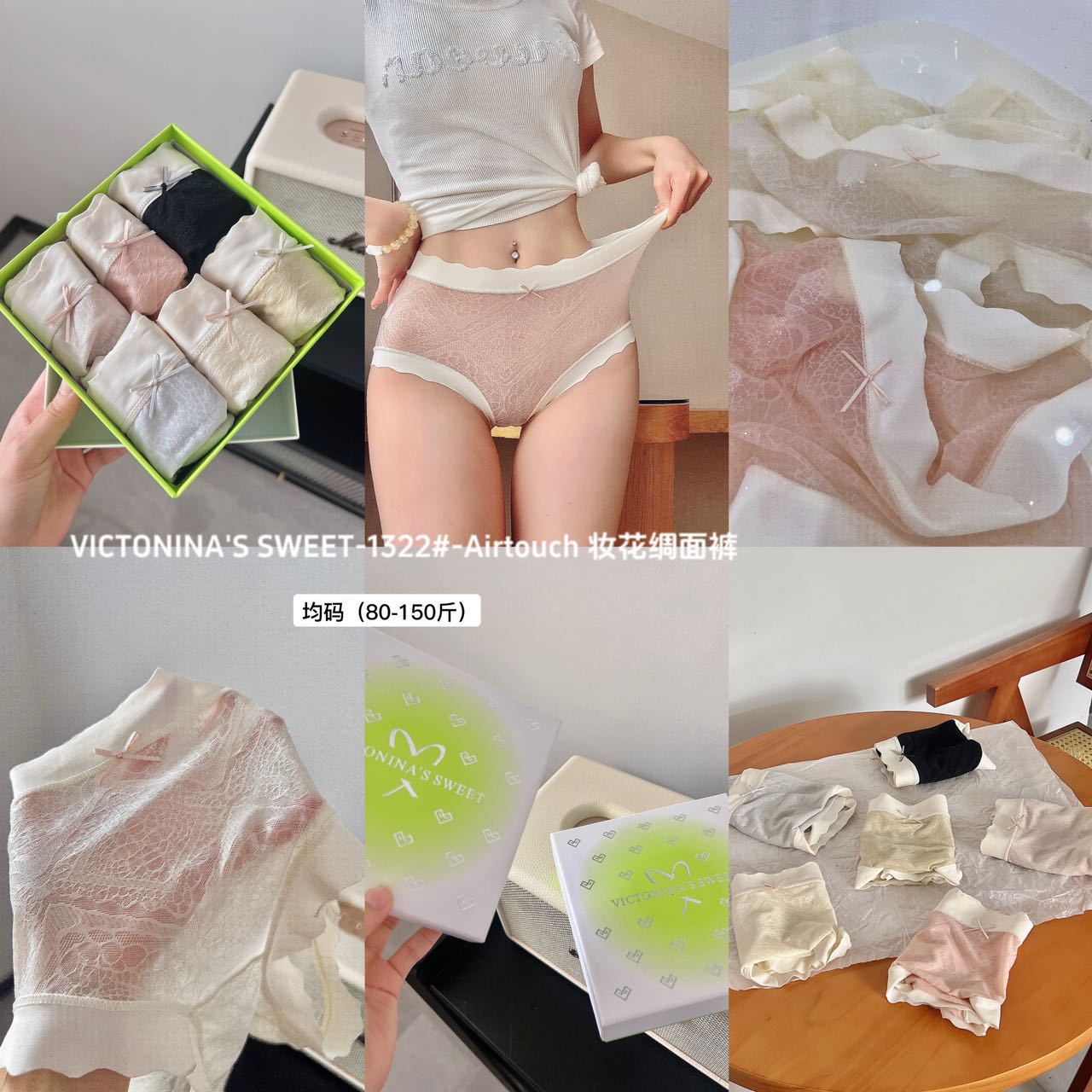 蕾丝6条装【妆花绸面裤】VICTONINA'S包臀中腰裸感内裤