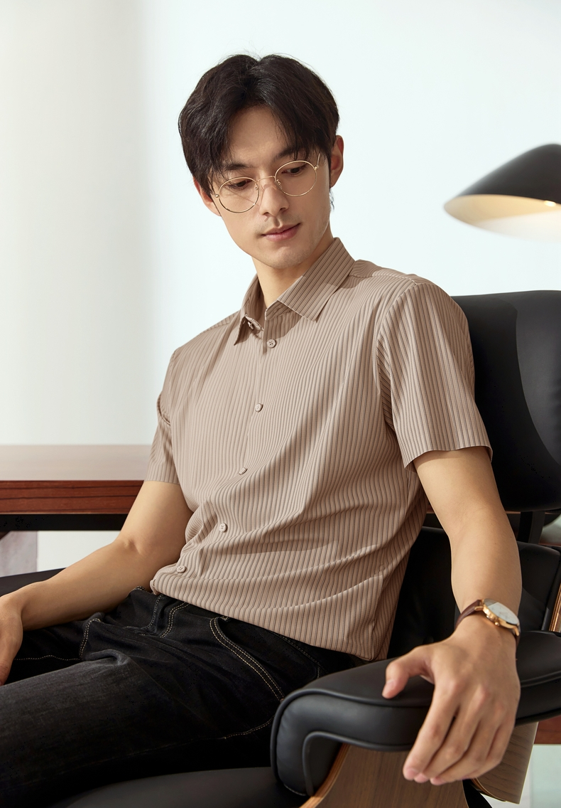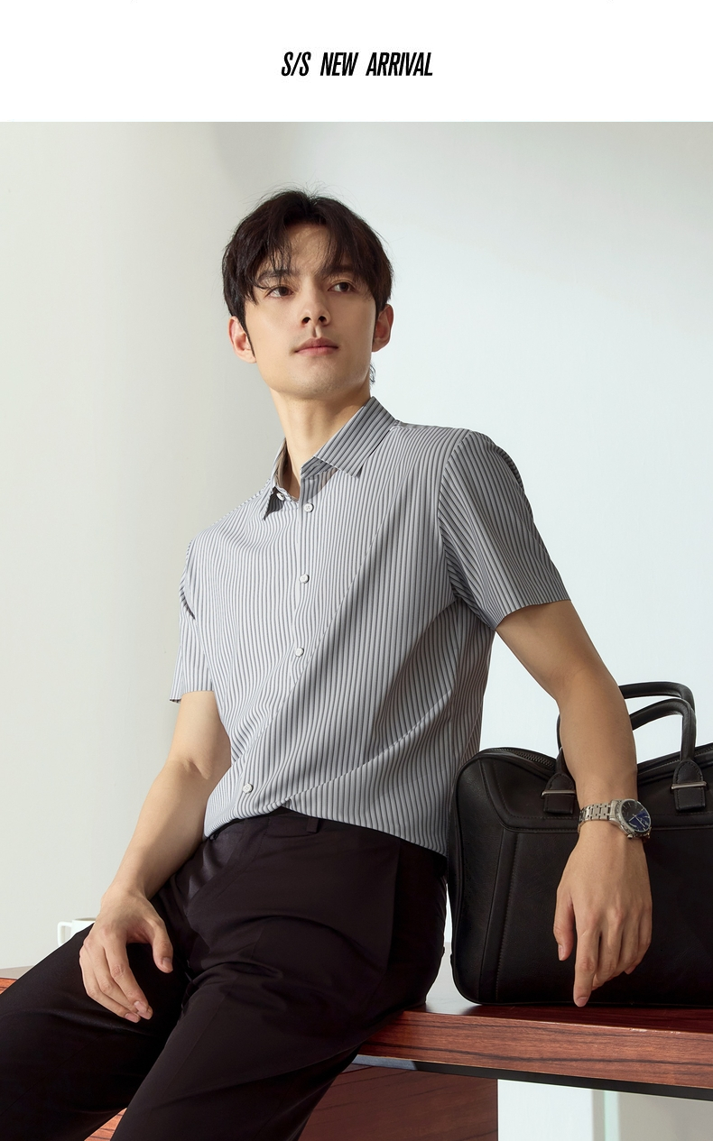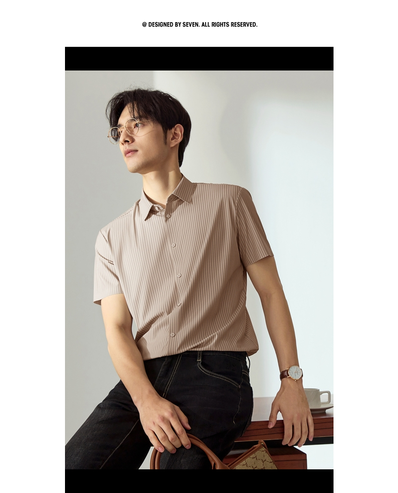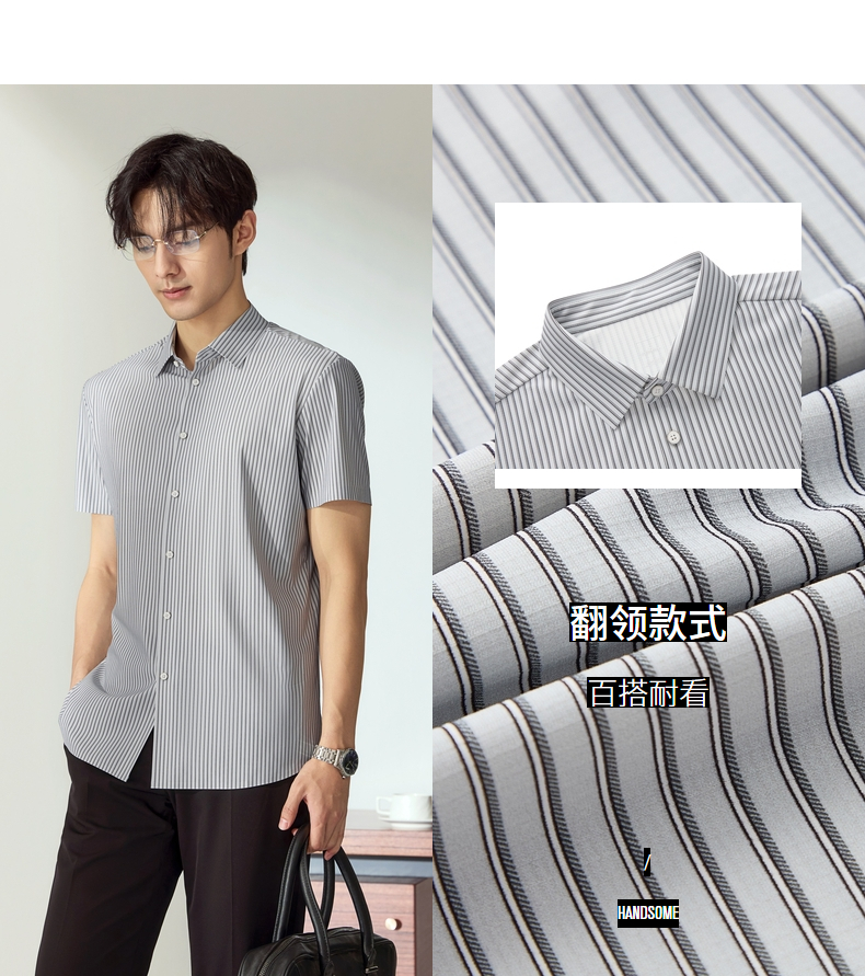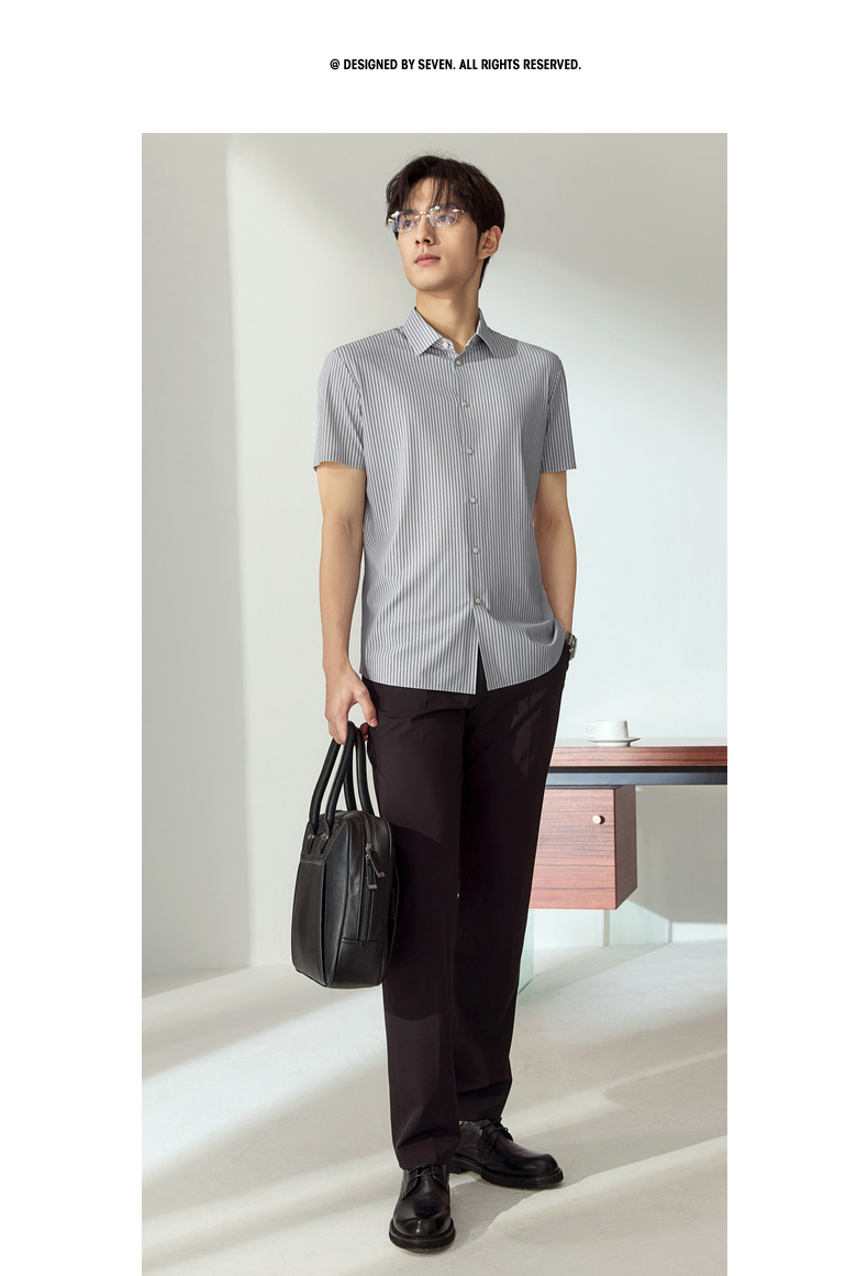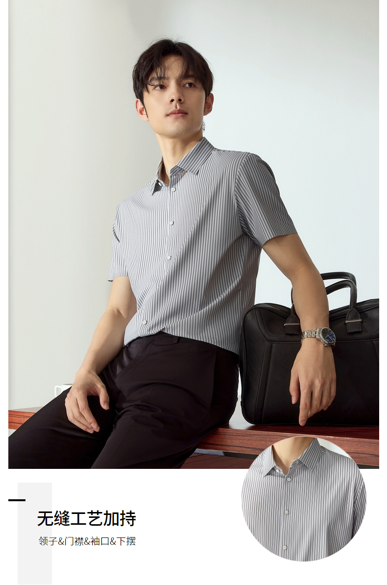 【高端系列/无缝工艺】柒牌条纹短袖衬衫男夏季新款休闲翻领衬衣128A70900
