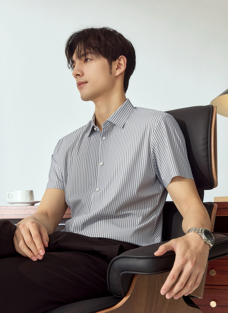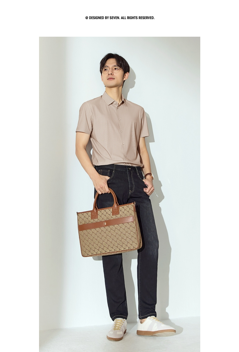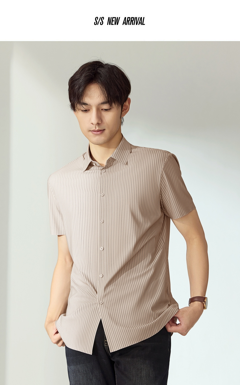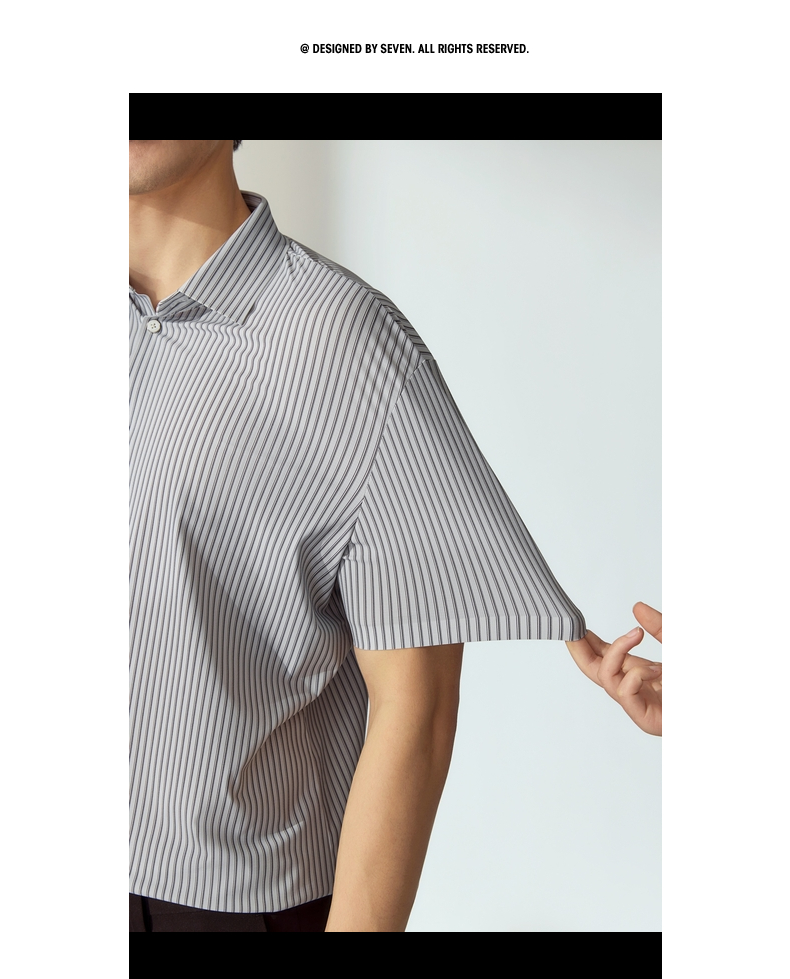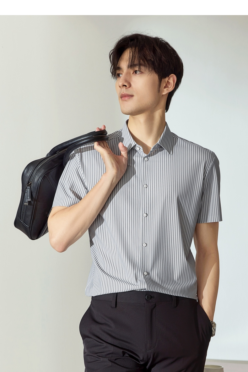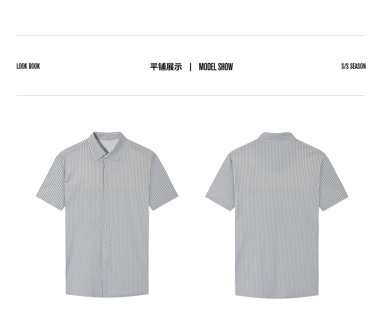 【高端系列/无缝工艺】柒牌条纹短袖衬衫男夏季新款休闲翻领衬衣128A70900