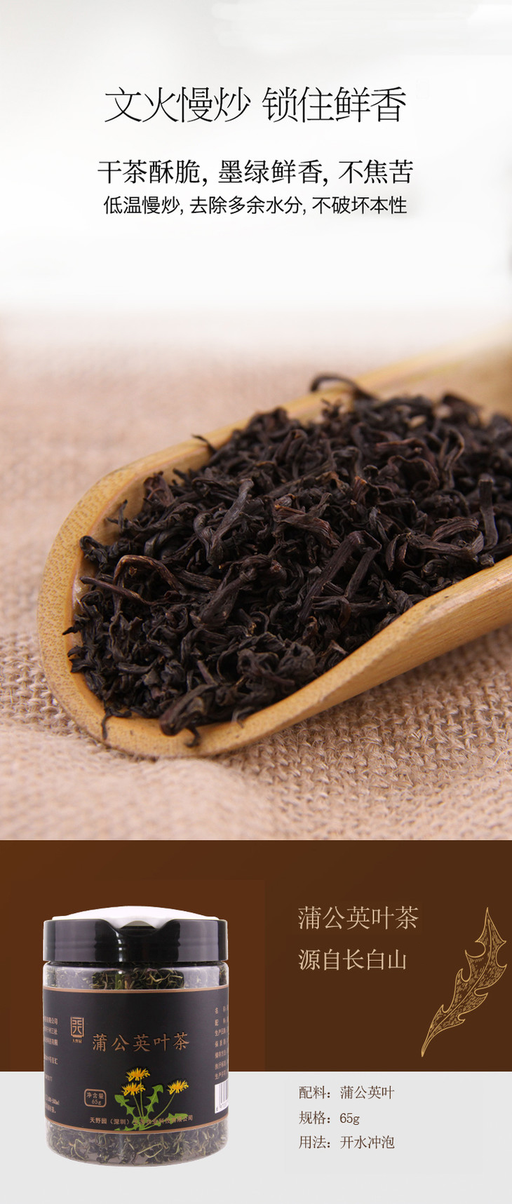 天野园·蒲公英叶茶 65g 长白山野生天然蒲公英 婆婆丁