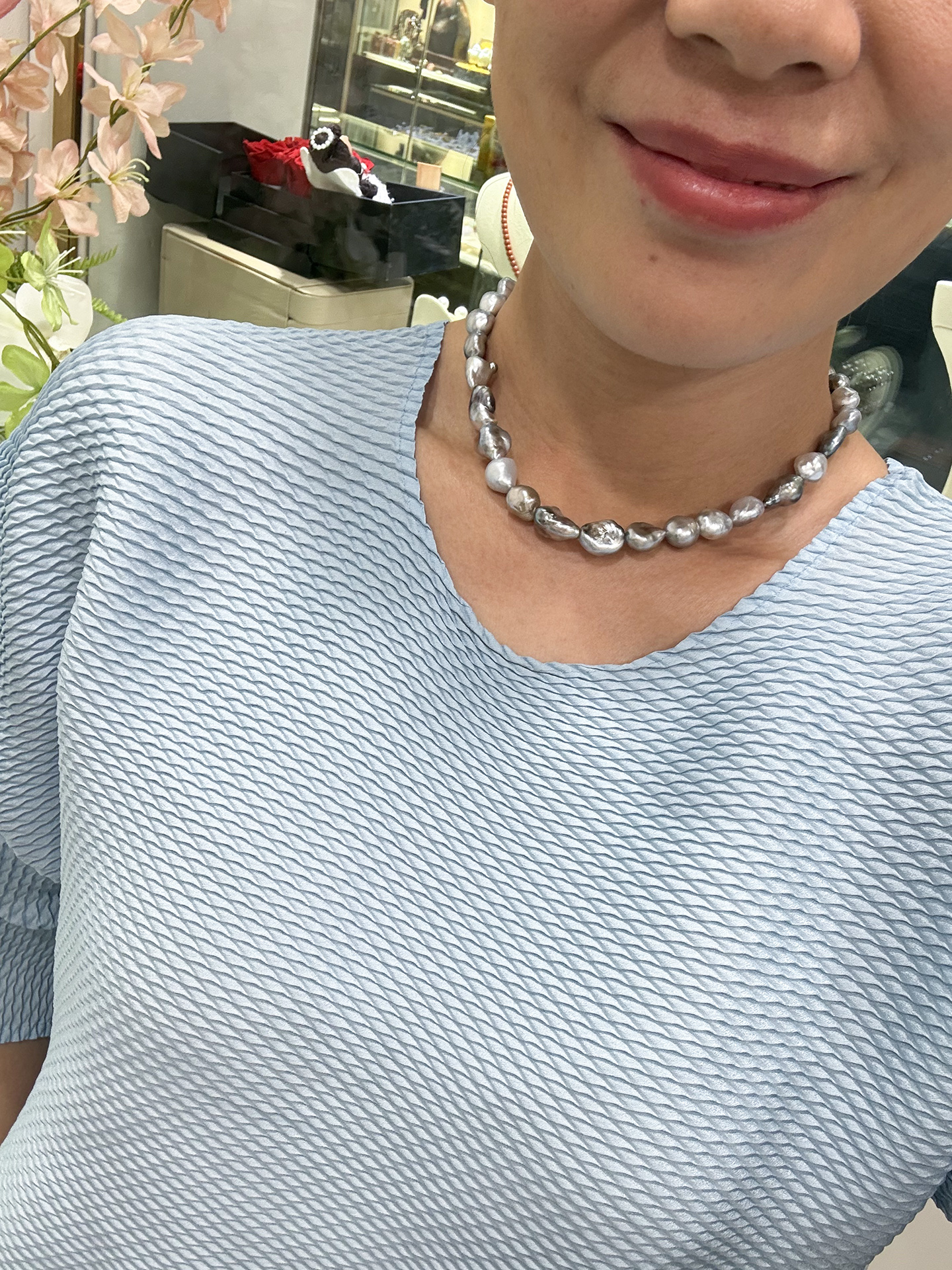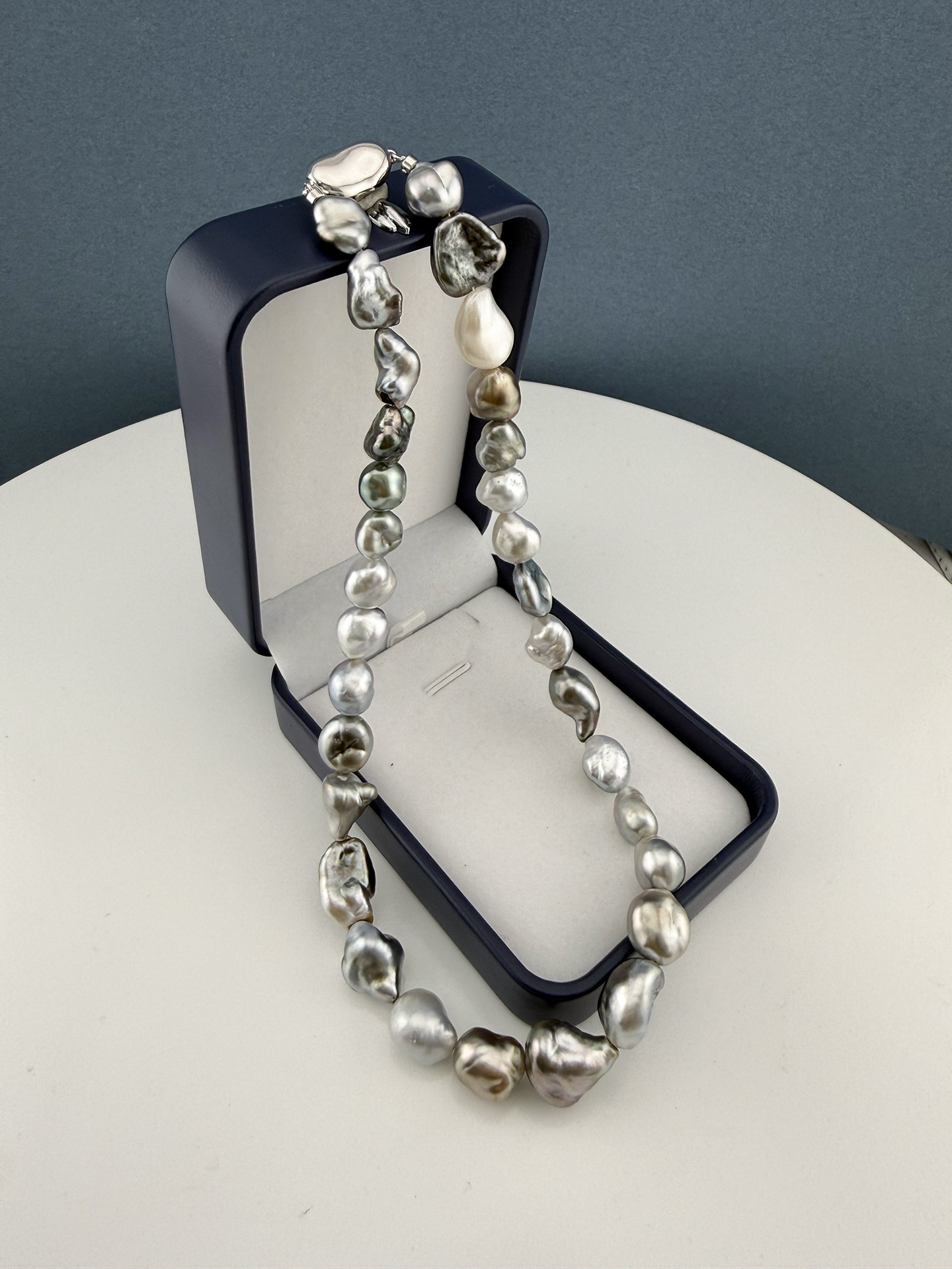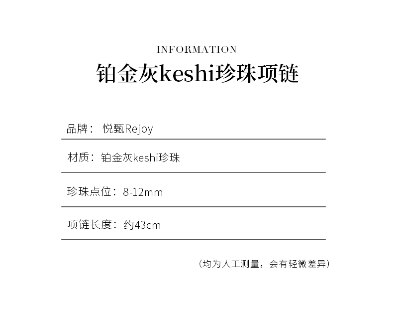 【挚友限定】铂金灰keshi珍珠项链 8-12mm