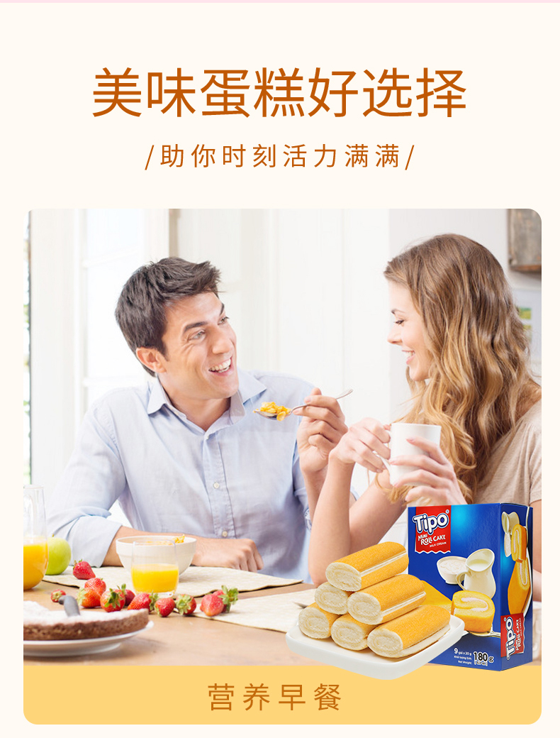 越南TIPO蛋糕卷180g牛奶味/草莓味 轻咬一口细腻清新柔嫩香甜 独立包装 052884/052885