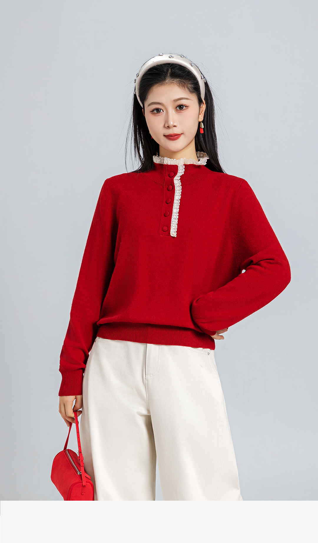 春上新温柔气质蕾丝拼接立领显瘦打底毛衣1261014 商品图3