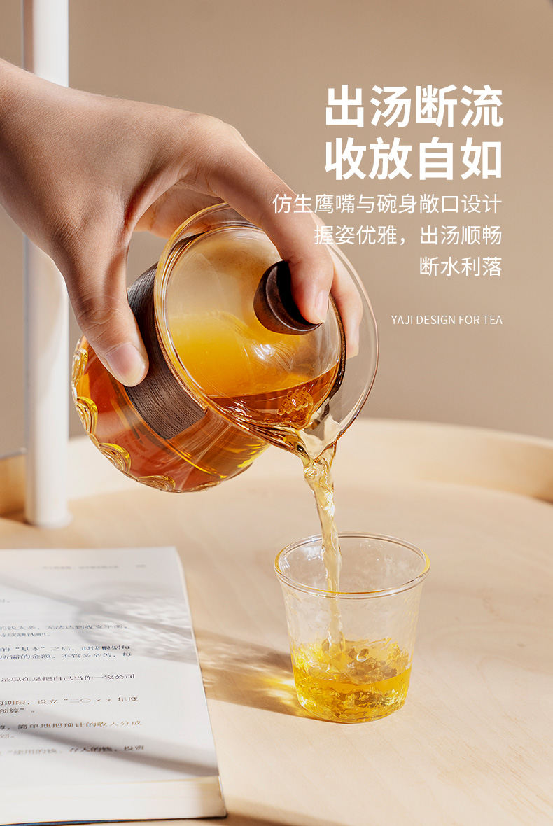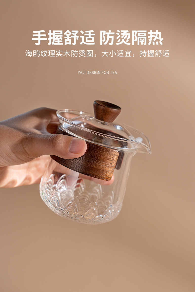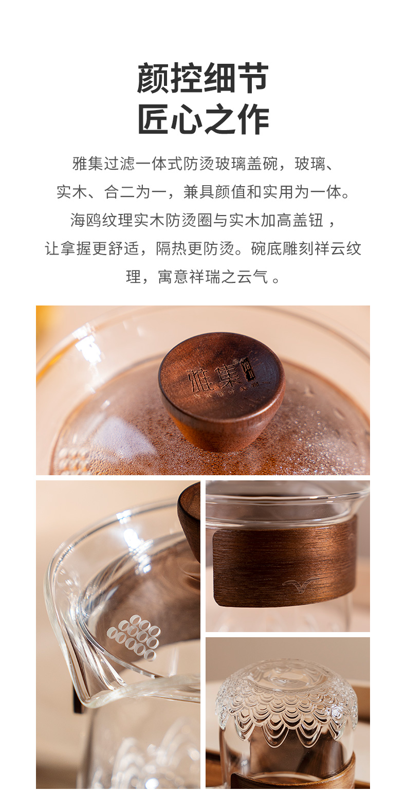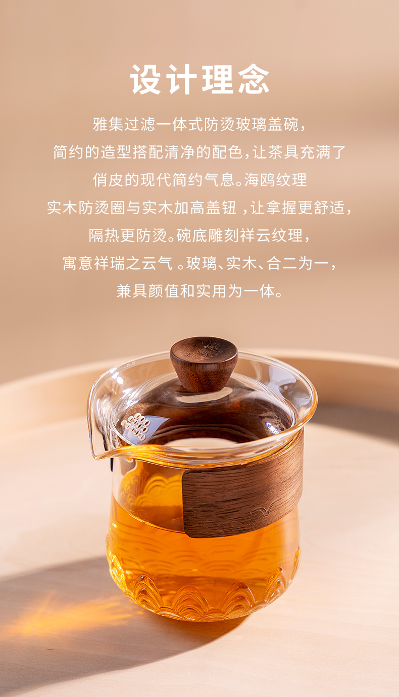 雅集茶具防烫玻璃盖碗250ml(祥云福袋)