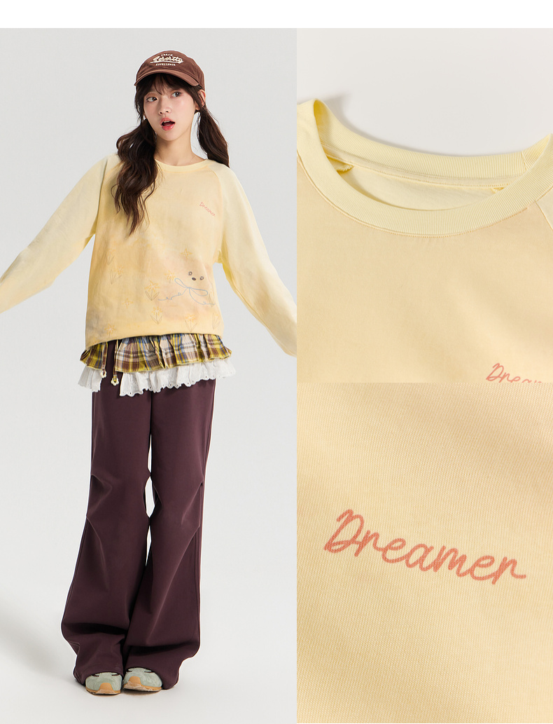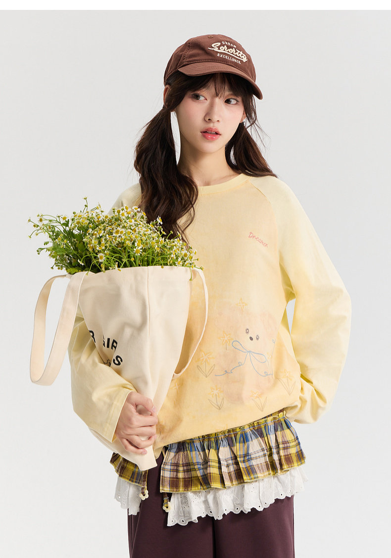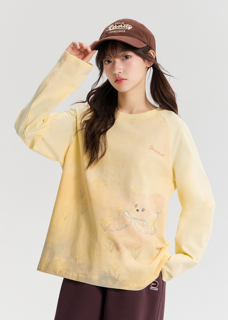 笛莎/Deesha 青少年2026年春季新款手绘长袖插肩图案T恤