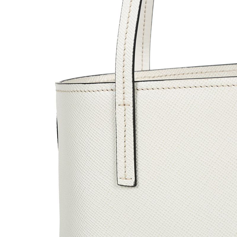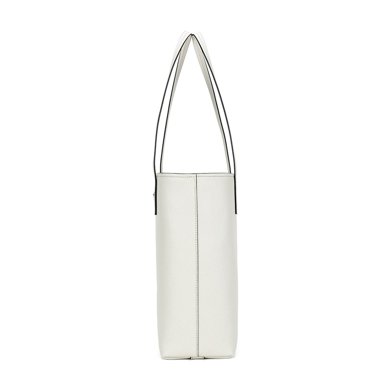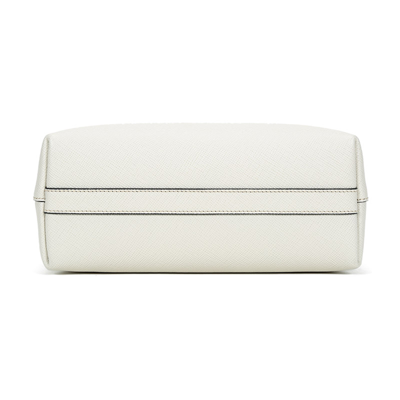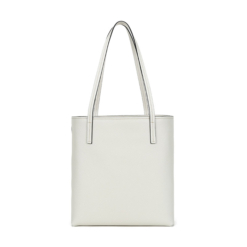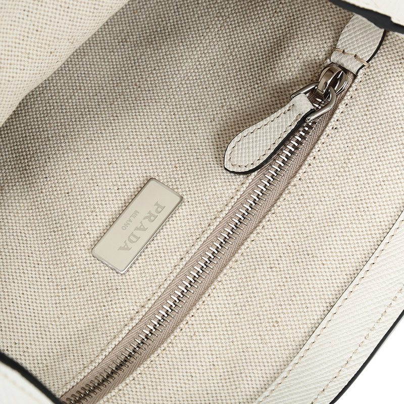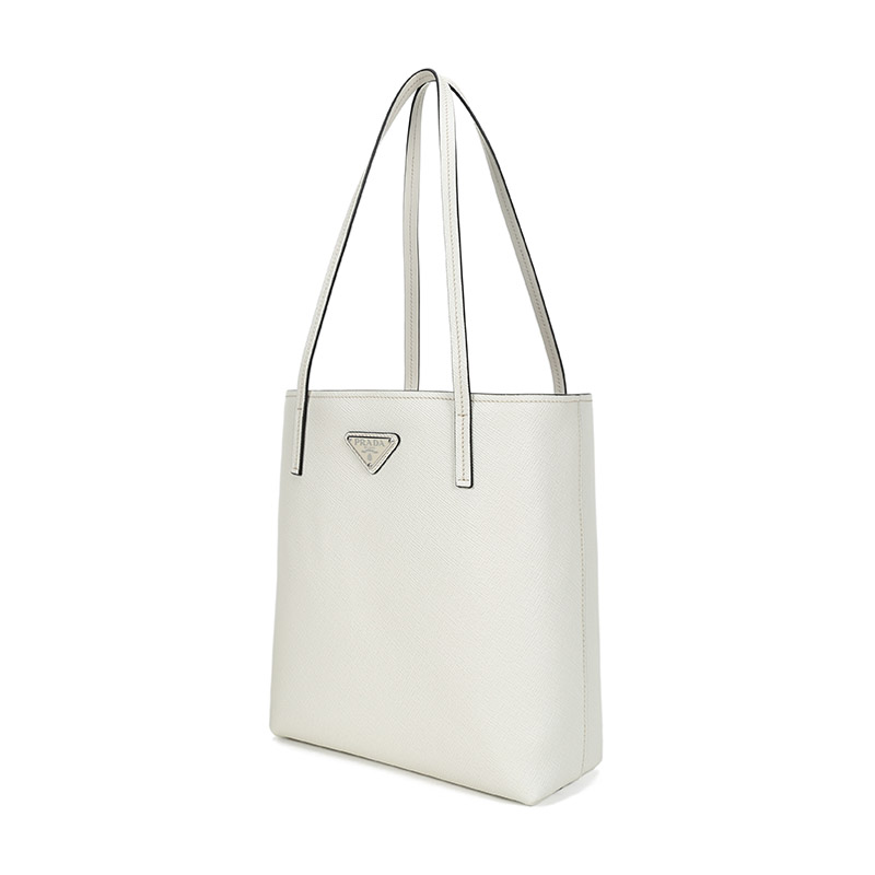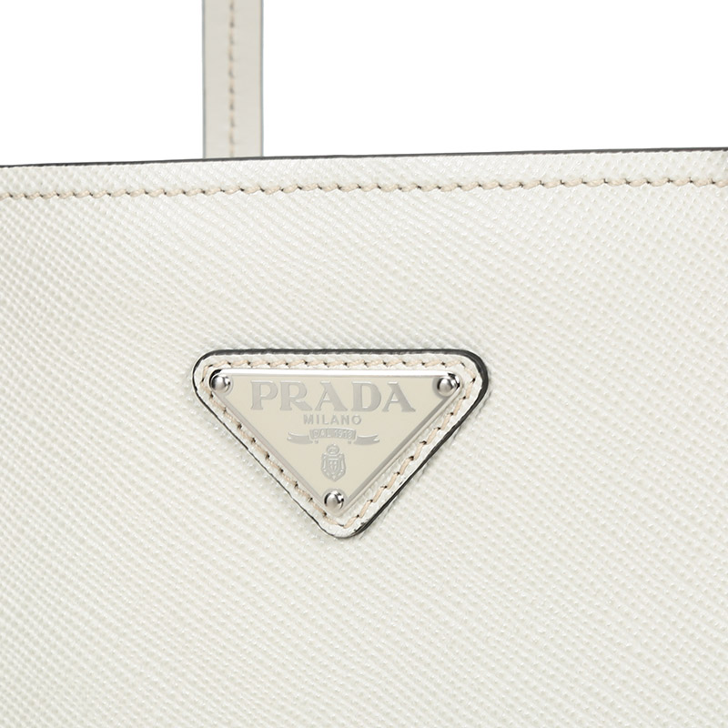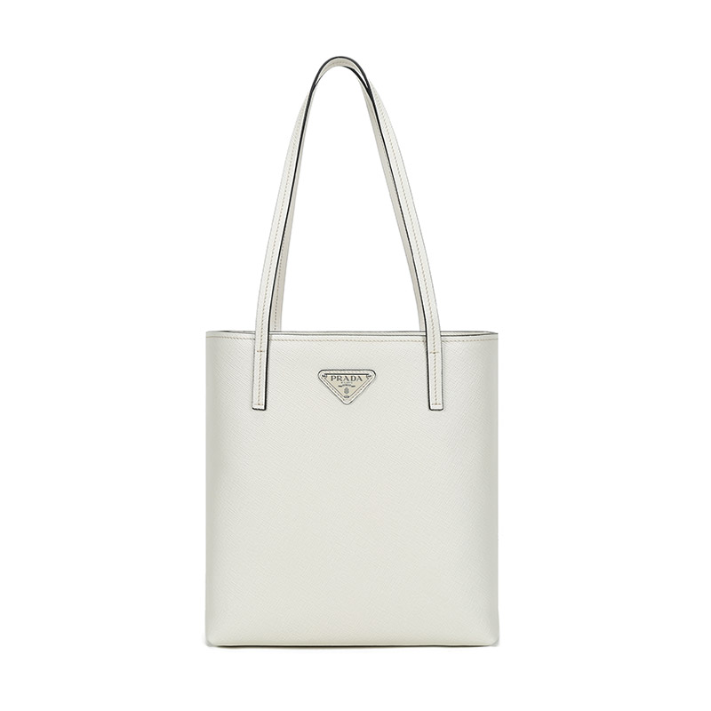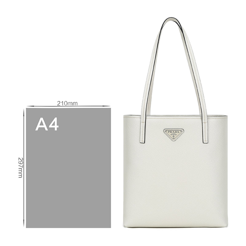 品牌:PRADA/普拉达 产地:意大利等国(批次不同,产地不同) 款式:女士 颜色:粉笔白 材质:皮革 结构:开放式包口,内置1个拉链贴袋 尺寸:宽约26cm,高约28cm,厚约11cm,手提高约26cm 备注:批次不同,货品略有差异,以实物为准