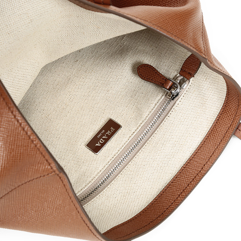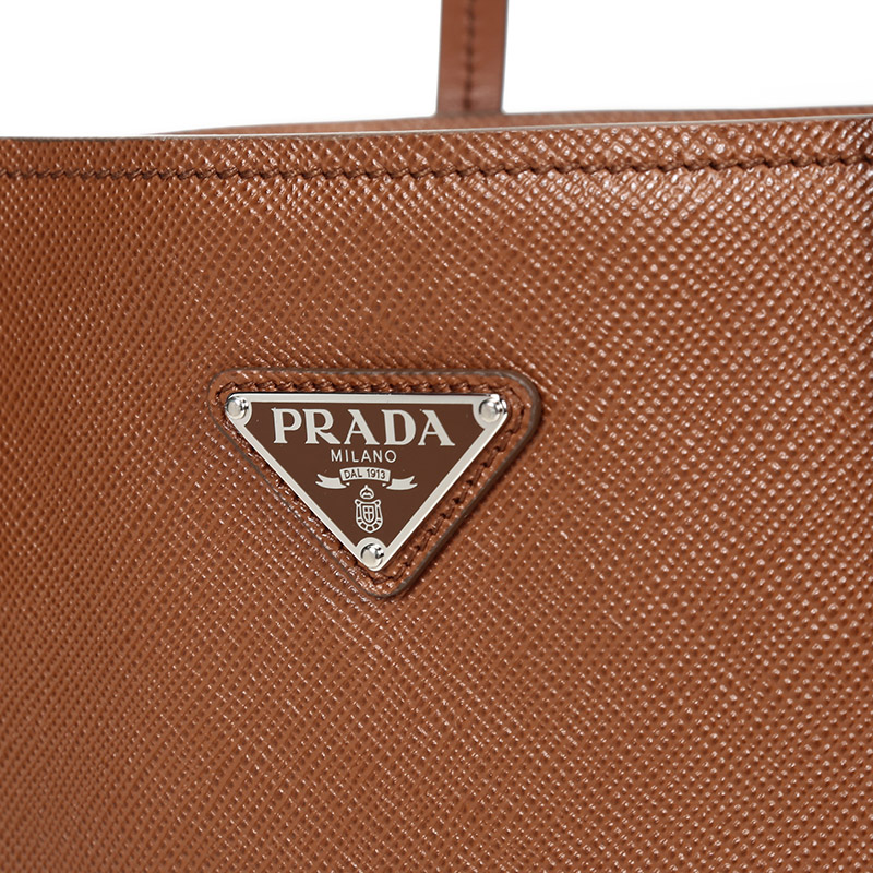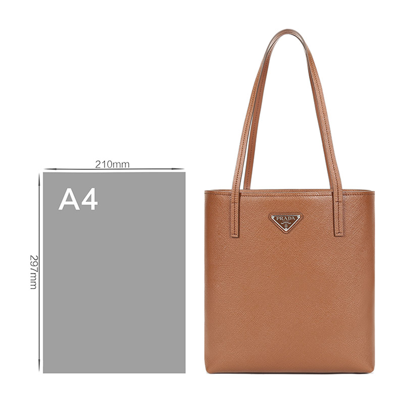 品牌:PRADA/普拉达 产地:意大利等国(批次不同,产地不同) 款式:女士 颜色:干邑色 材质:皮革 结构:开放式包口,内置1个拉链贴袋 尺寸:宽约26cm,高约28cm,厚约11cm,手提高约26cm 备注:批次不同,货品略有差异,以实物为准