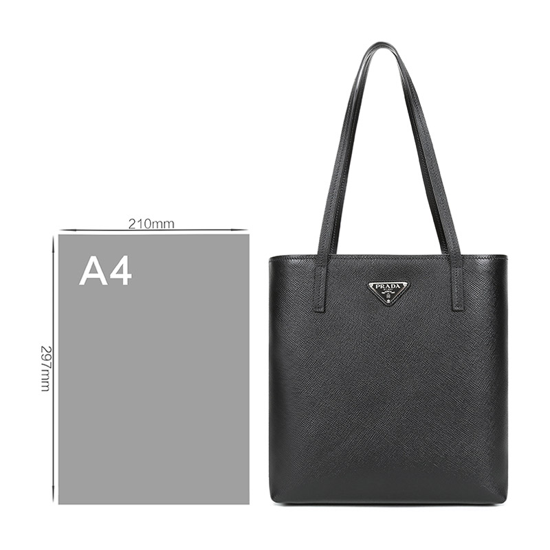 品牌:PRADA/普拉达 产地:意大利等国(批次不同,产地不同) 款式:女士 颜色:黑色 材质:皮革 结构:开放式包口,内置1个拉链贴袋 尺寸:宽约26cm,高约28cm,厚约11cm,手提高约26cm 备注:批次不同,货品略有差异,以实物为准