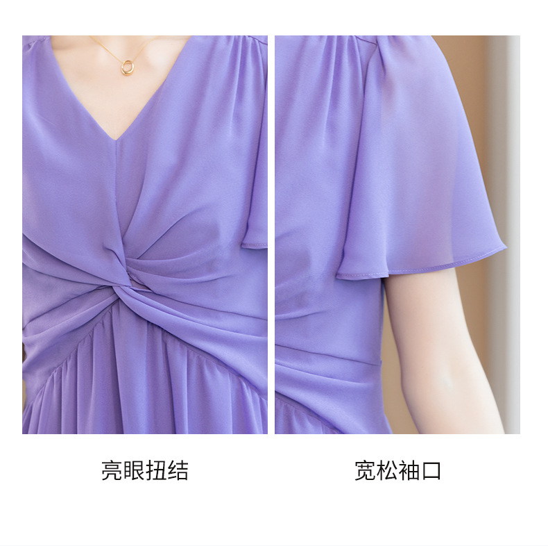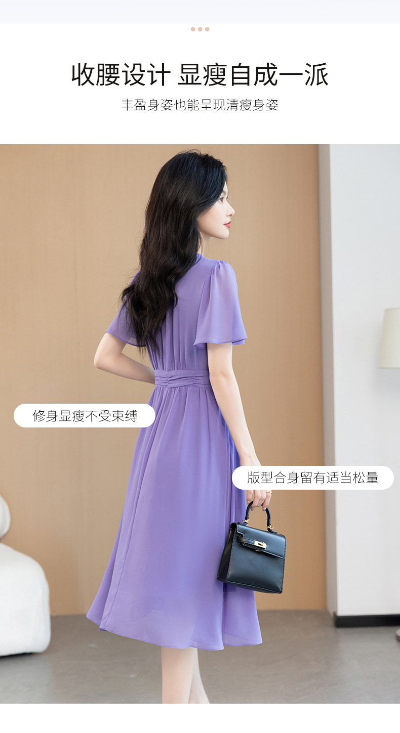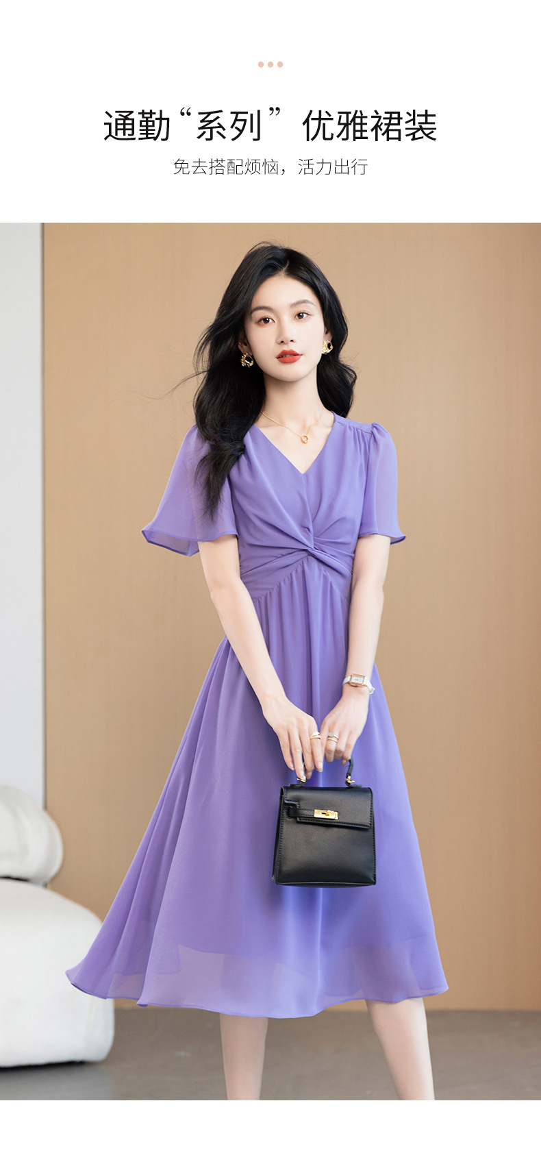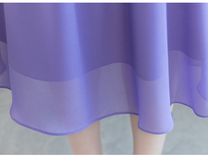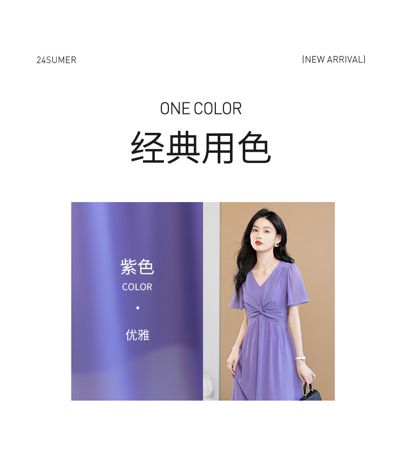 时尚高腰褶皱垂感纯色,中长裙短袖A字裙QYM-TB-FD1339-Y