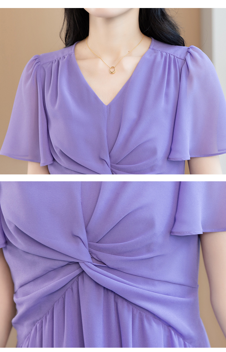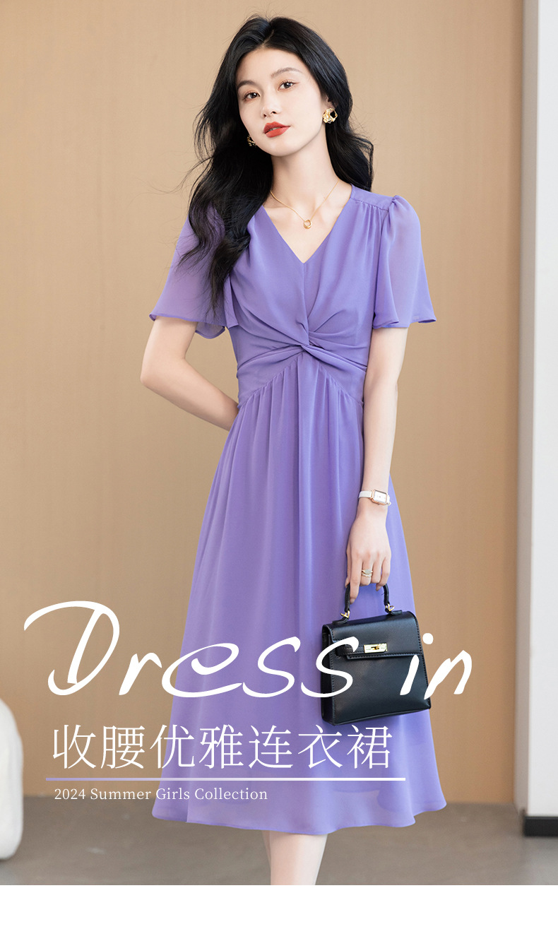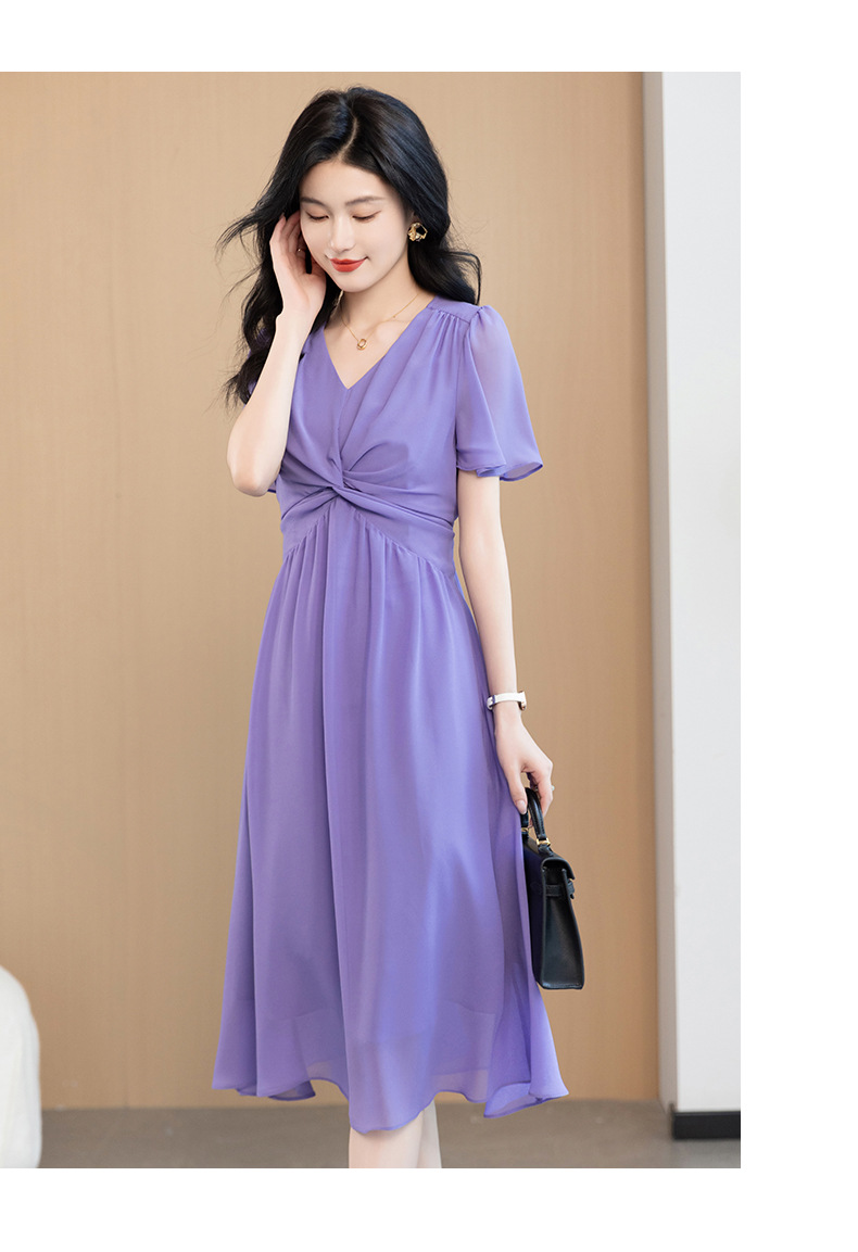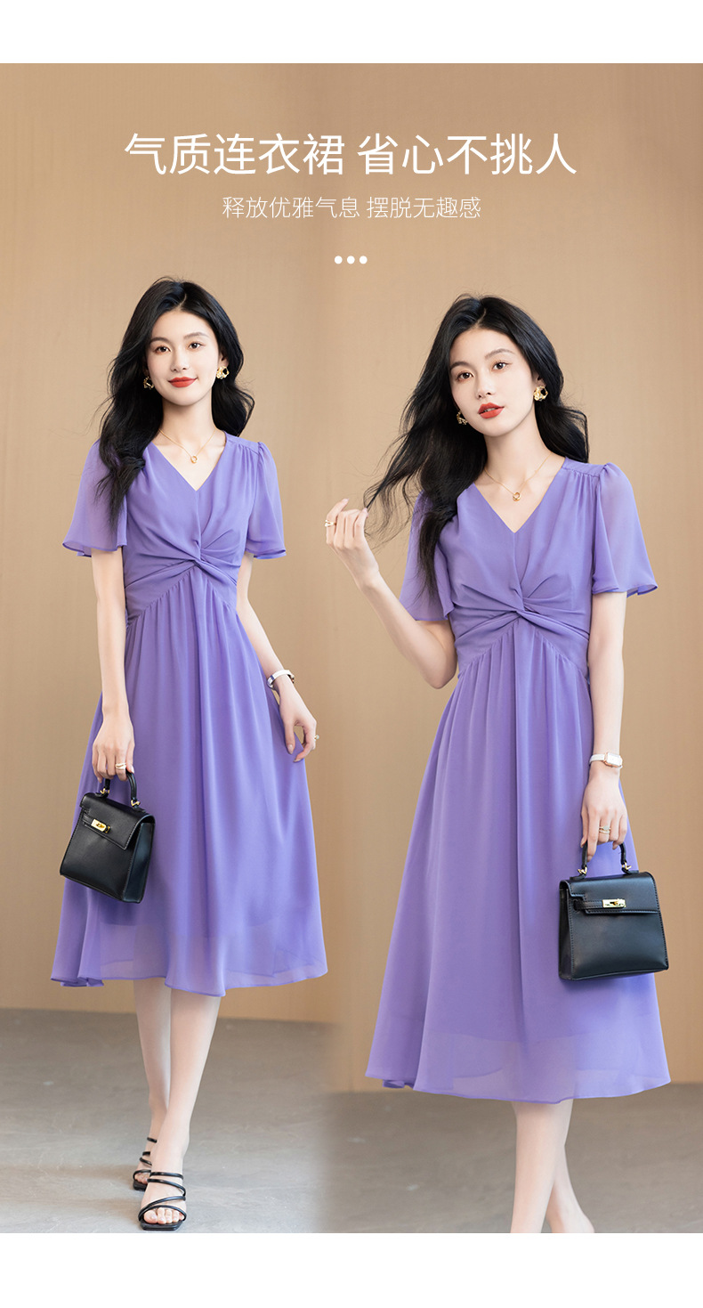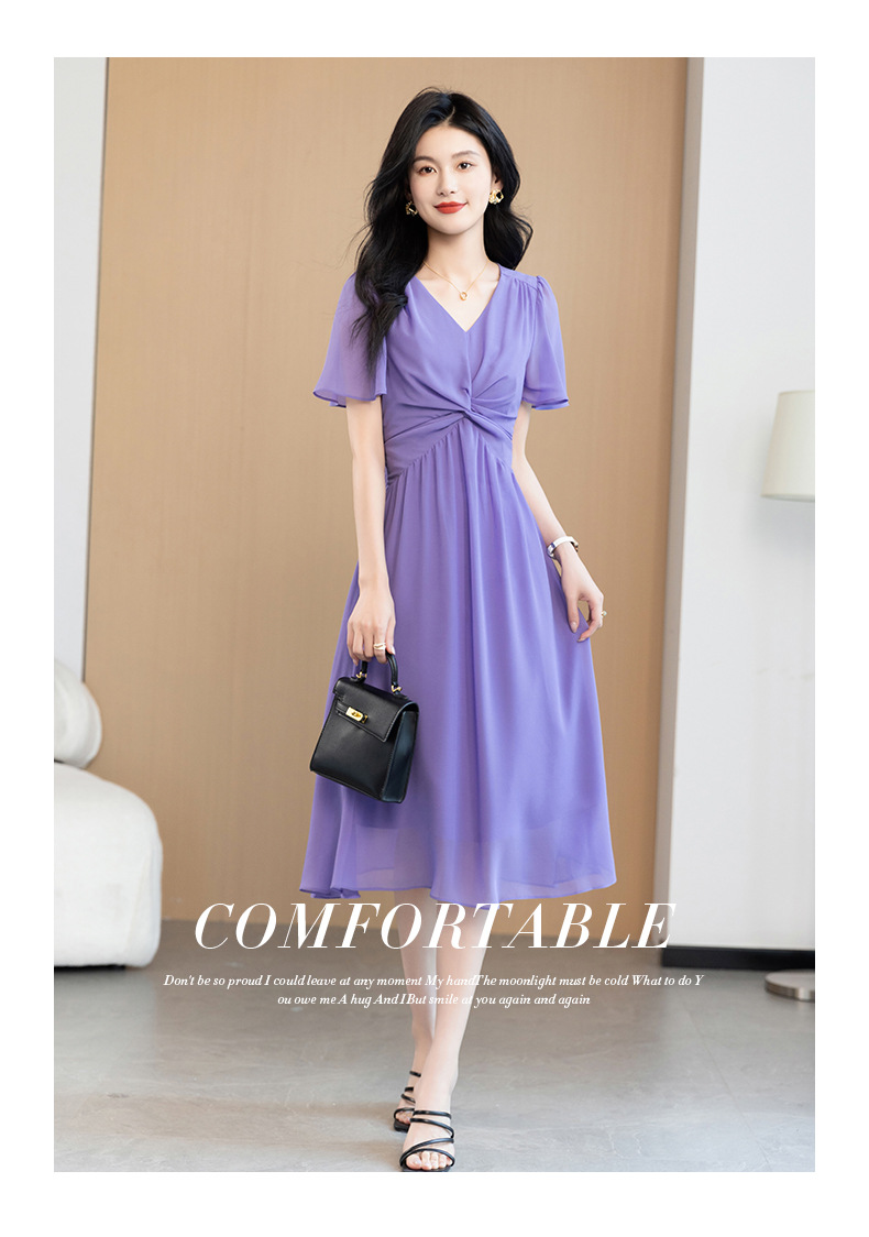 时尚高腰褶皱垂感纯色,中长裙短袖A字裙QYM-TB-FD1339-Y