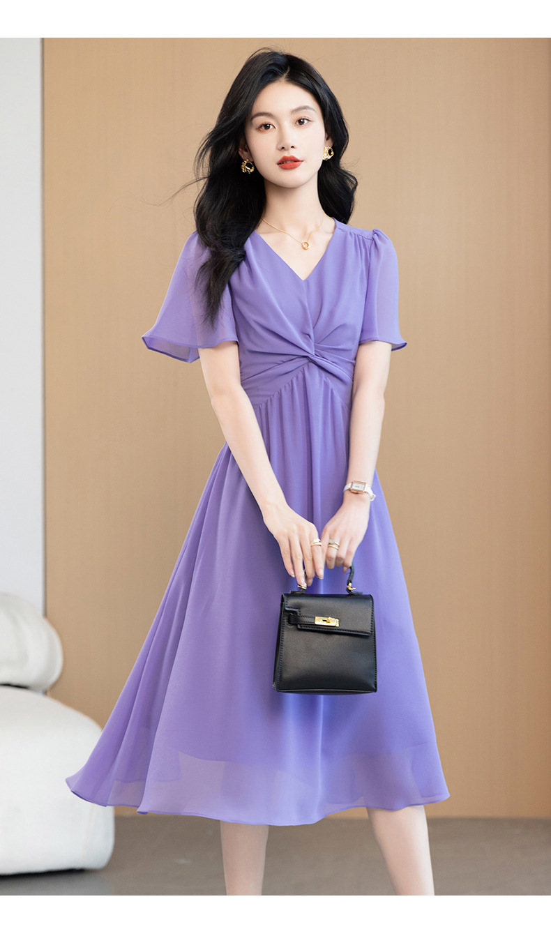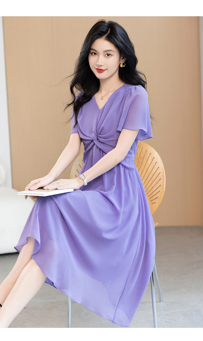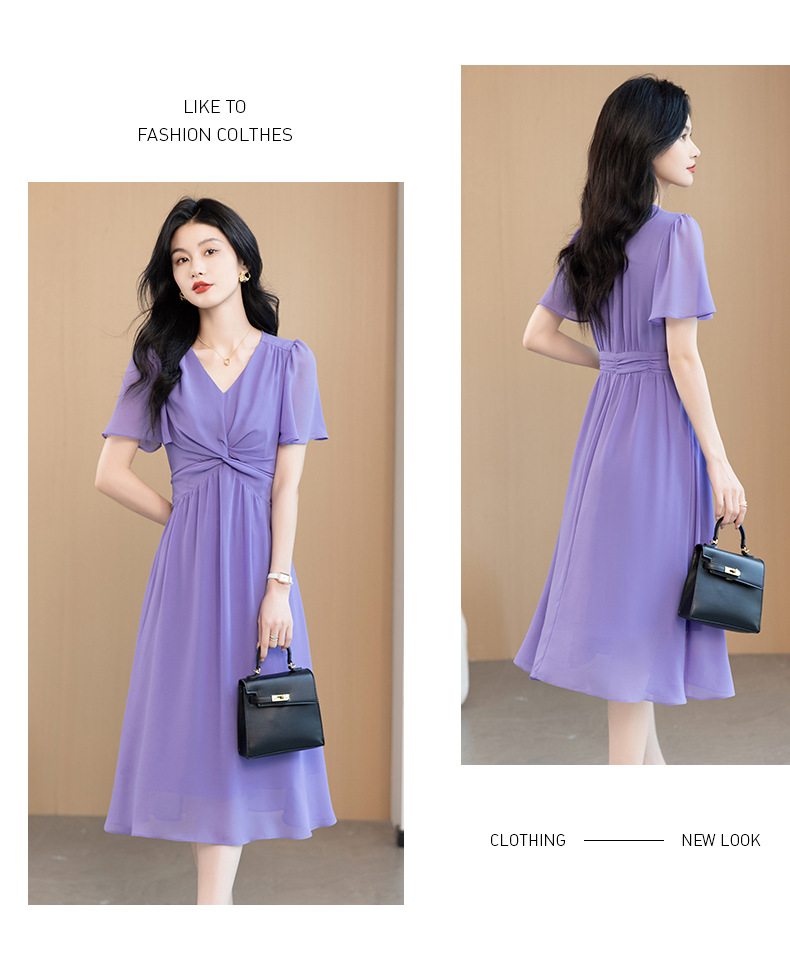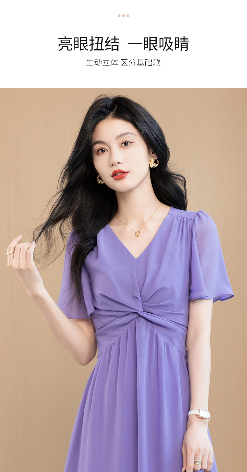 时尚高腰褶皱垂感纯色,中长裙短袖A字裙QYM-TB-FD1339-Y