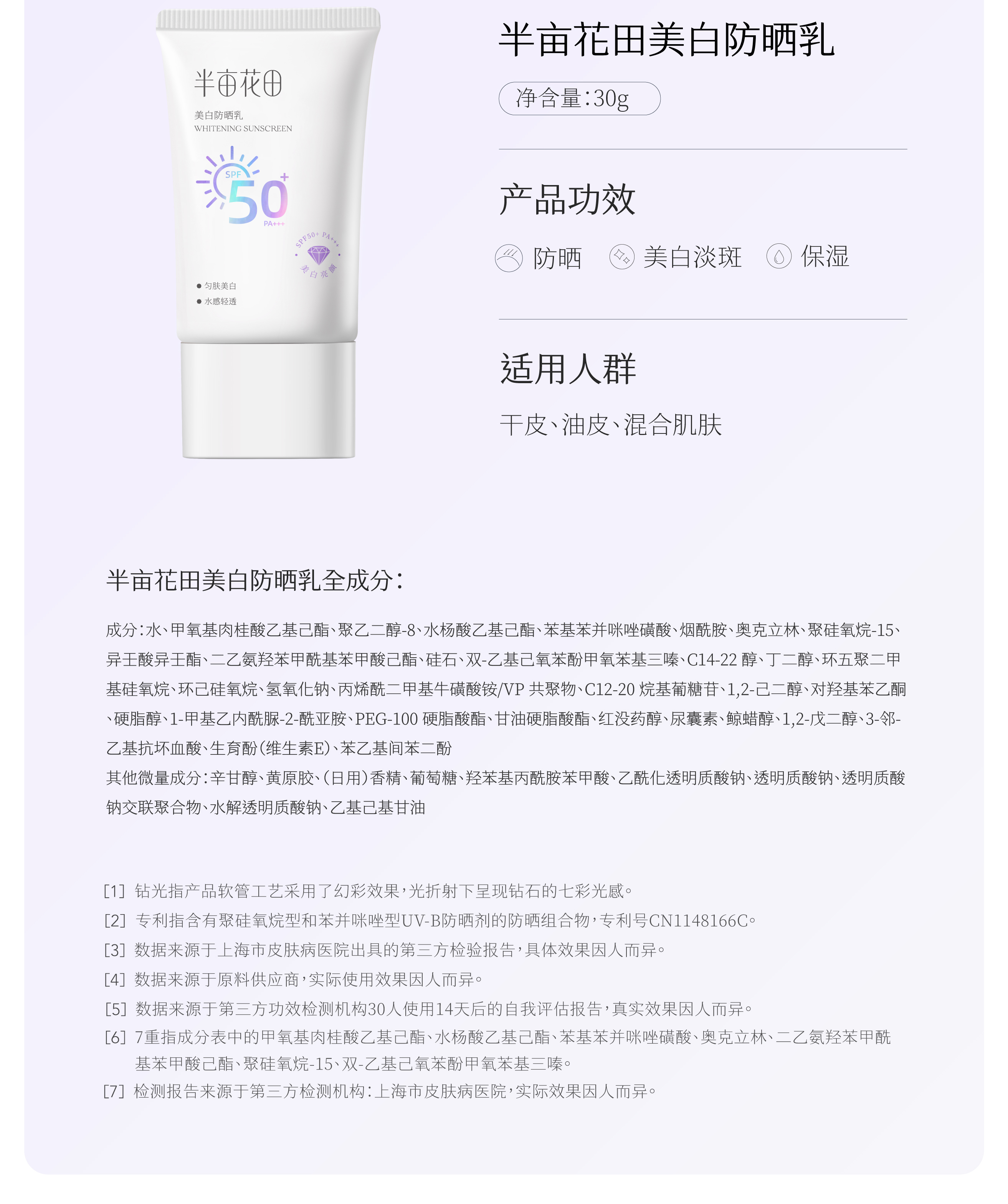 【美白+防晒二合一】【双旦|年终会员日】半亩花田美白防晒霜乳高倍SPF50+清爽滋润面部隔离PA+++官方正品