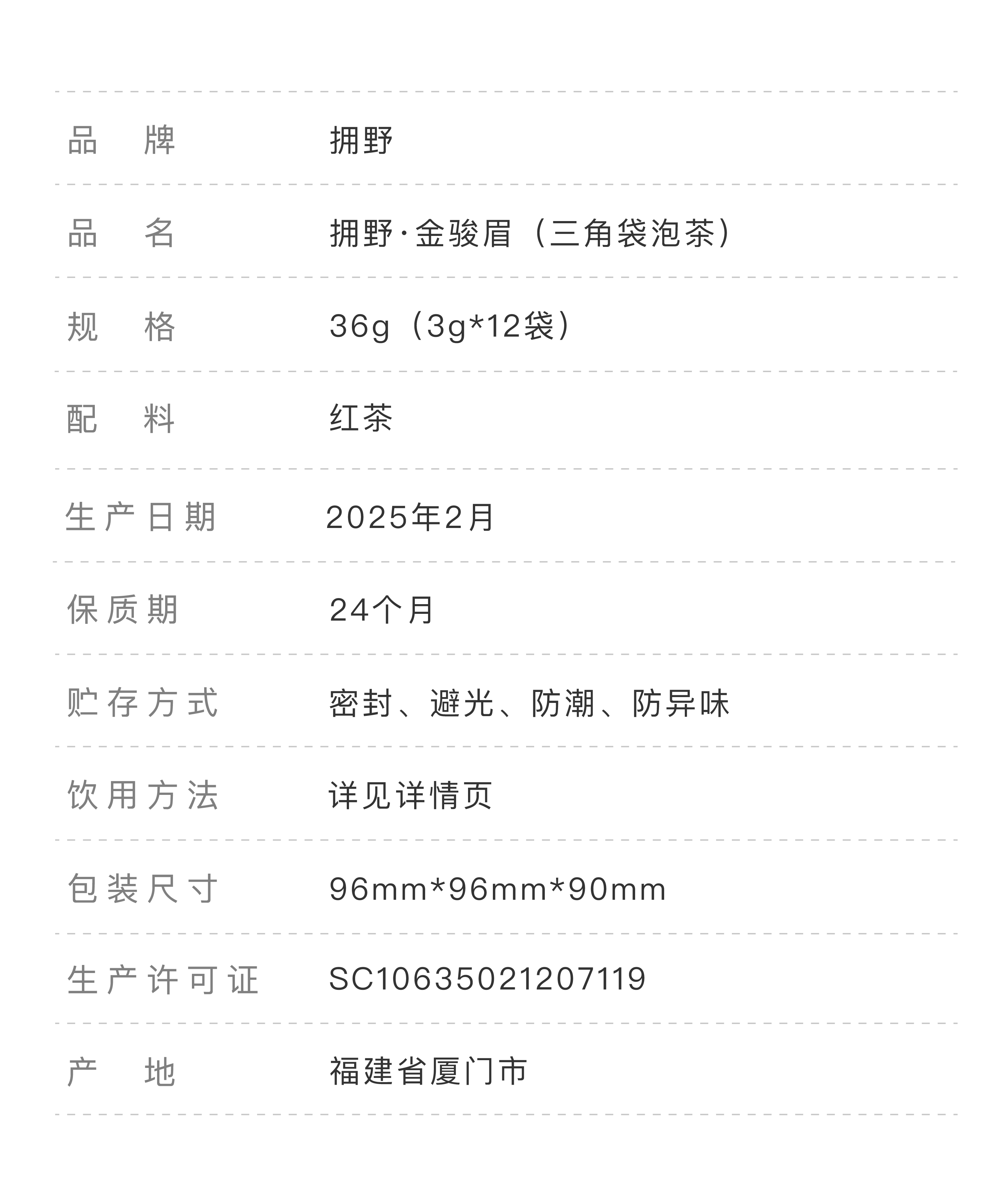 拥野·金骏眉 三角袋泡茶 3gx12袋/盒