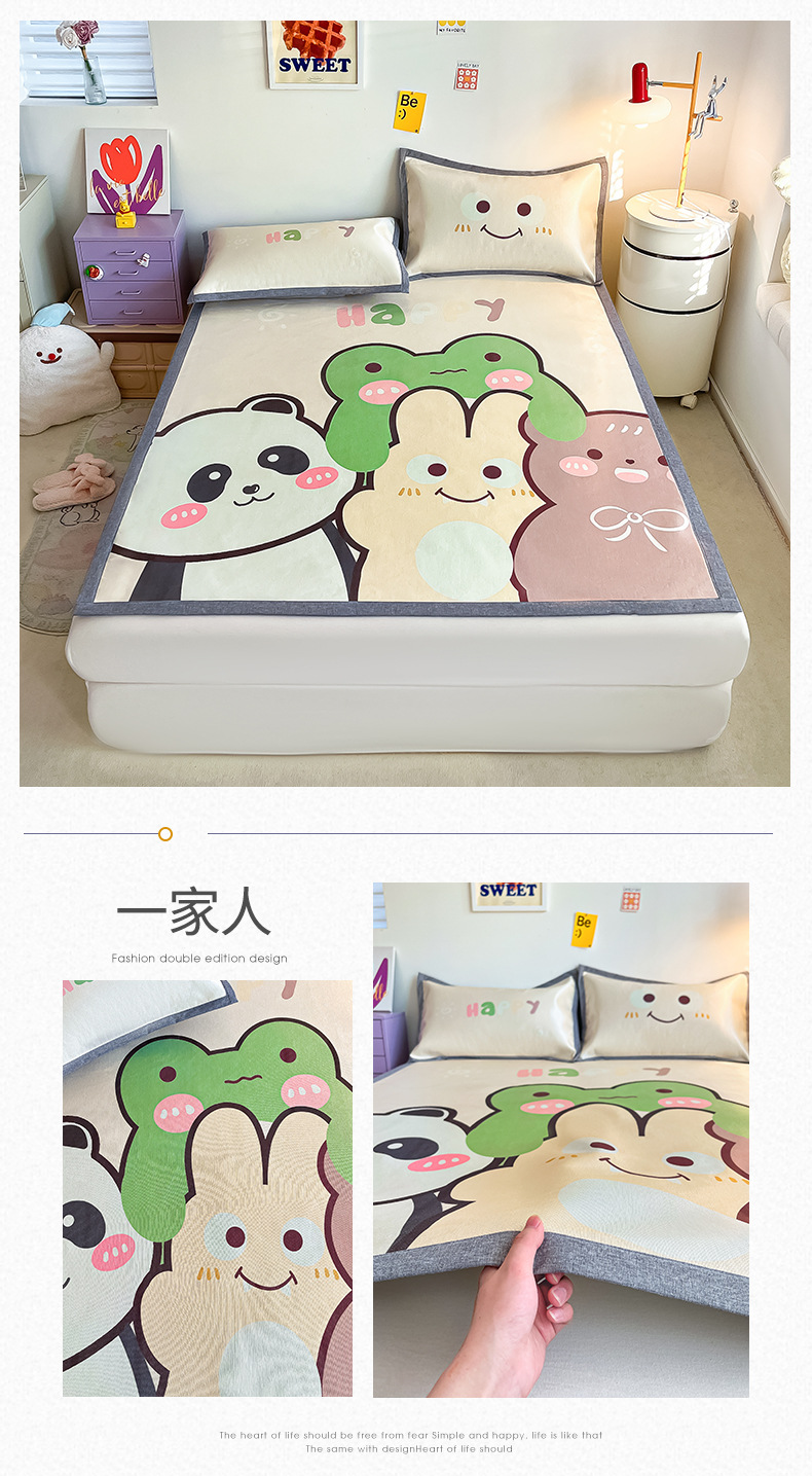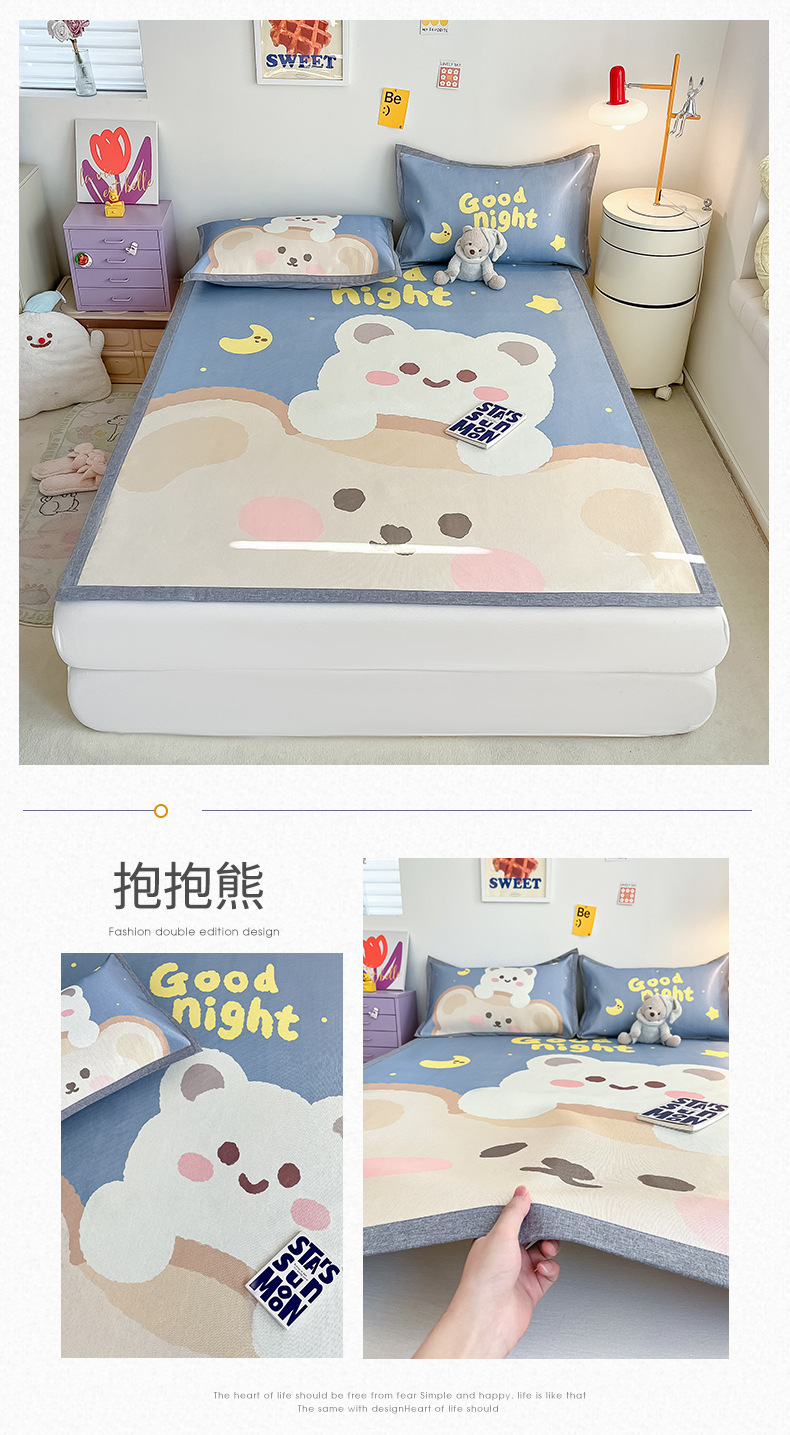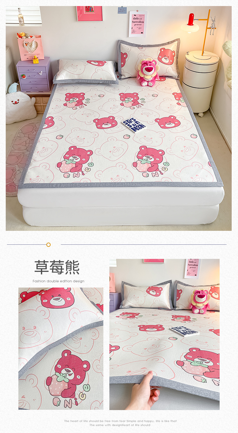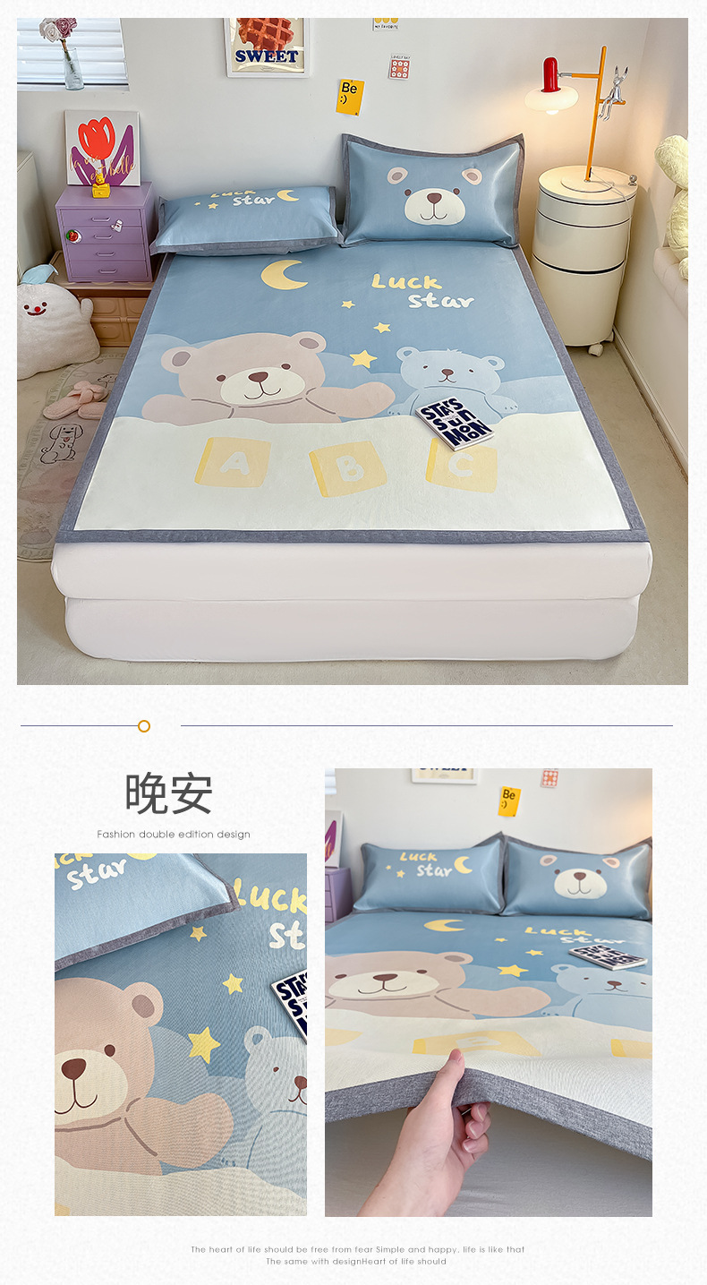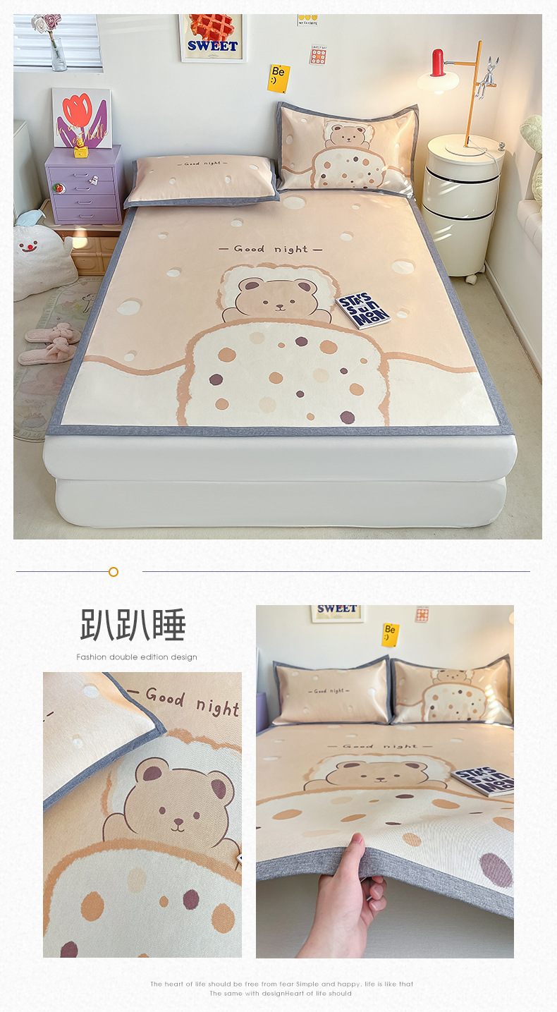 【3D透气支撑,像小冰块一样凉的秘密!】凉感冰丝 遇见清爽 舒适可爱卡通冰丝凉席三件套 可水洗儿童空调席软席 夏季凉感宿舍凉席!-QQ