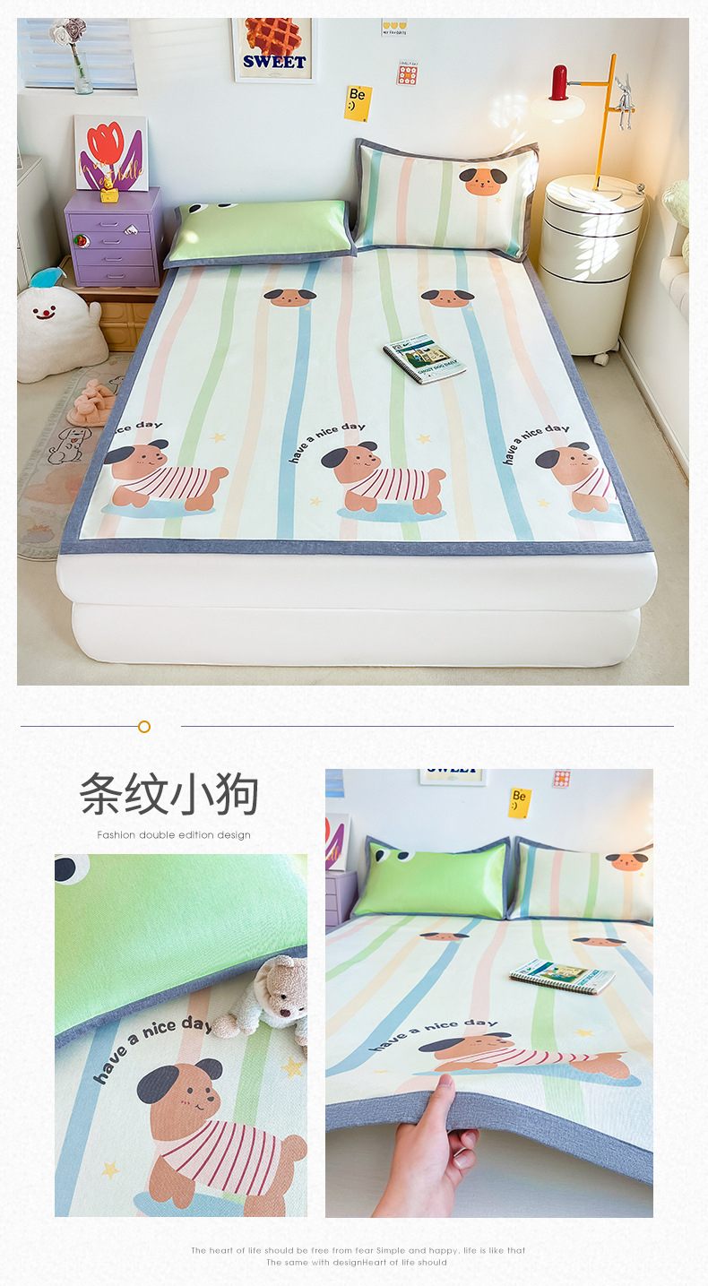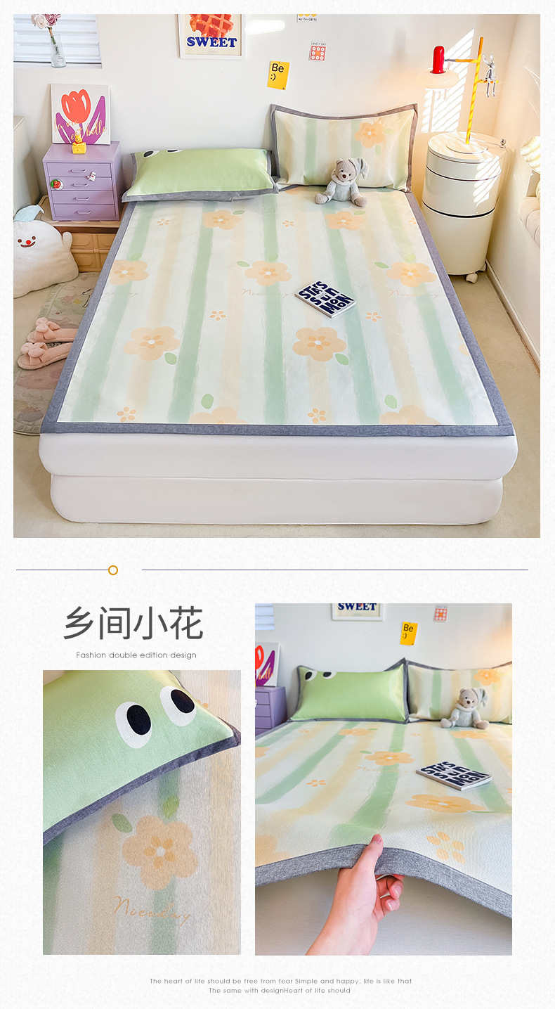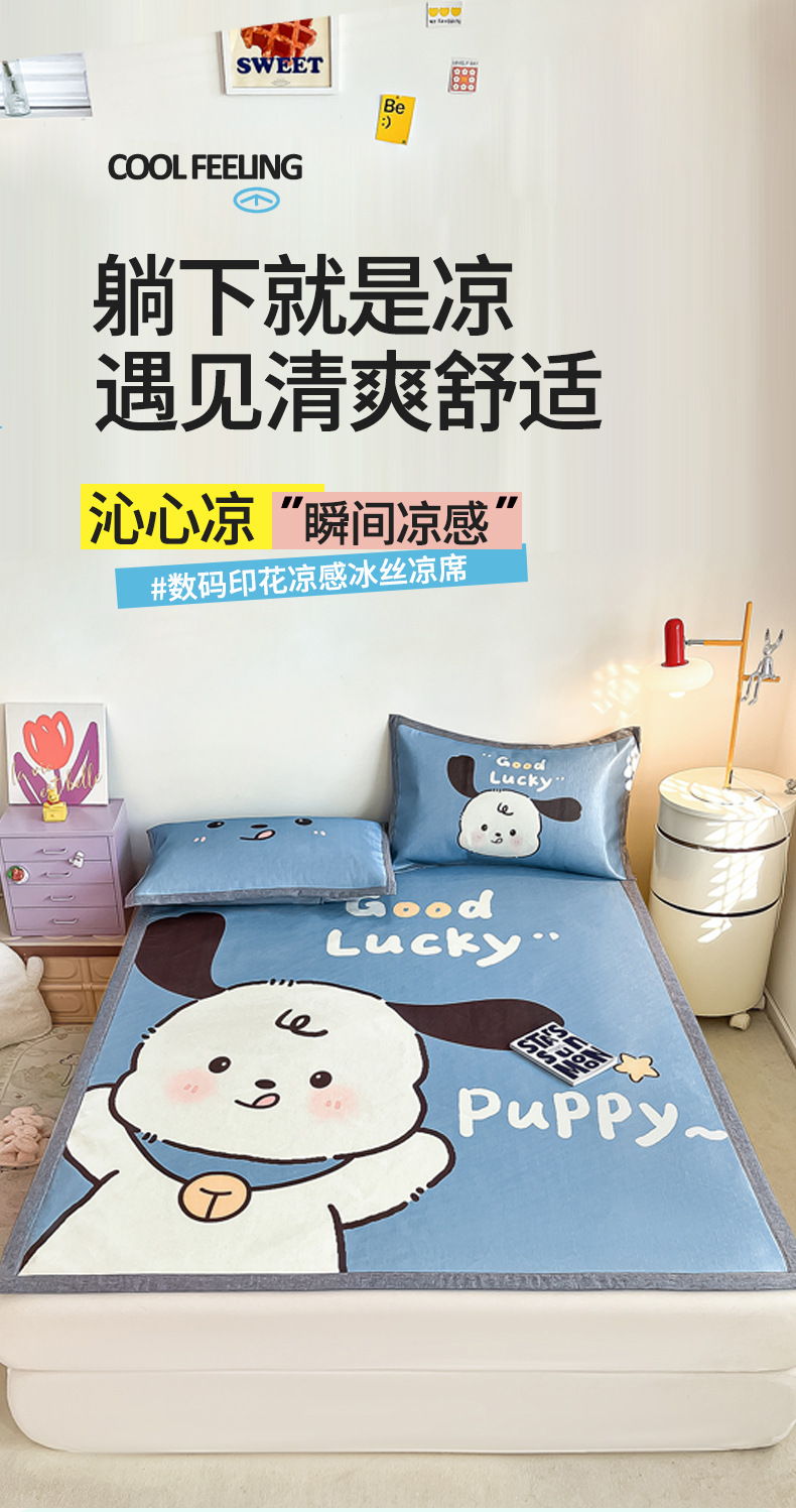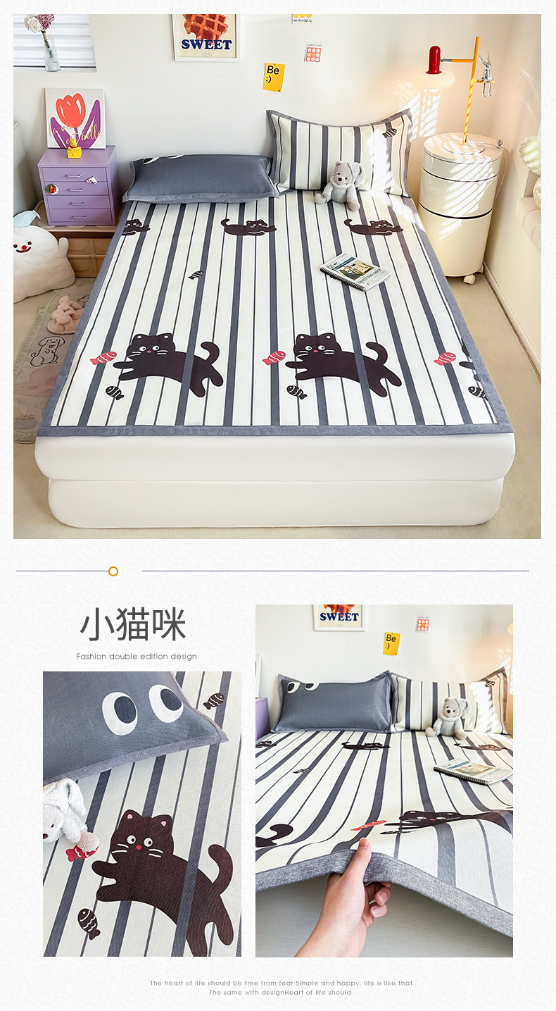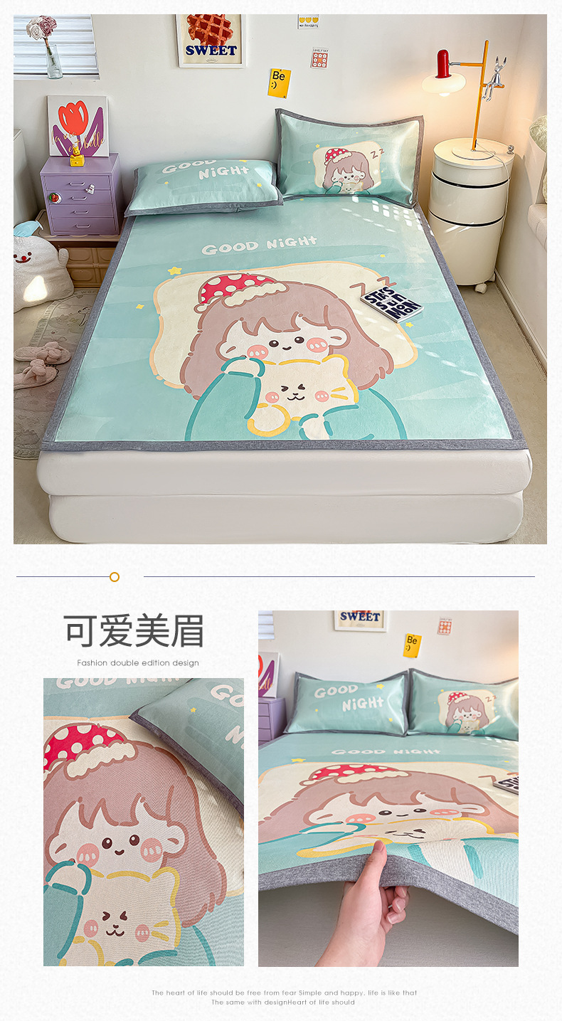 【3D透气支撑,像小冰块一样凉的秘密!】凉感冰丝 遇见清爽 舒适可爱卡通冰丝凉席三件套 可水洗儿童空调席软席 夏季凉感宿舍凉席!-QQ