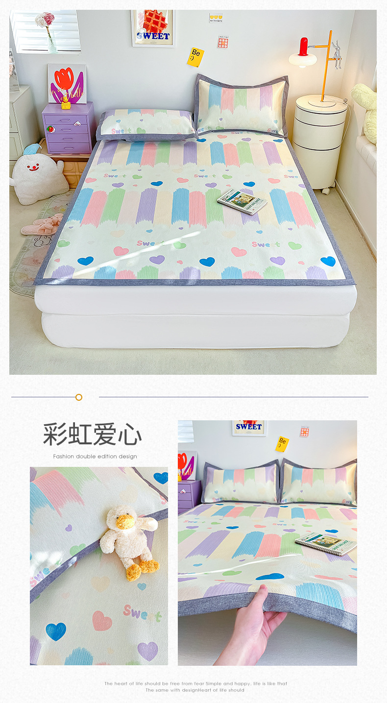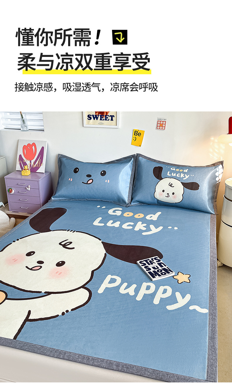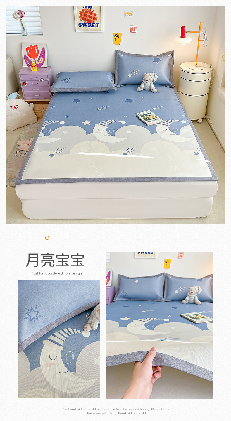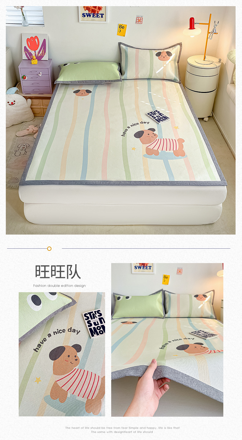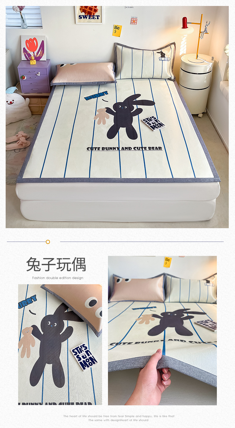 【3D透气支撑,像小冰块一样凉的秘密!】凉感冰丝 遇见清爽 舒适可爱卡通冰丝凉席三件套 可水洗儿童空调席软席 夏季凉感宿舍凉席!-QQ