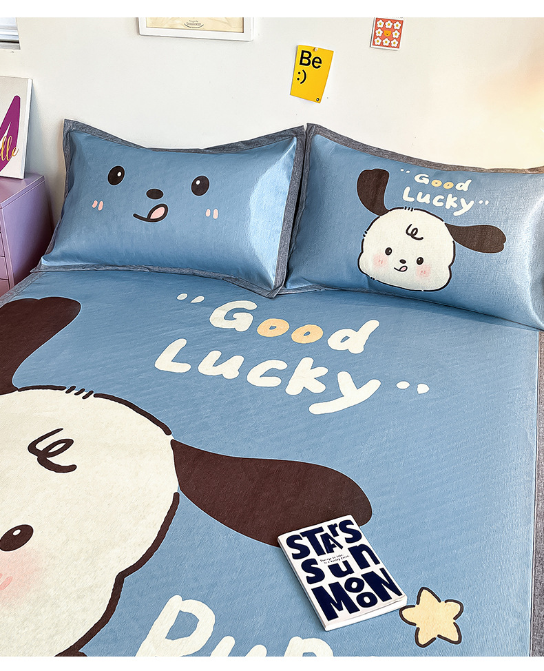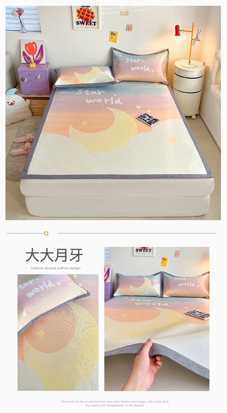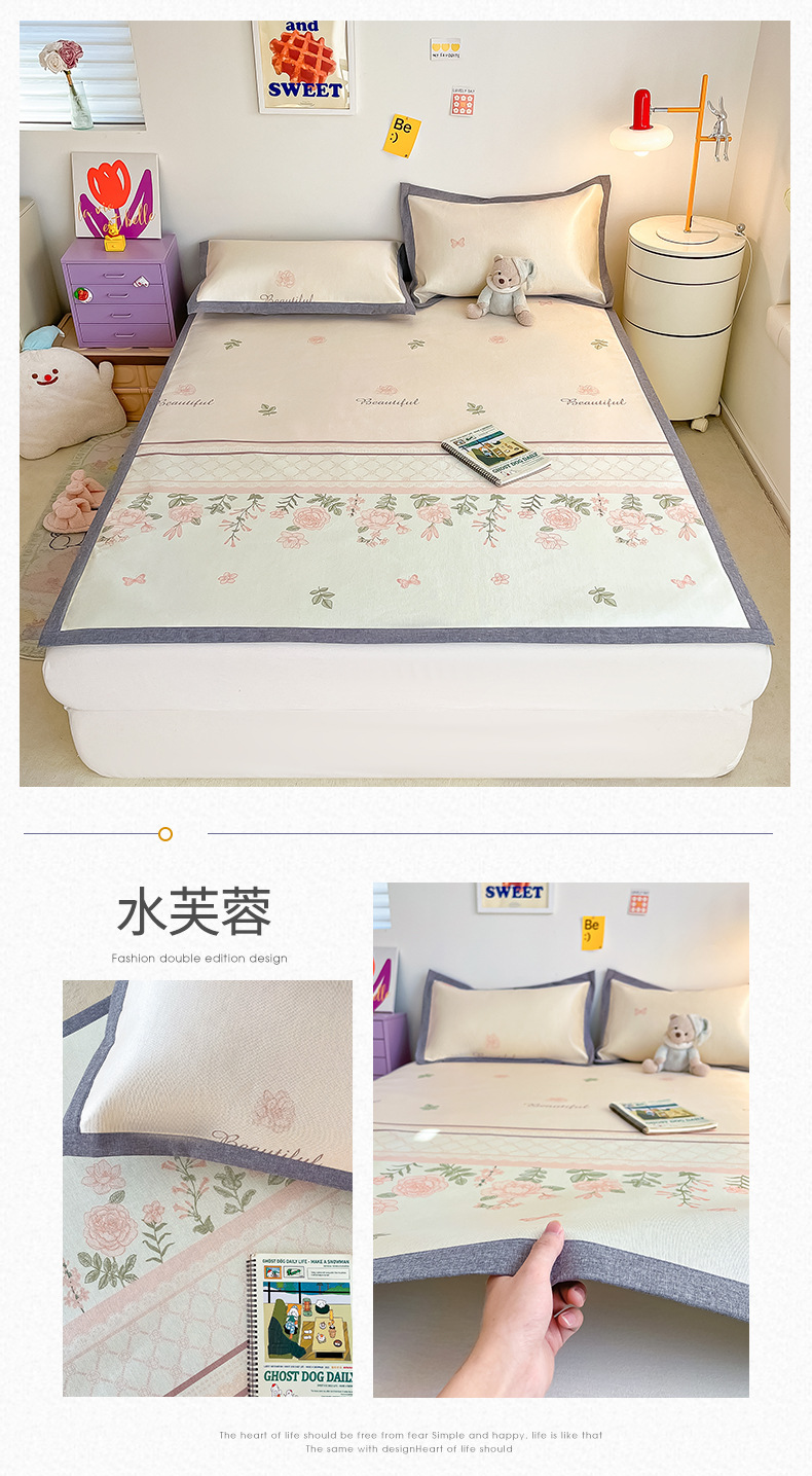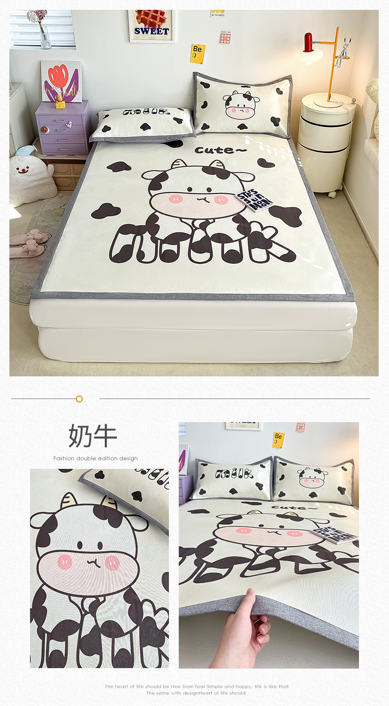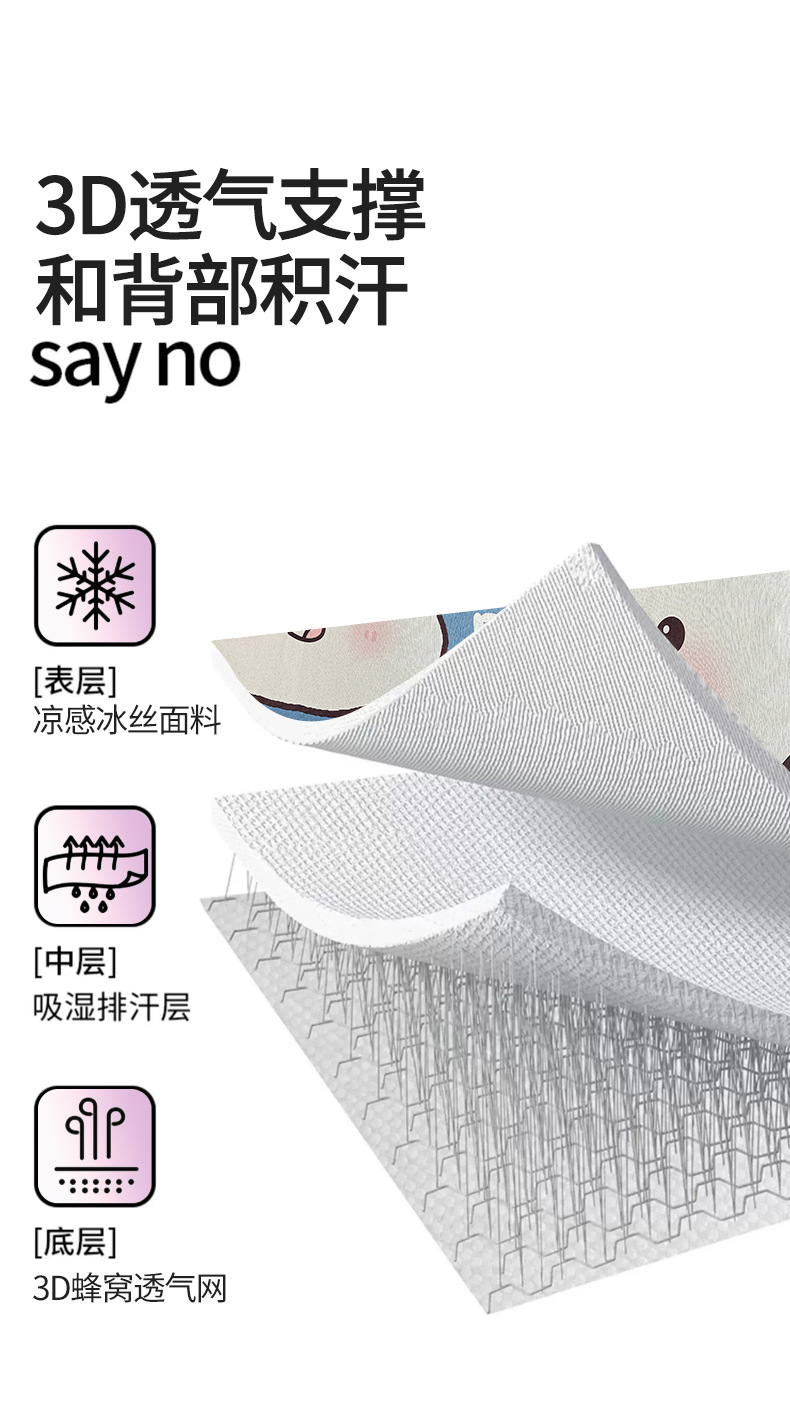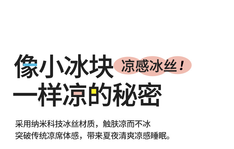 【3D透气支撑,像小冰块一样凉的秘密!】凉感冰丝 遇见清爽 舒适可爱卡通冰丝凉席三件套 可水洗儿童空调席软席 夏季凉感宿舍凉席!-QQ