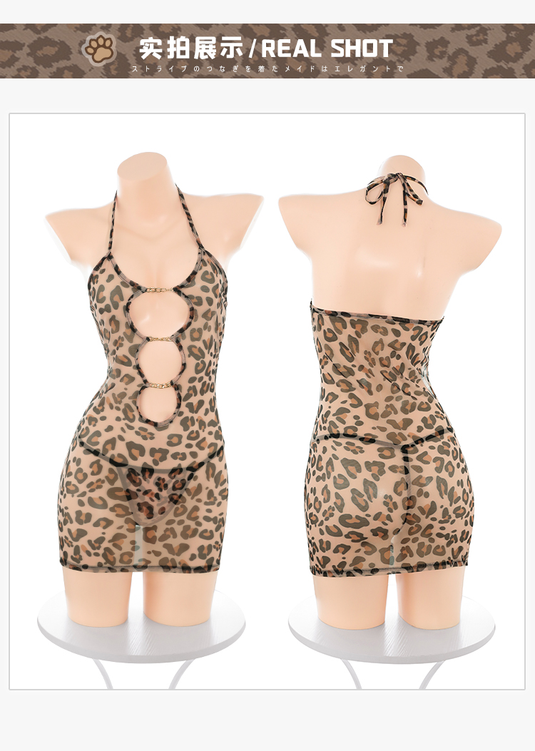 霏慕 欧美ins风豹纹镂空裙7895 情趣内衣女性感豹纹新款诱惑免脱情侣约会战袍包臀裙