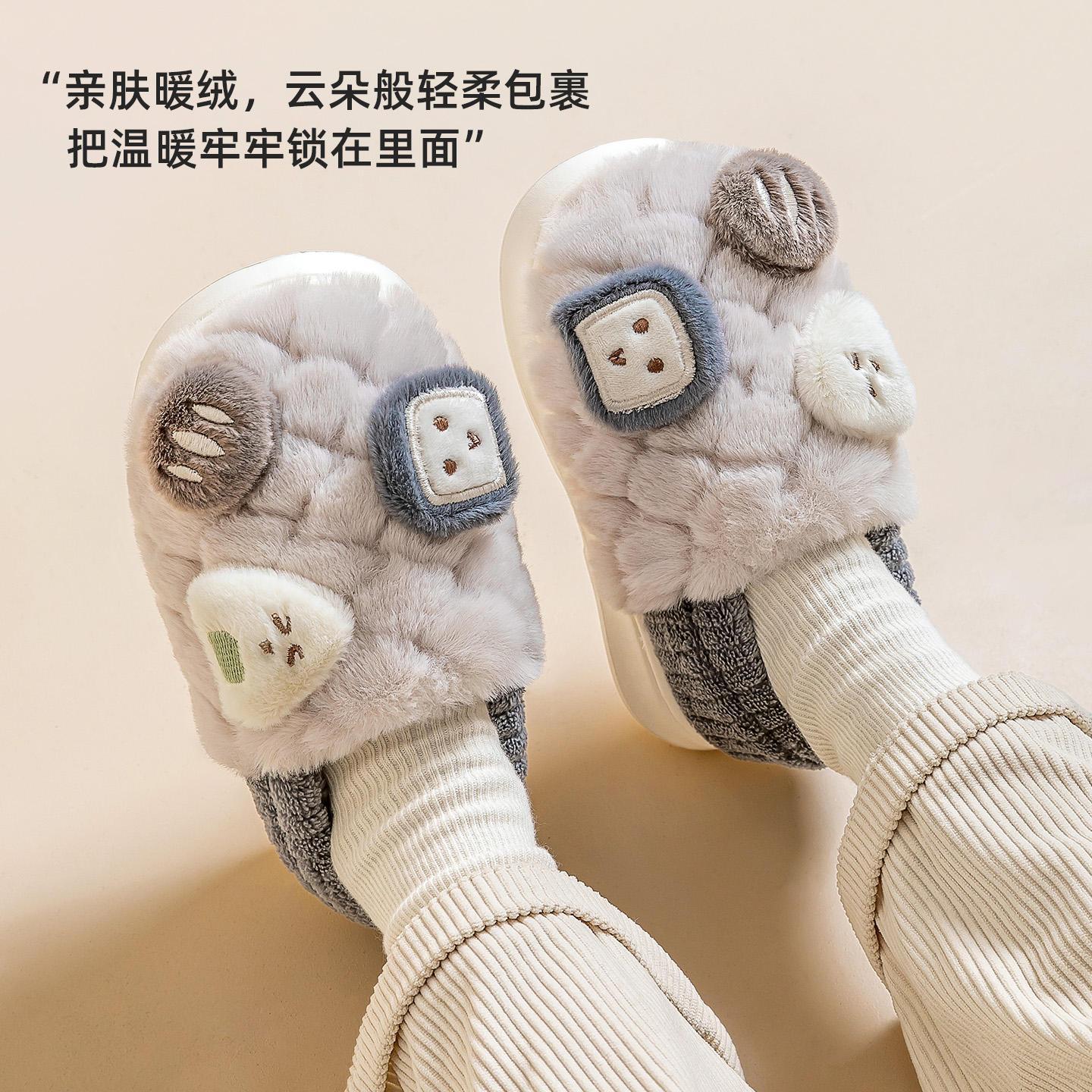 柔软保暖舒棉绒!▼ 棉拖的温暖感是穿厚袜子无法比拟的 棉拖内好比温室,外界的冷风不能轻易进入 把低温隔绝在外,双脚不过一会就暖和了 这款棉拖内里采用了优质舒棉绒 柔软亲肤,摸起来触感细腻,看着就很暖和 双脚踩上去像踩在棉花上舒服 舒棉绒保暖性向来不错