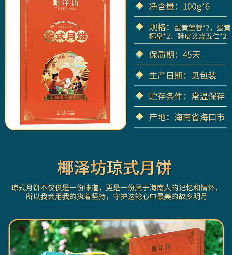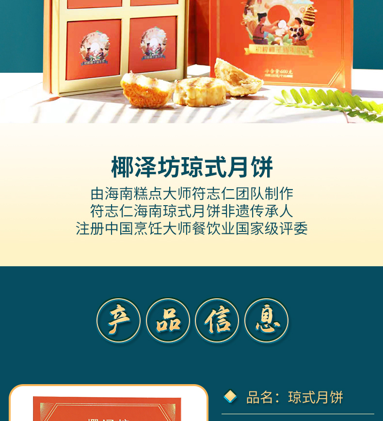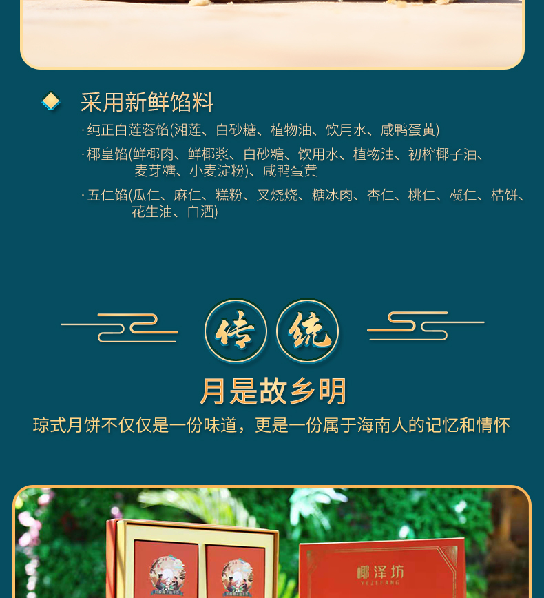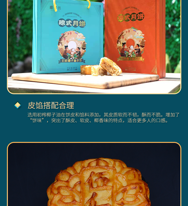 椰泽坊初榨椰子油琼式月饼传统手工制作三种口味满足一家人的需求